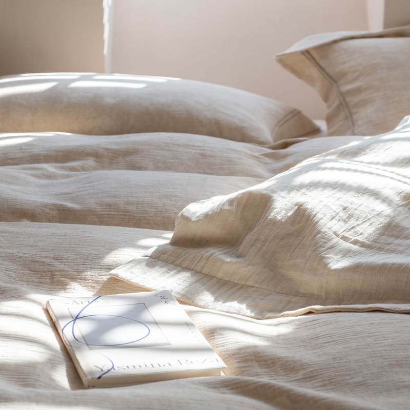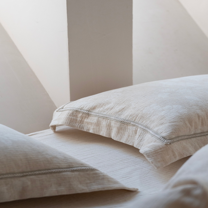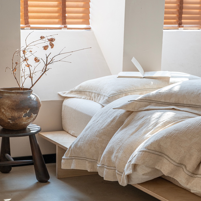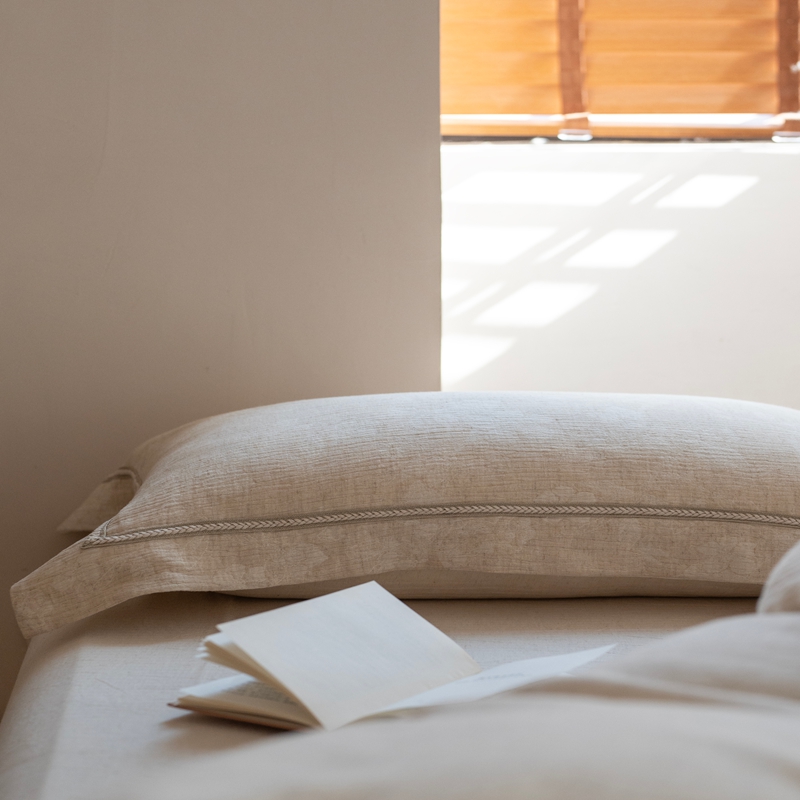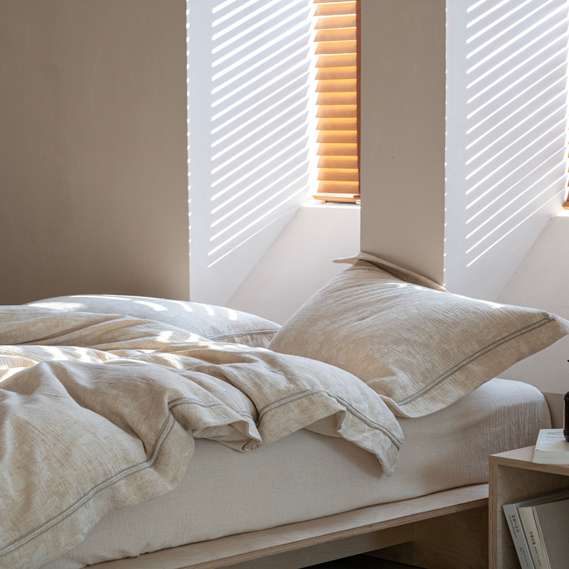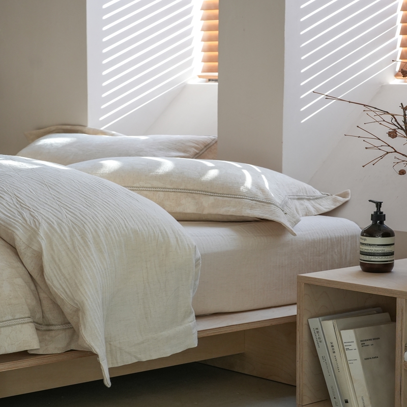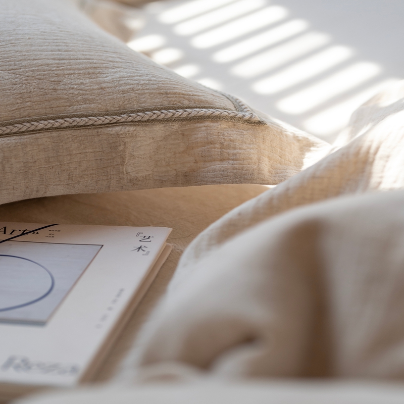 (总)璞素家居 2025新款棉麻绑带款四件套,白色