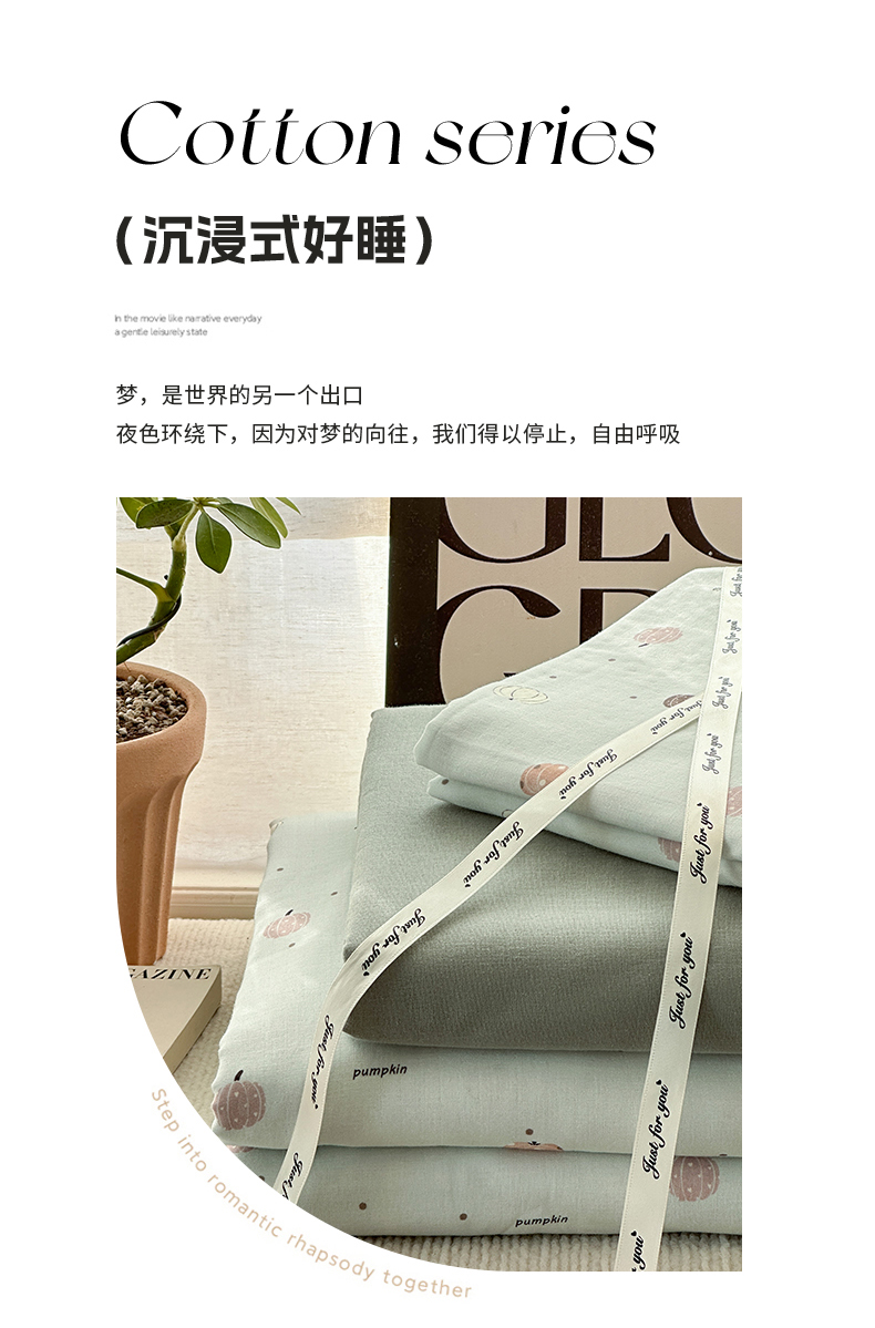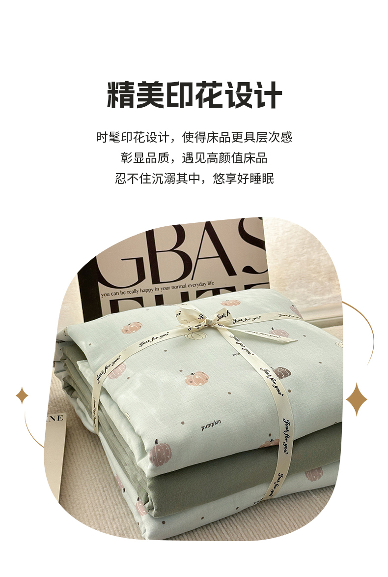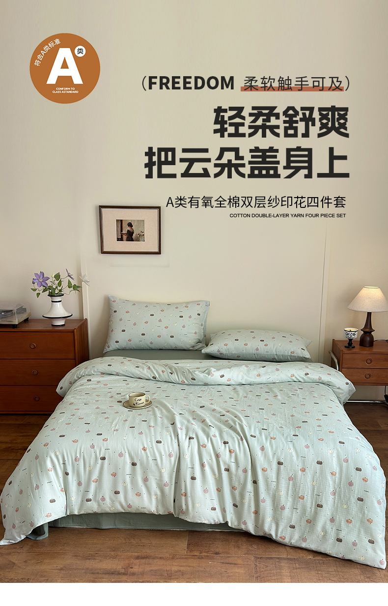 当前位置: 91家纺网 > 商品网购 > 床品套件 > 四件套 > 双层纱四件套 > 亿梵家居 2025新款A类母婴级有氧全棉纯棉双层纱纯棉印花四件套-床拍图 南语-绿