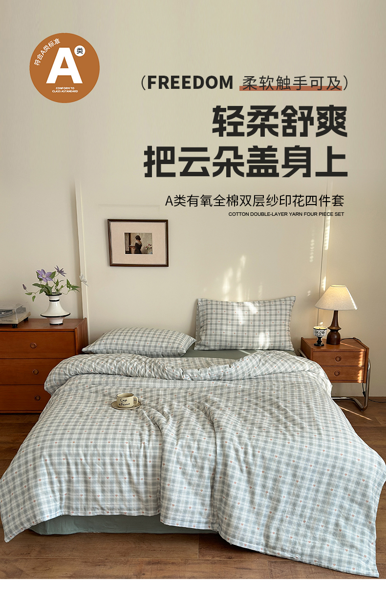 当前位置: 91家纺网 > 商品网购 > 床品套件 > 四件套 > 双层纱四件套 > 亿梵家居 2025新款A类母婴级有氧全棉纯棉双层纱纯棉印花四件套-叠拍图 心恬-绿