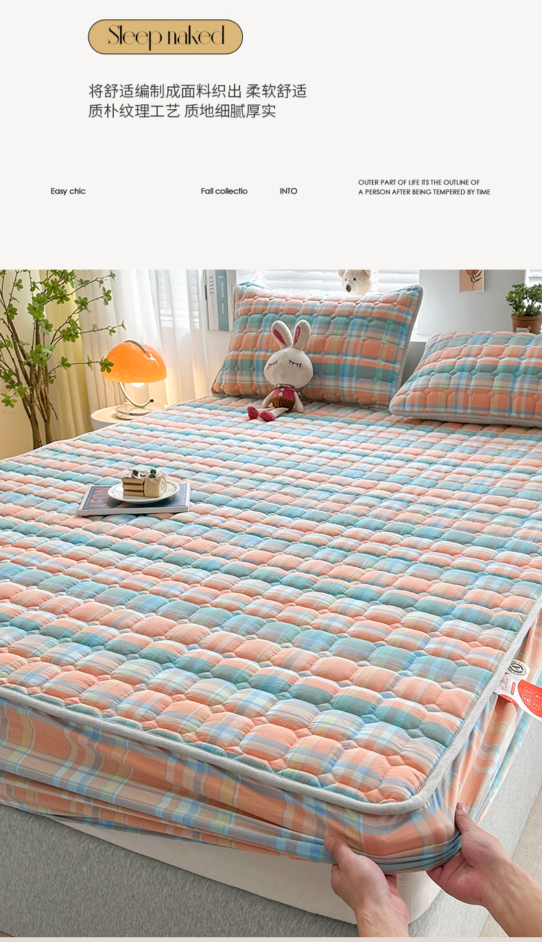 铭成家纺 2025新款A类亲肤纯棉加厚床笠 素雅炫彩格