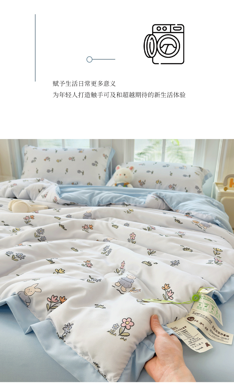 商品名称:悦织语 2025新款A类针织棉双层纱韩版夏被四件套空调被 安琪拉兔