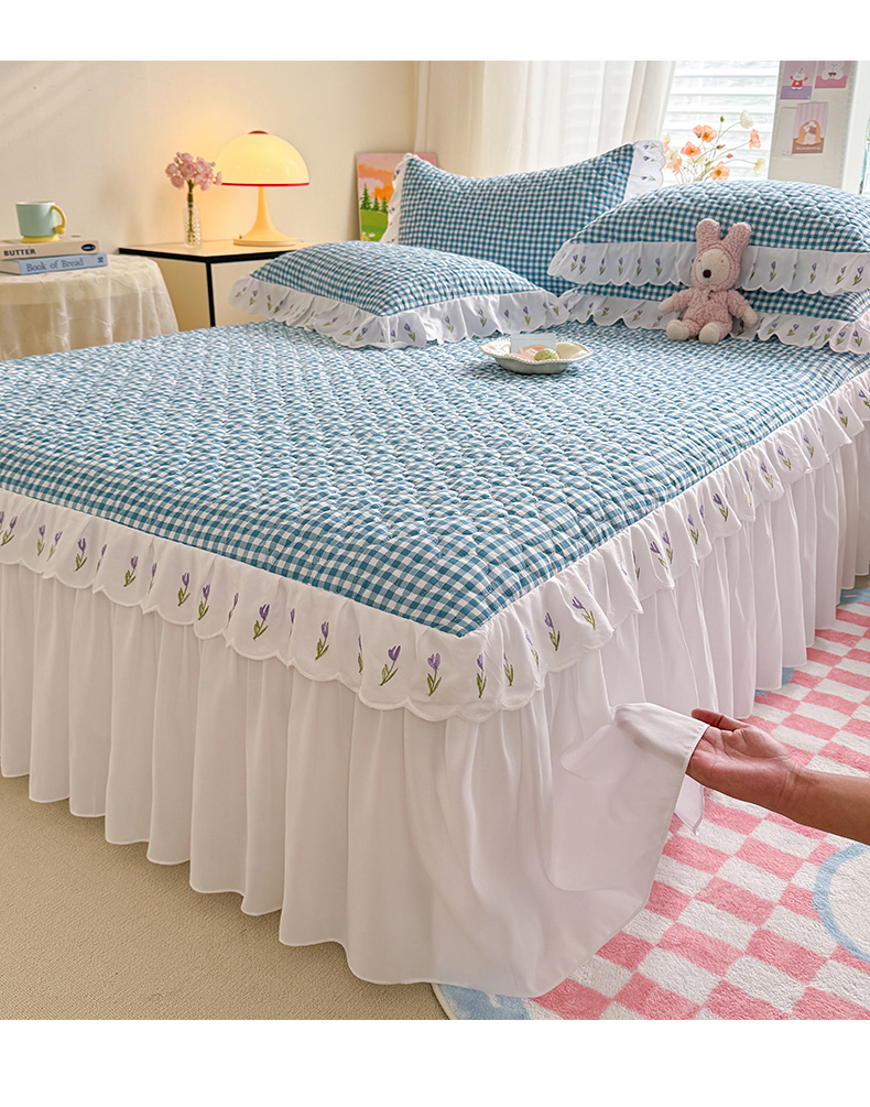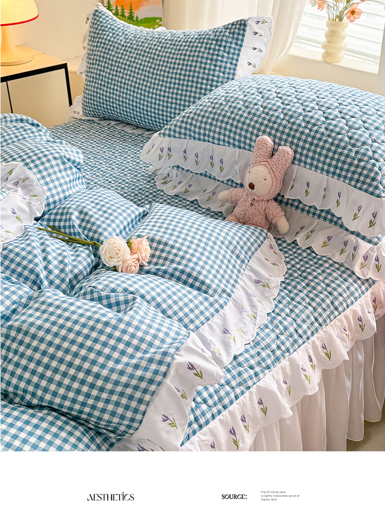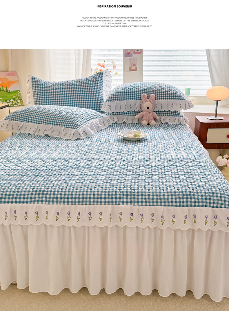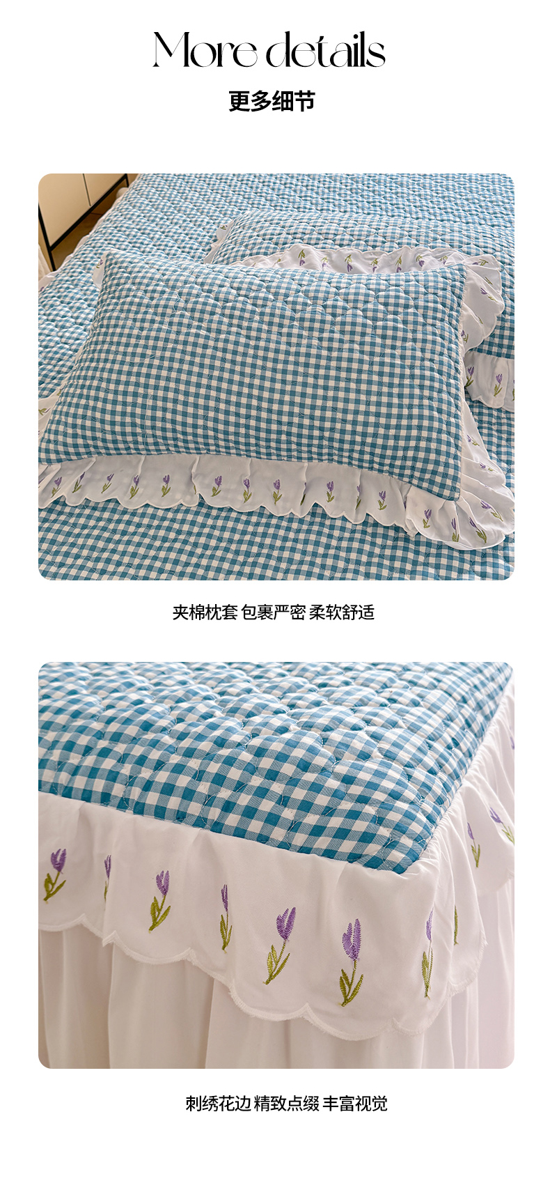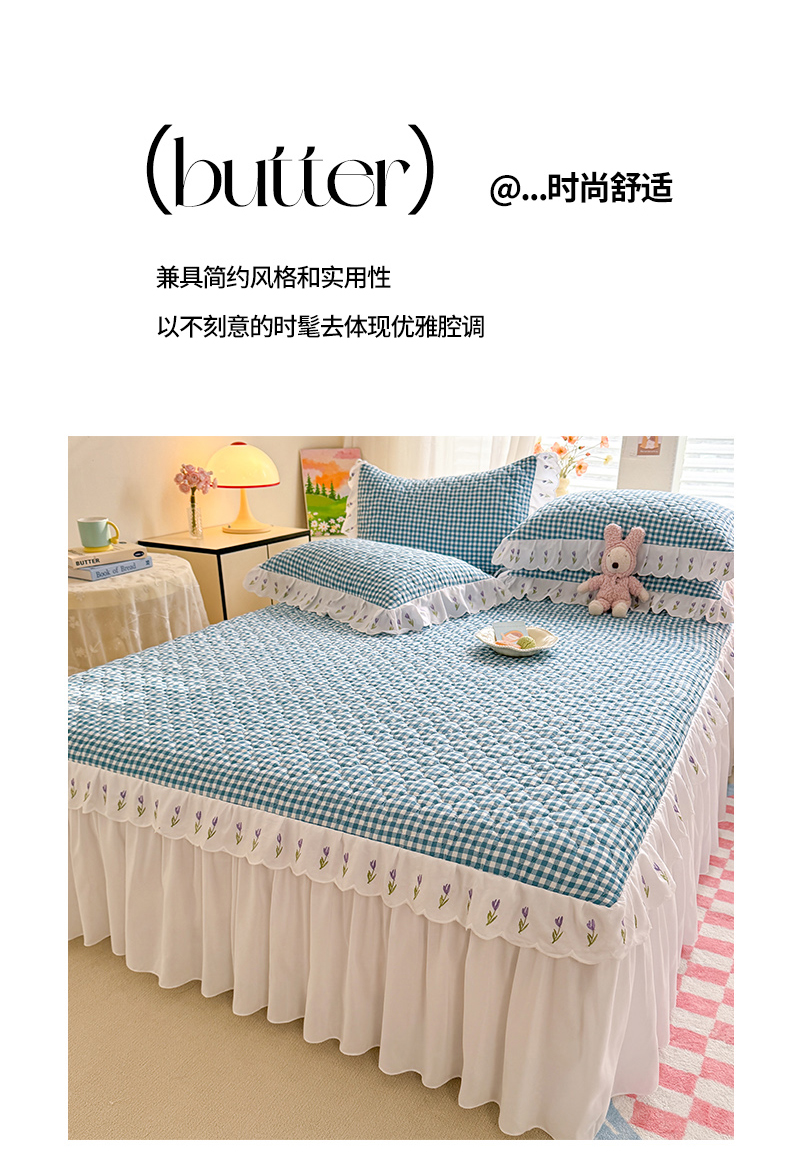 金盛皇朝家纺 2025新款格子空间水洗棉床裙 格子空间-爱丽丝蓝