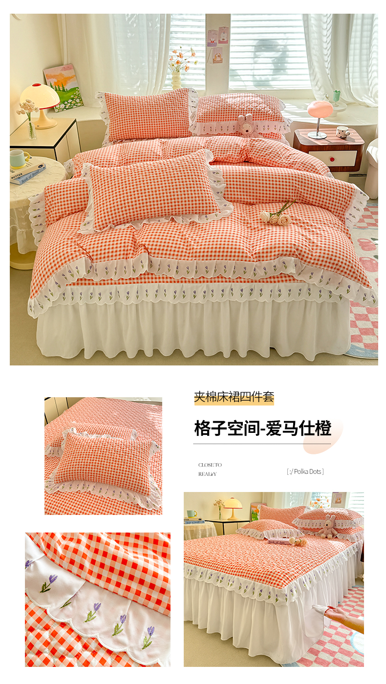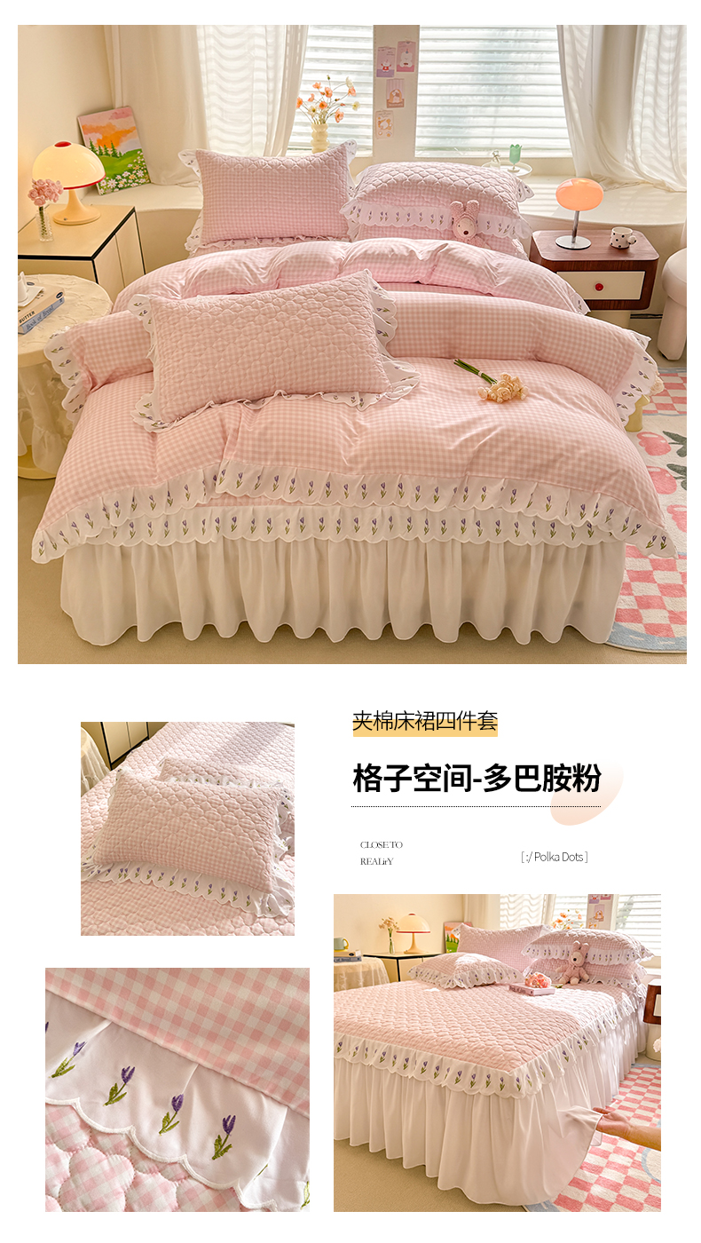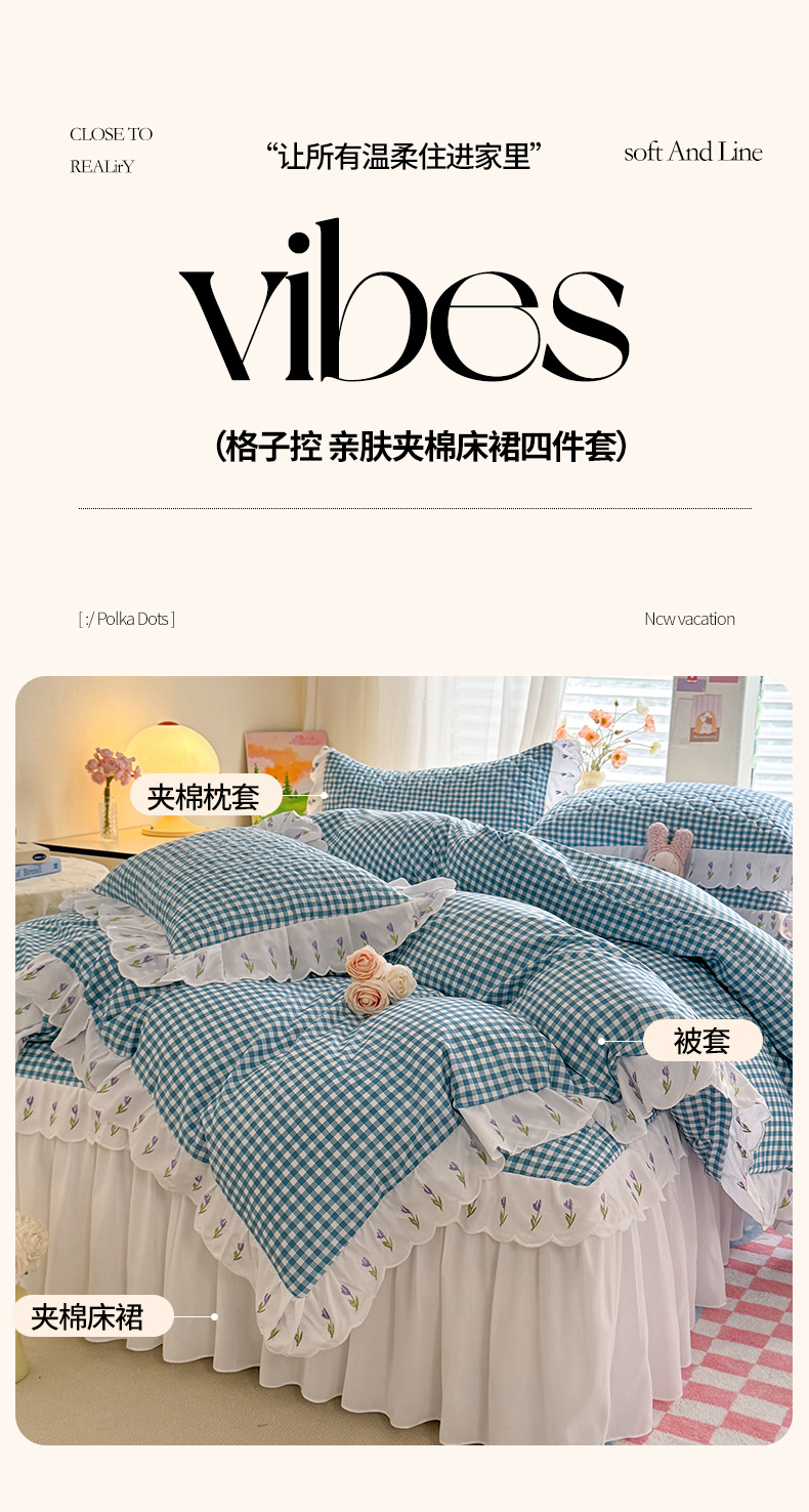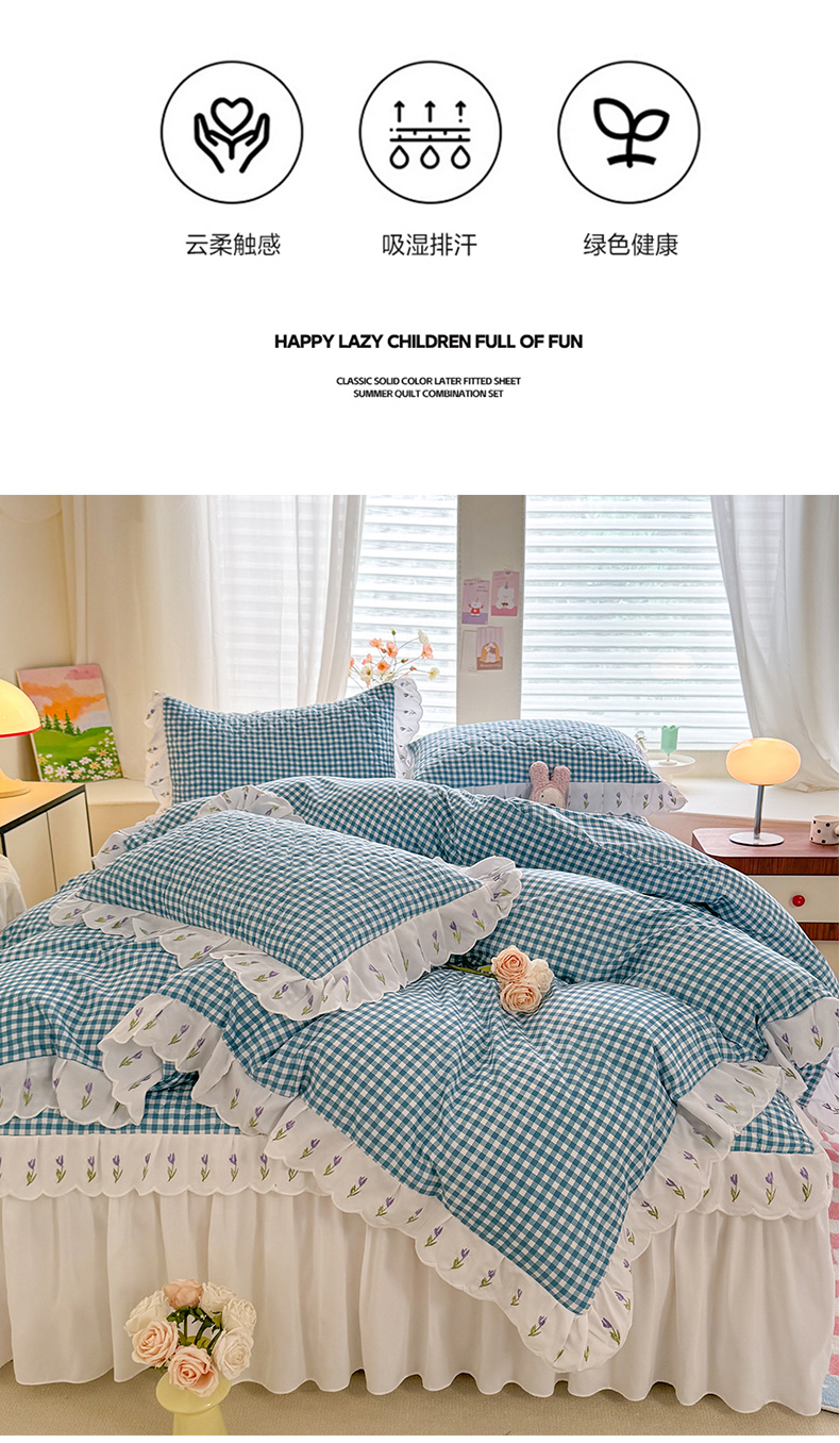 金盛皇朝家纺 2025新款格子空间水洗棉床裙 格子空间-爱丽丝蓝
