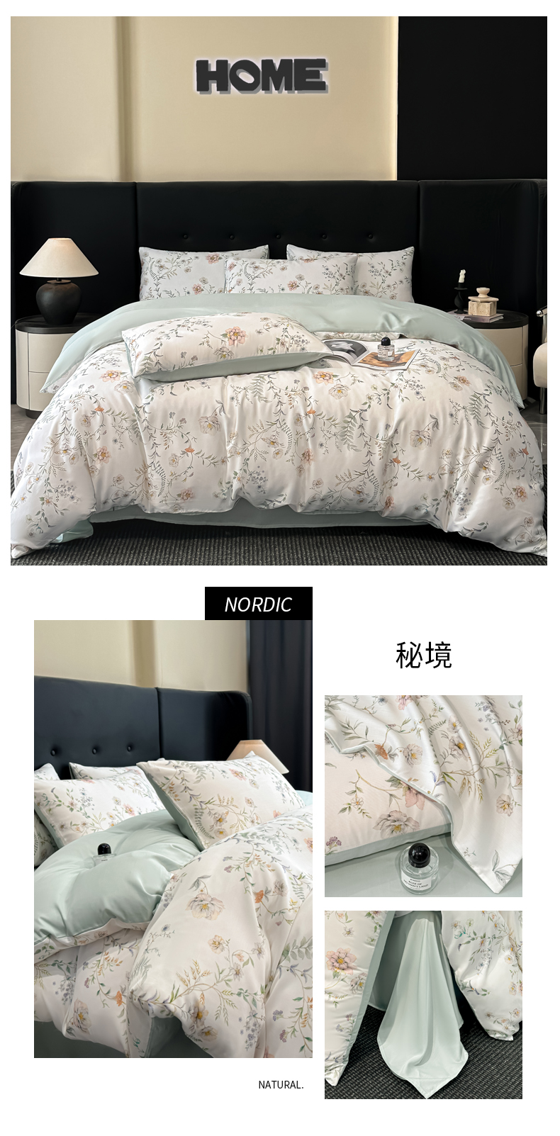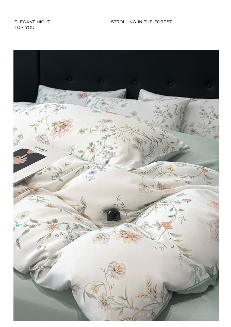 商品名称:慕晨 2025春夏新品莱赛尔天丝数码印花四件套莱赛尔夏被四件套天丝夏凉被直播热款 秘境