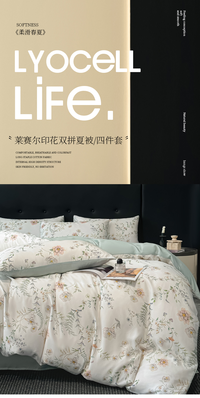 (总)慕晨 2025春夏新品莱赛尔天丝数码印花四件套莱赛尔夏被四件套天丝夏凉被直播热款,繁华-白,繁华-粉,芳馨-兰,芳馨-绿,金蕊,锦葵,兰琦,萌兔,秘境,沐瑶,琦梦,浅韵,柔兰,素锦,叶澜,雨薇,竹影,紫菱