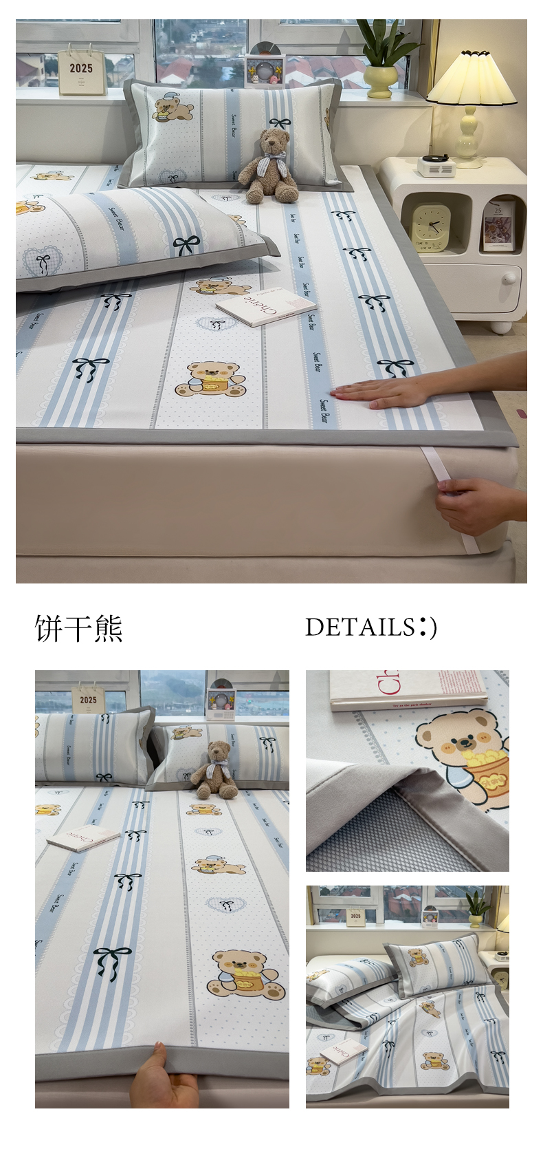 商品名称:丝羽坊 2025新款小版印花冰丝凉席平铺床席款冰丝席碳光冰丝凉席 饼干熊