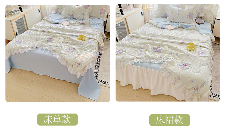 • 91家纺网 家纺一手货源 找家纺 家贝爱 2025新款泡泡纱水洗棉花边床单/床裙款夏被四件套夏凉被 大蝴蝶梦