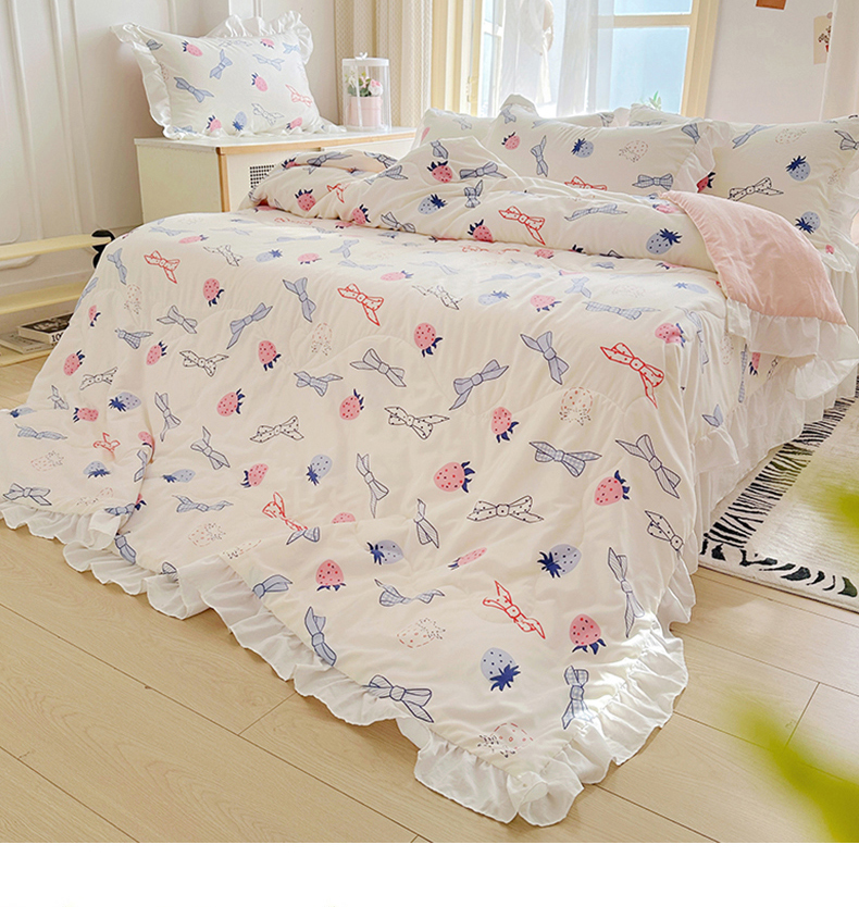 • 91家纺网 家纺一手货源 找家纺 家贝爱 2025新款泡泡纱水洗棉花边床单/床裙款夏被四件套夏凉被 桃桃公主