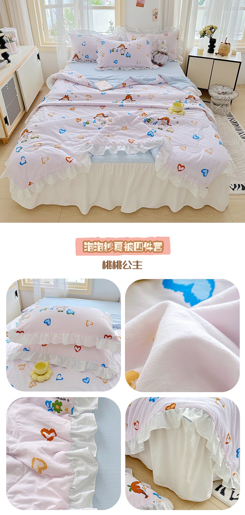 家贝爱 2025新款泡泡纱水洗棉花边床单/床裙款夏被四件套夏凉被 桃桃公主