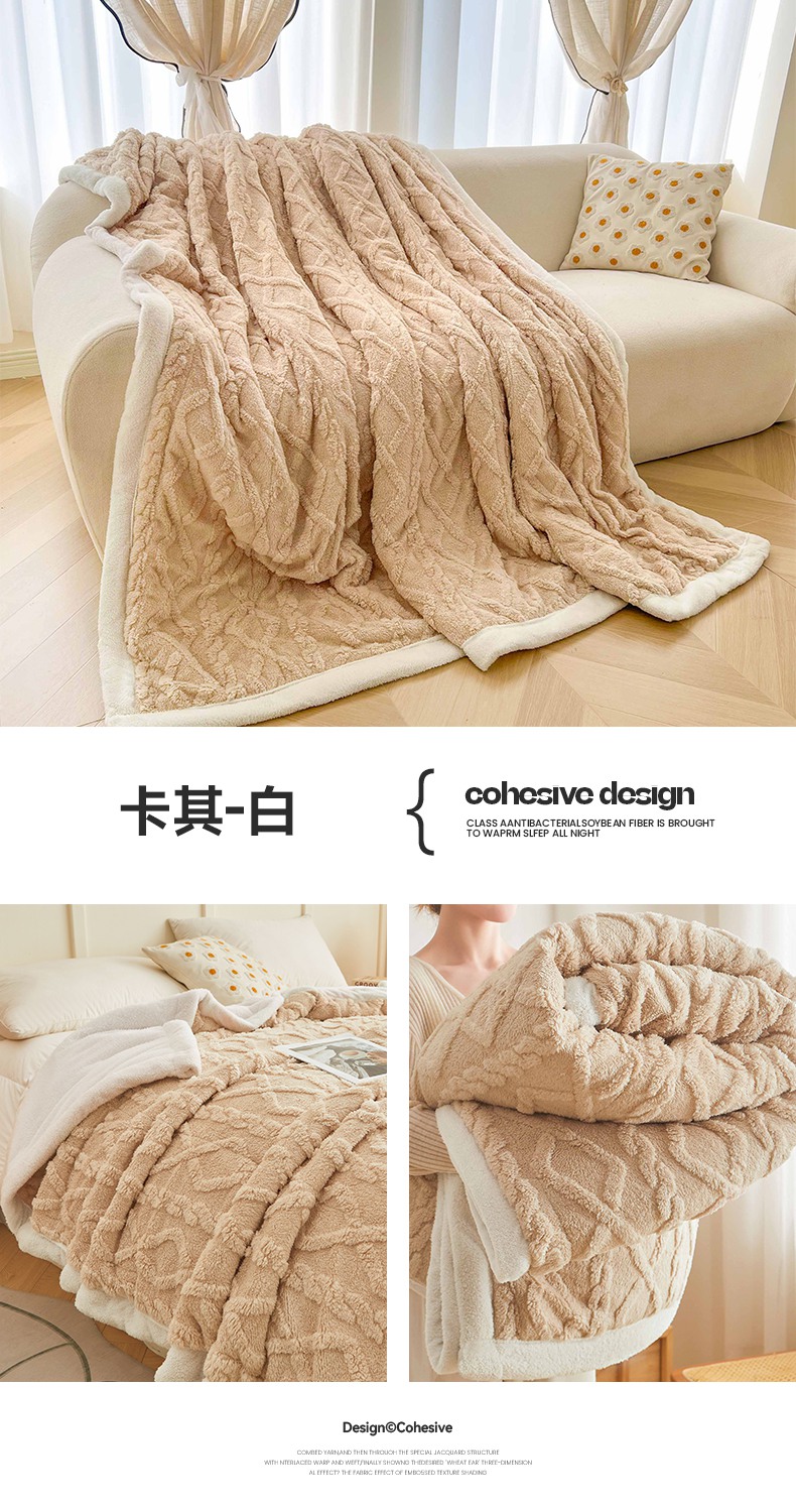 澳梵家居 2025新款塔芙绒提花毛毯盖毯 雾霾蓝-白