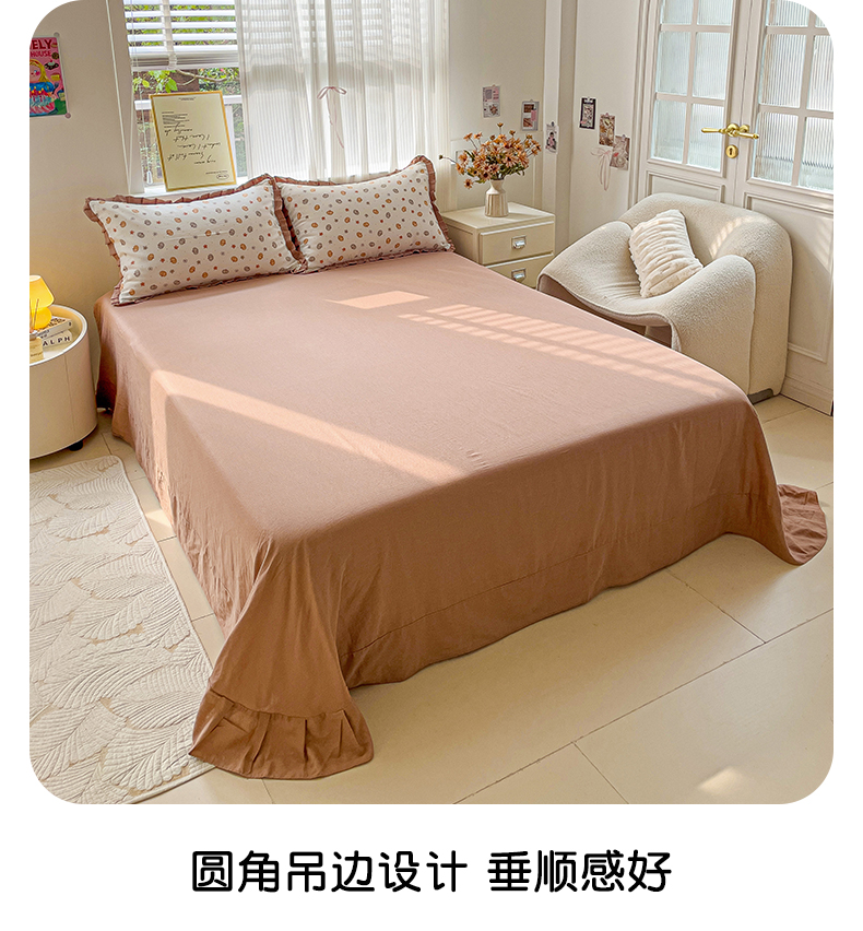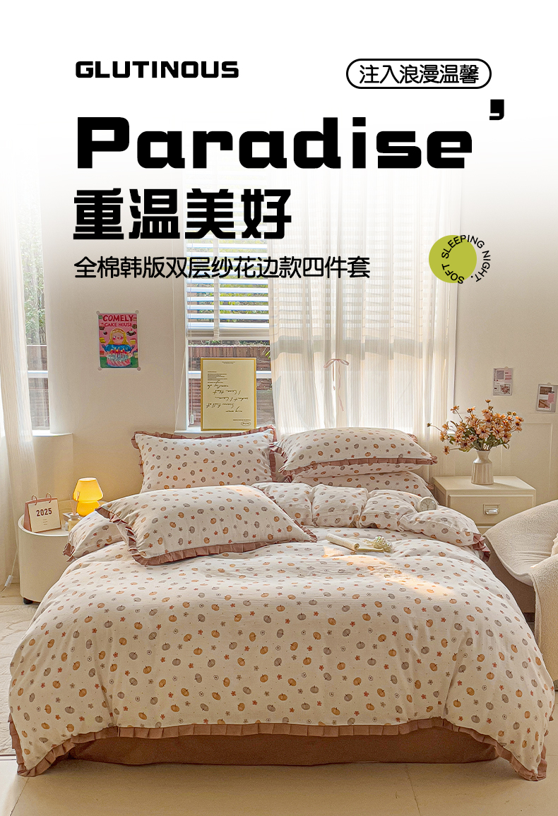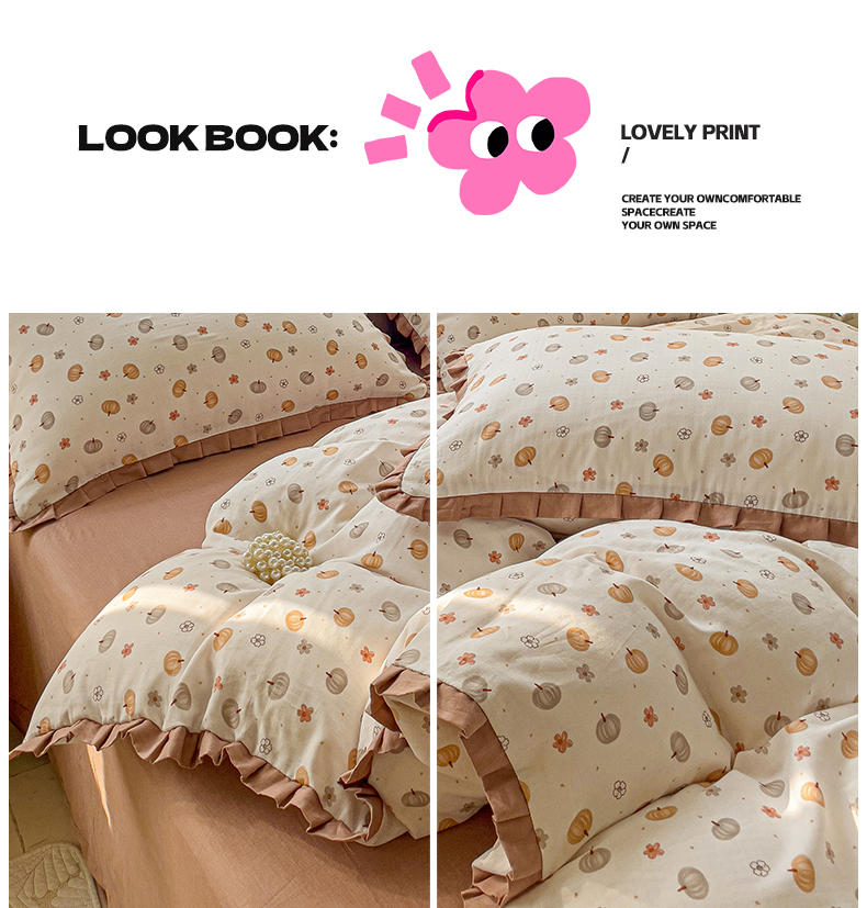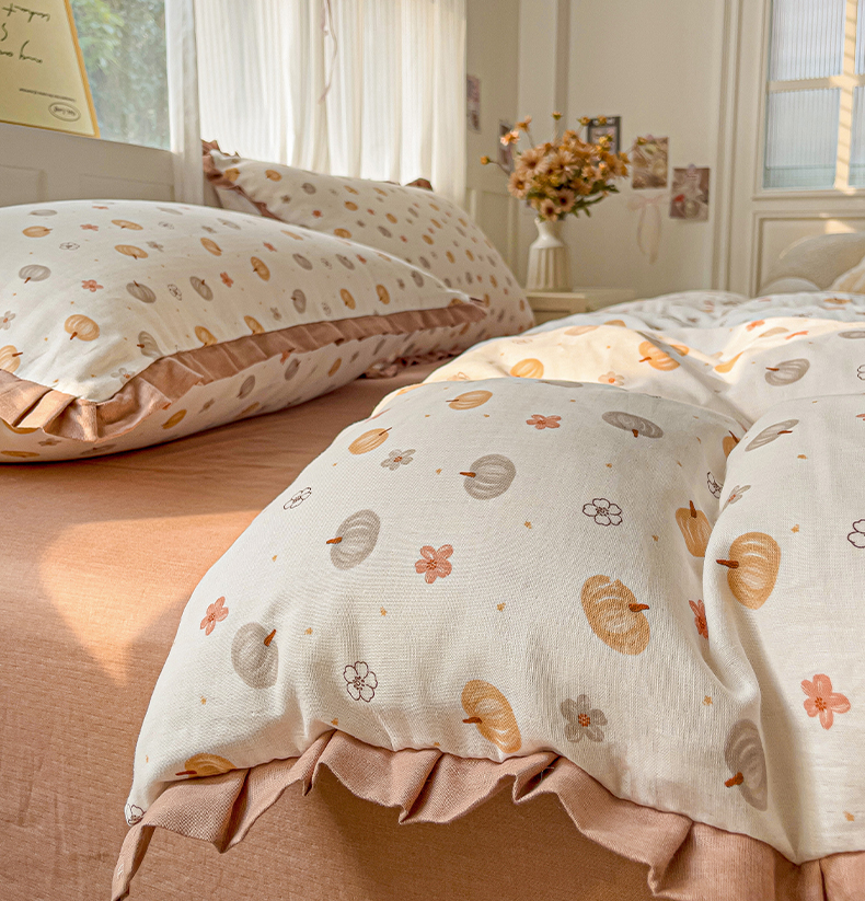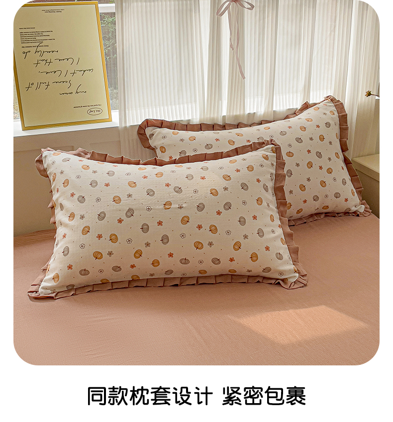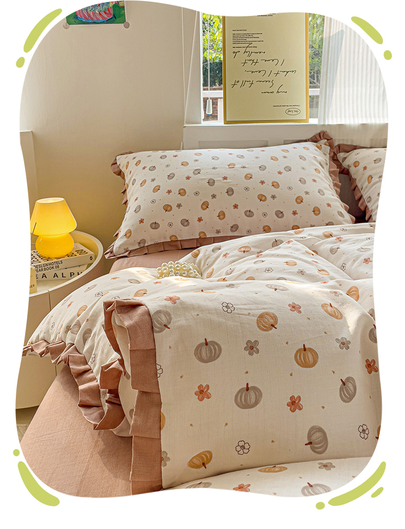 忆生活家纺 2025新款全棉韩版双层纱花边款四件套 奶油南瓜