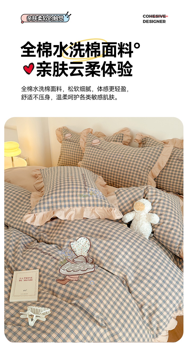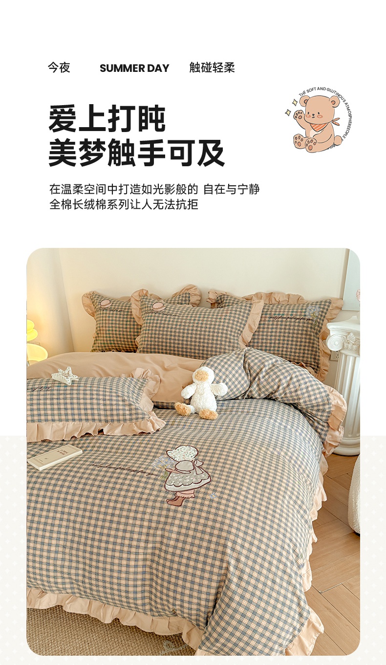 当前位置: 91家纺网 > 商品网购 > 床品套件 > 四件套 > 全棉普通四件套 > 蜜柚 2025新款色织水洗棉贴布花边款四件套-童趣 童趣-浅玉