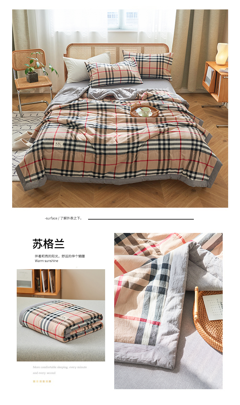 • 91家纺网 家纺一手货源 找家纺 2025新款A类纯棉水洗棉色织棉花夏被四件套全棉空调被夏凉被 温尼烟兰