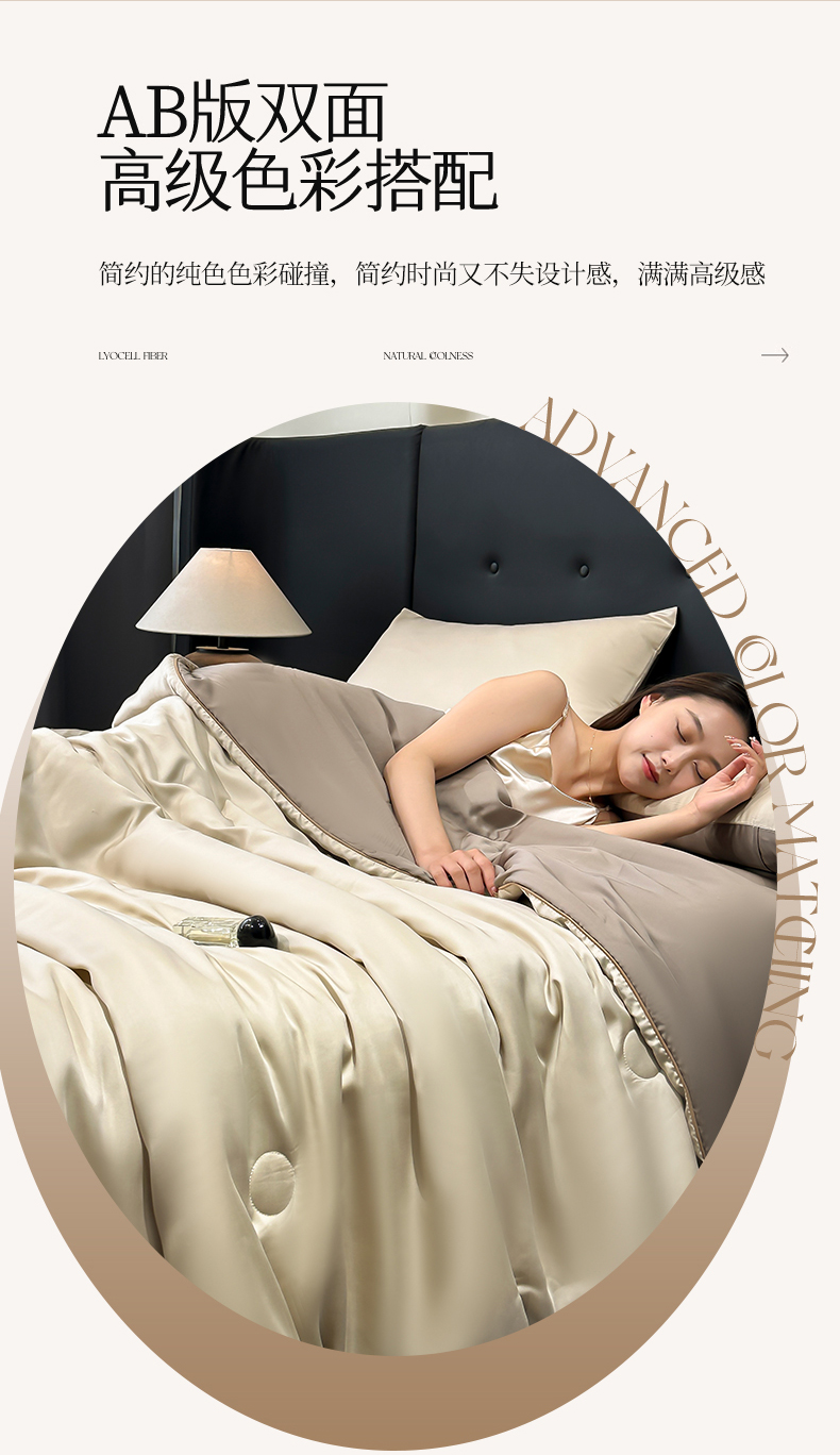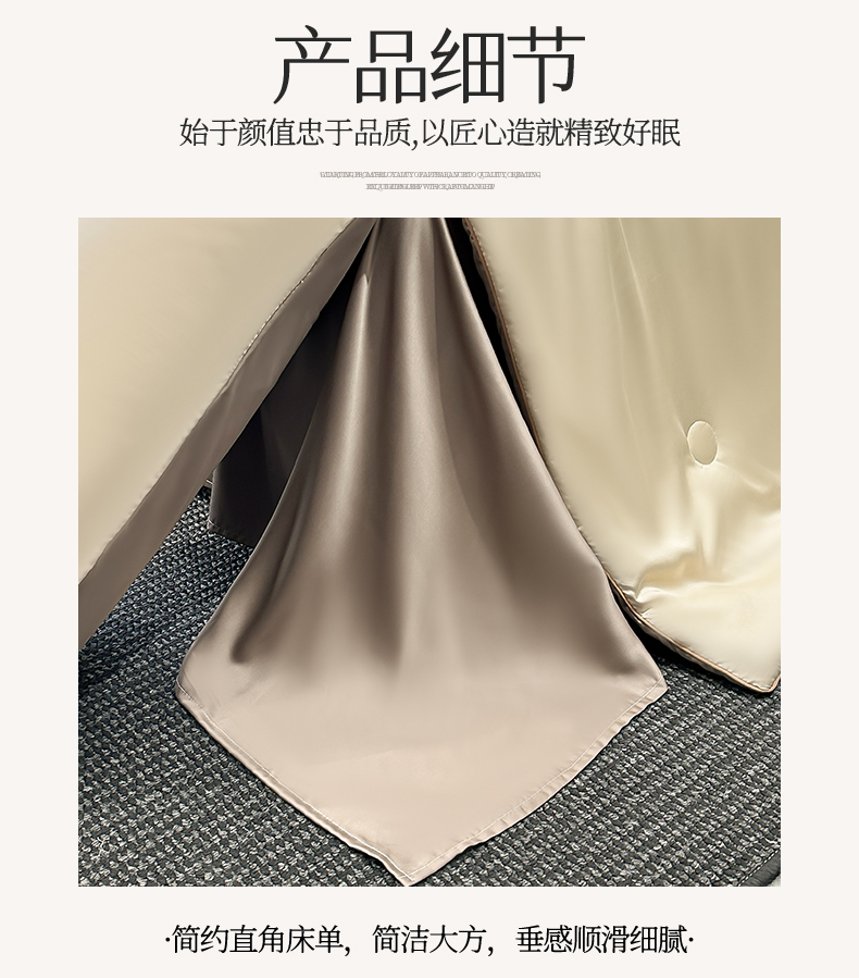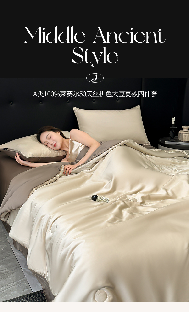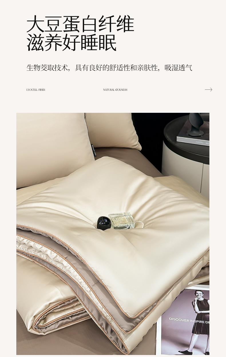 当前位置: 91家纺网 > 商品网购 > 床品套件 > 四件套 > 夏被四件套 > 金鹰 2025新款A类莱赛尔50天丝拼色空调被大豆夏被四件套 香槟金