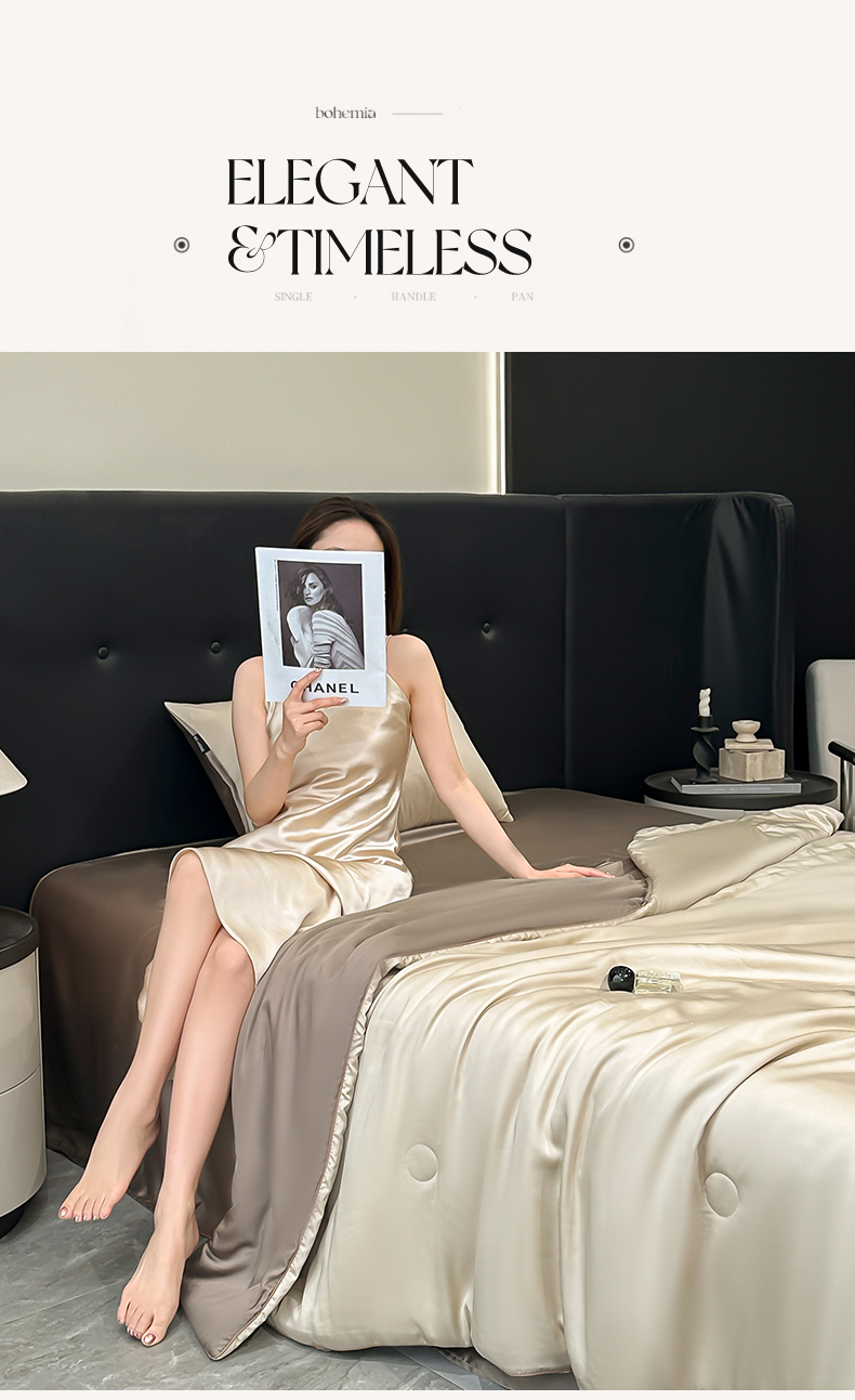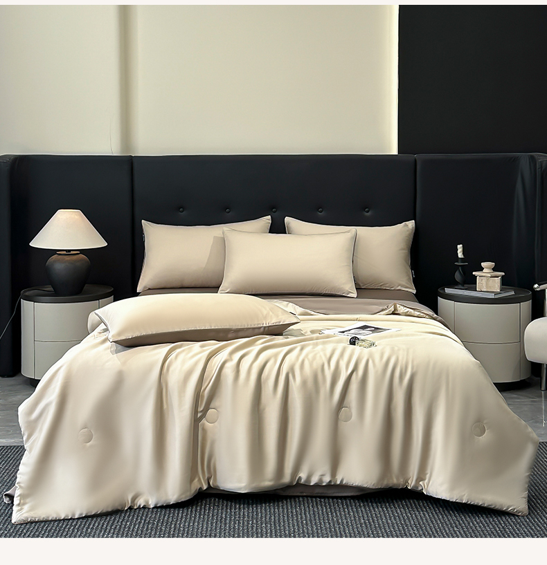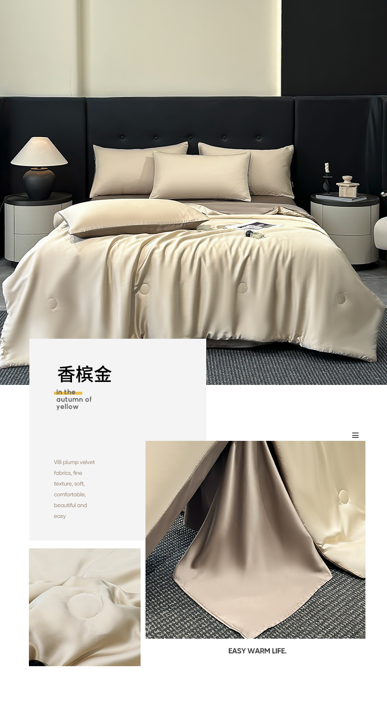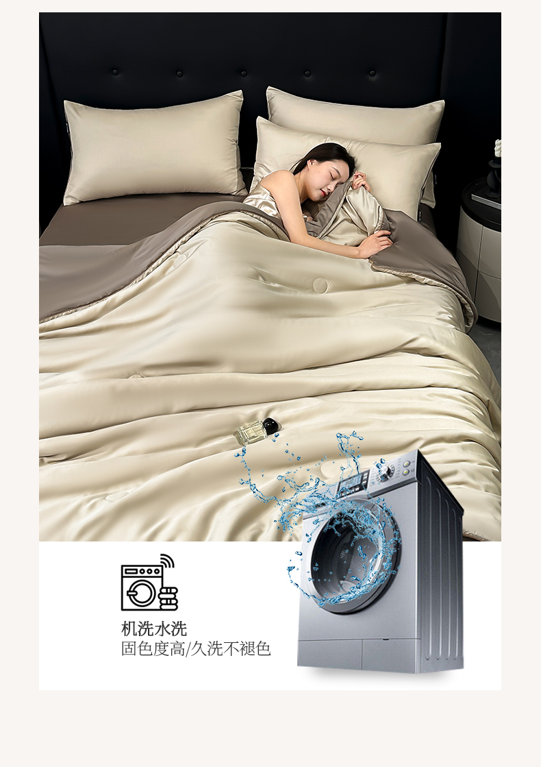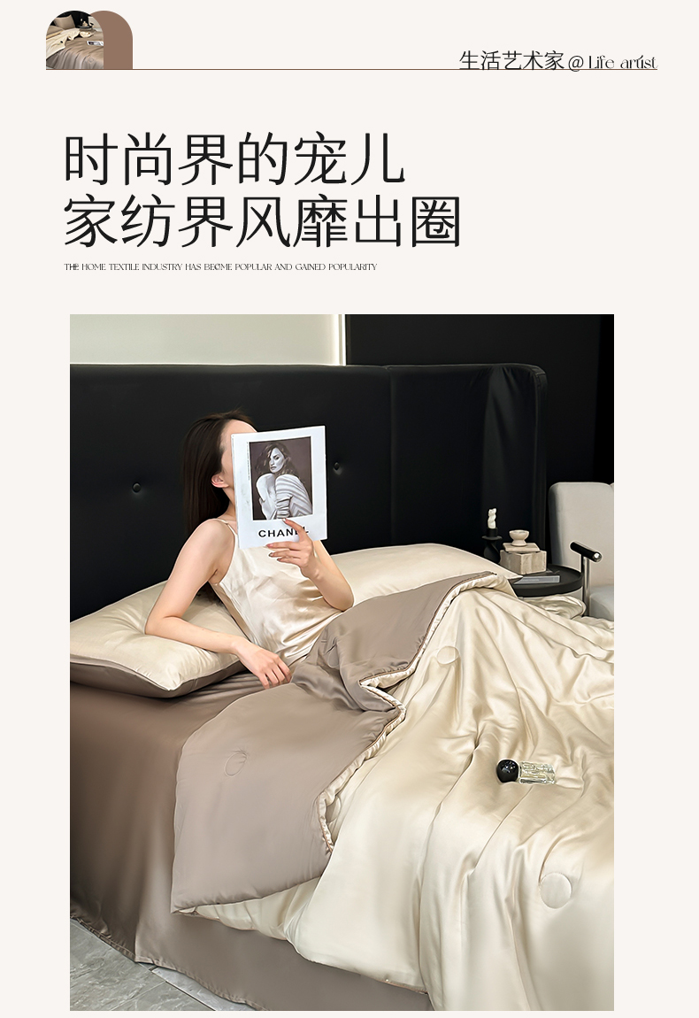 当前位置: 91家纺网 > 商品网购 > 床品套件 > 四件套 > 夏被四件套 > 金鹰 2025新款A类莱赛尔50天丝拼色空调被大豆夏被四件套 香槟金