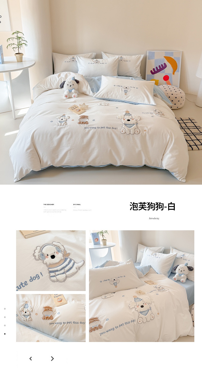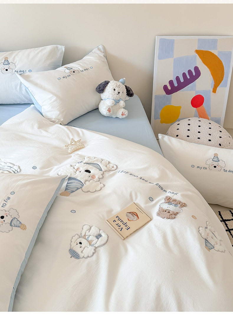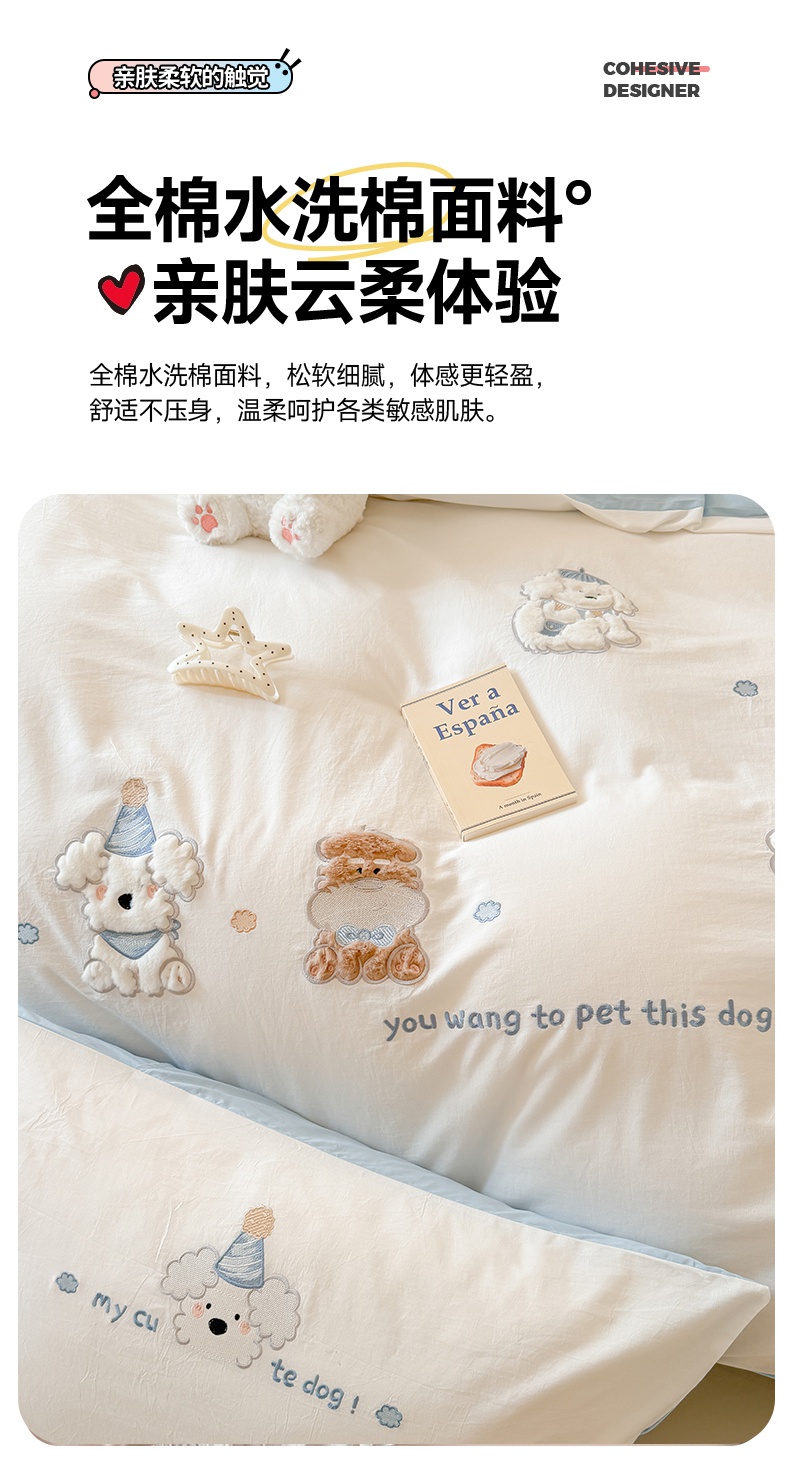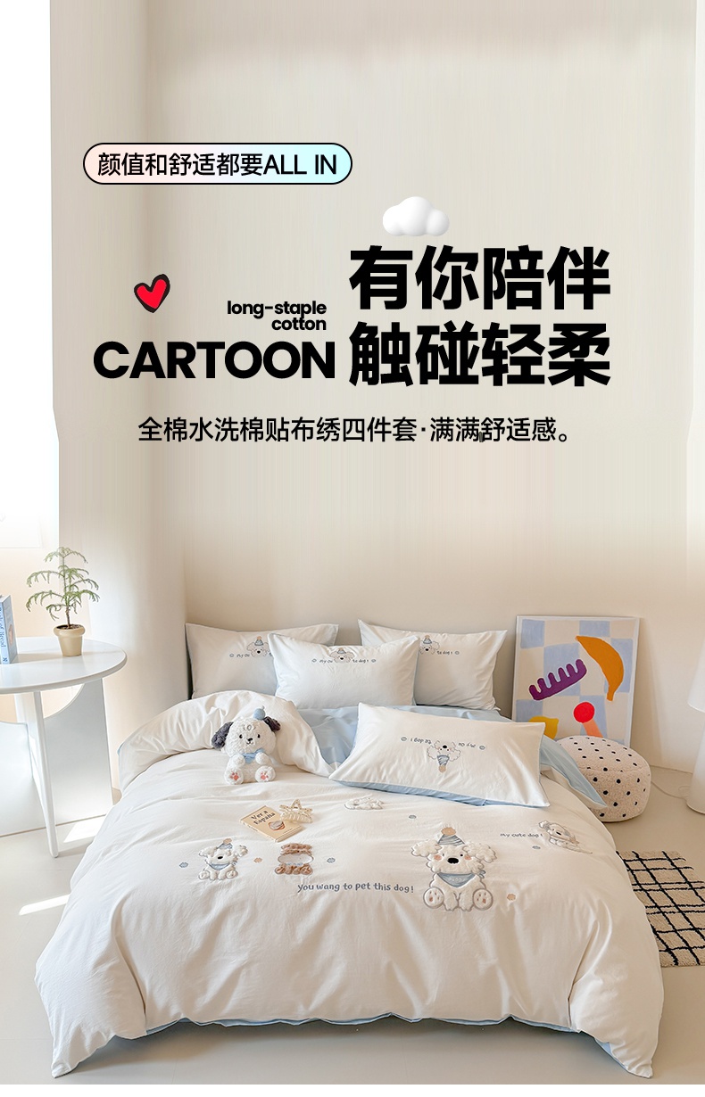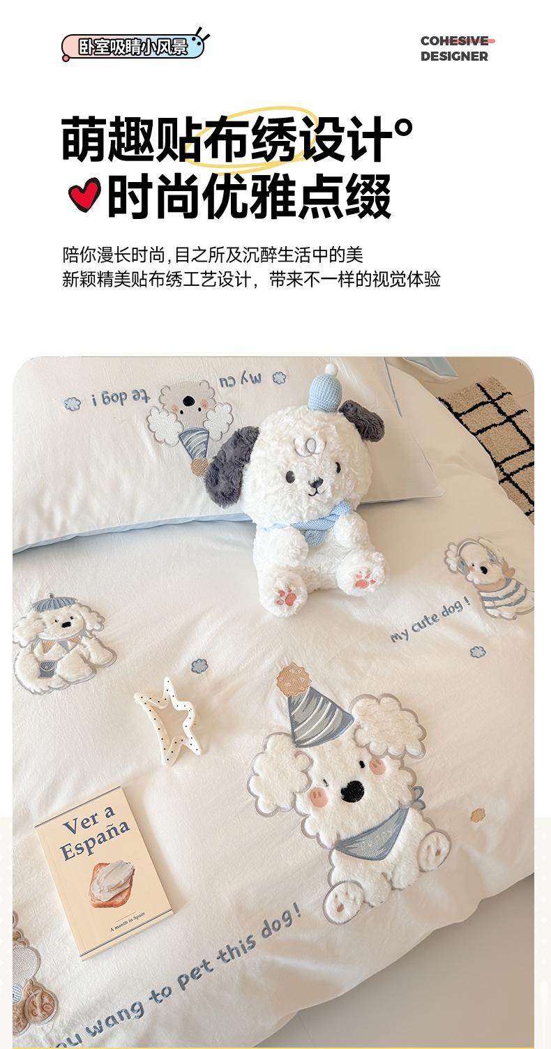 当前位置: 91家纺网 > 商品网购 > 床品套件 > 四件套 > 水洗棉四件套 > 2025新款全棉水洗棉贴布卡通四件套-泡芙狗狗 泡芙狗狗-白