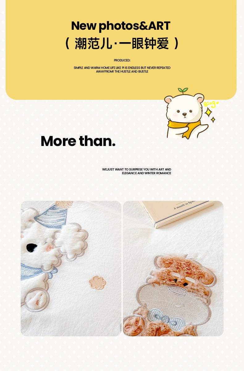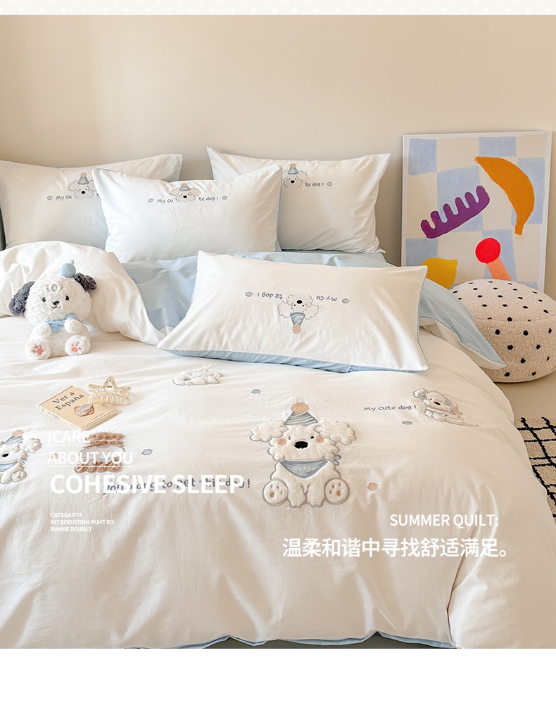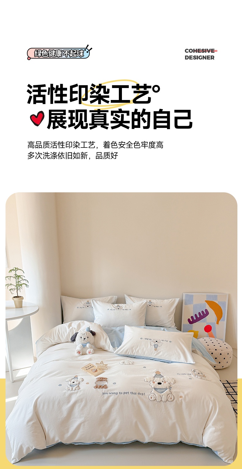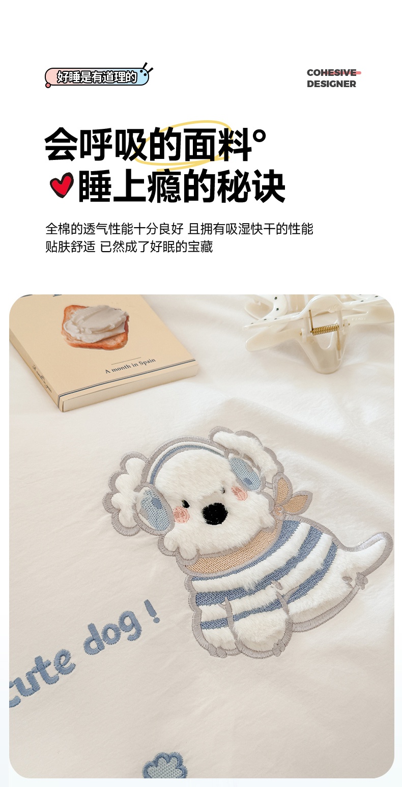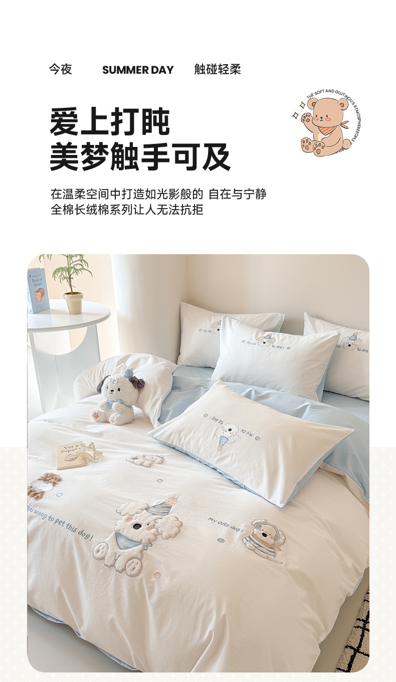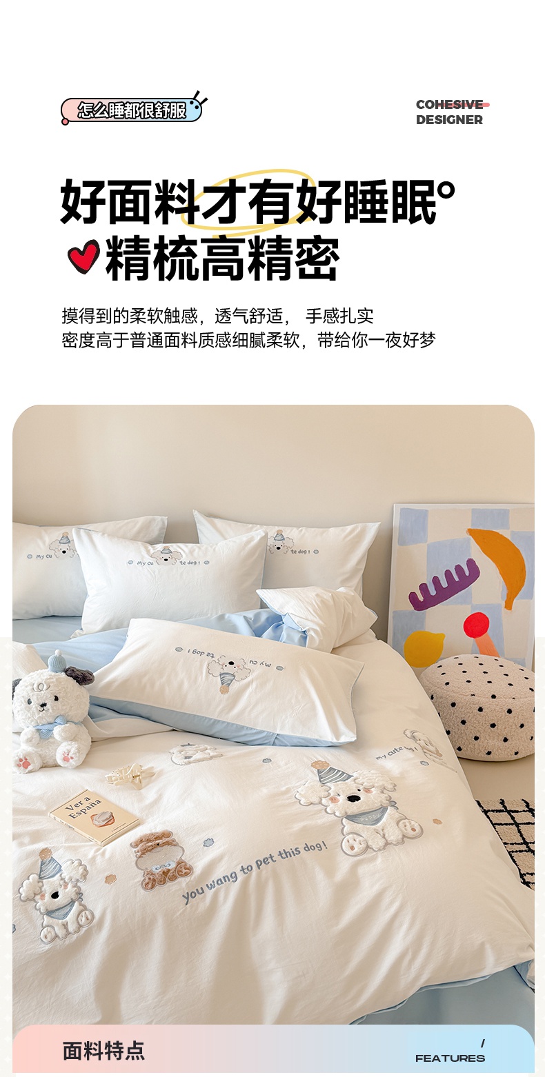 当前位置: 91家纺网 > 商品网购 > 床品套件 > 四件套 > 水洗棉四件套 > 2025新款全棉水洗棉贴布卡通四件套-泡芙狗狗 泡芙狗狗-白