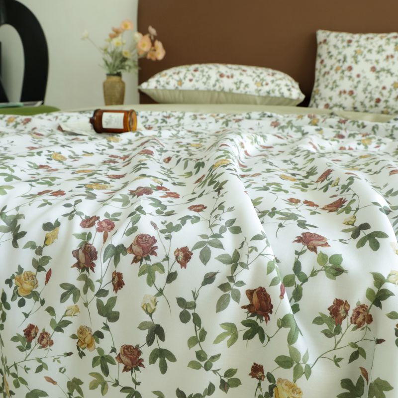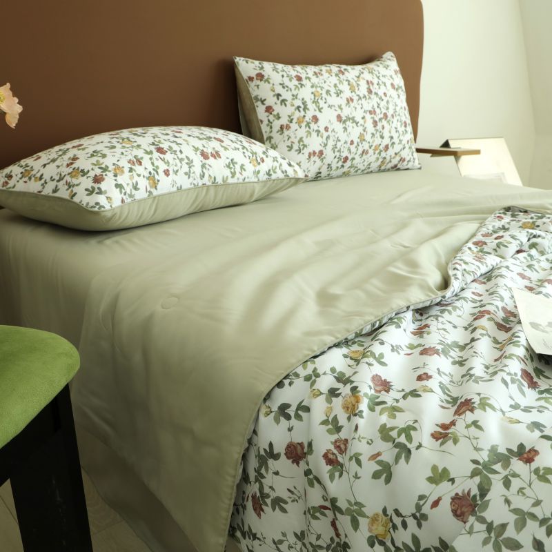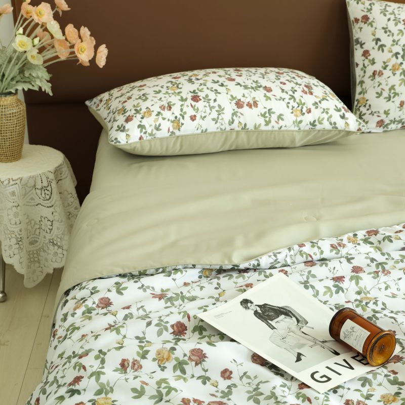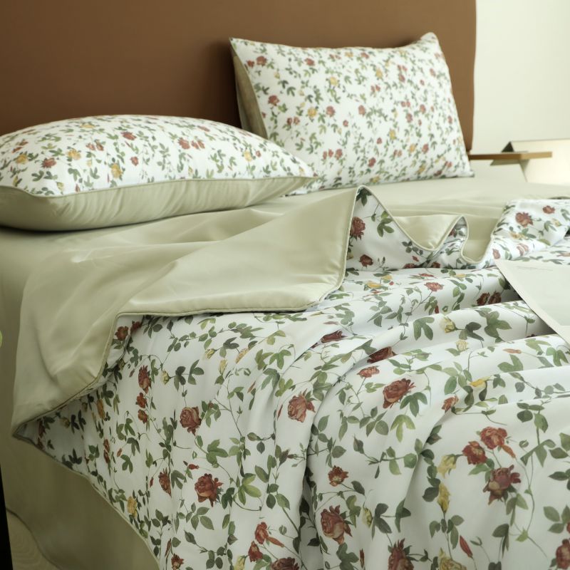 商品名称:朵美 2025新款50支天丝印花夏被+夏被四件套 烂漫-红
