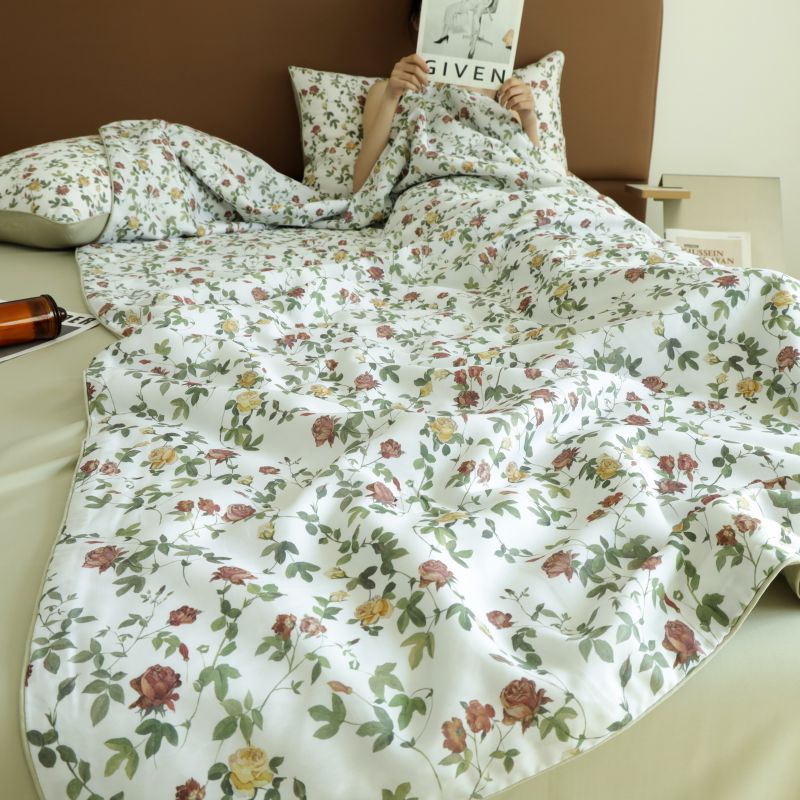 朵美 2025新款50支天丝印花夏被+夏被四件套 烂漫-红