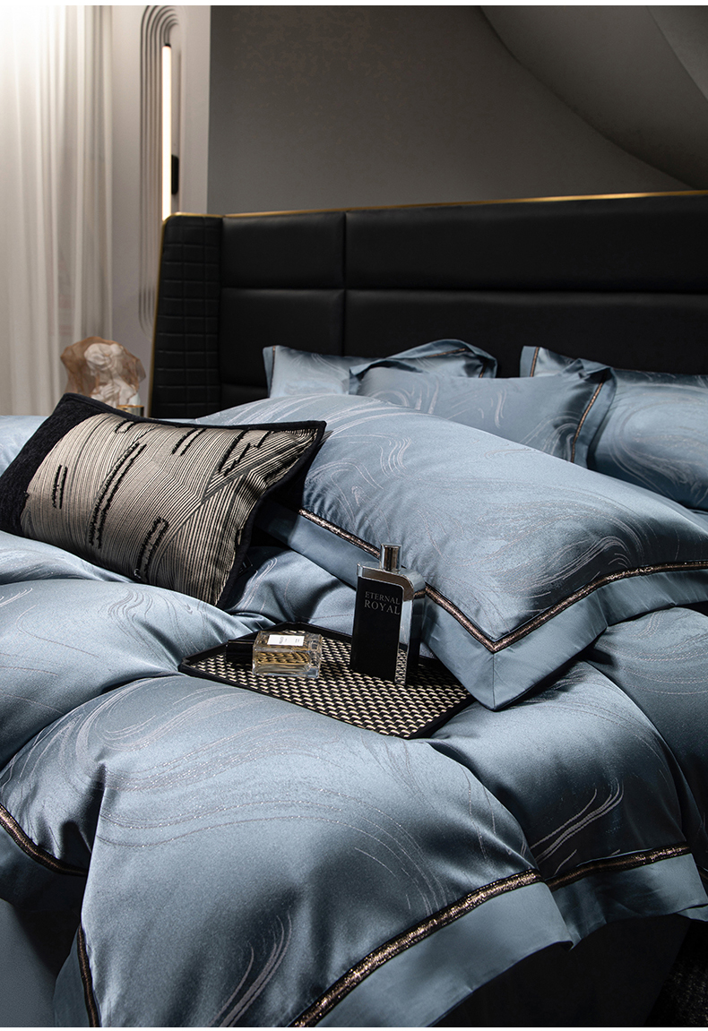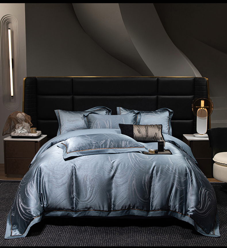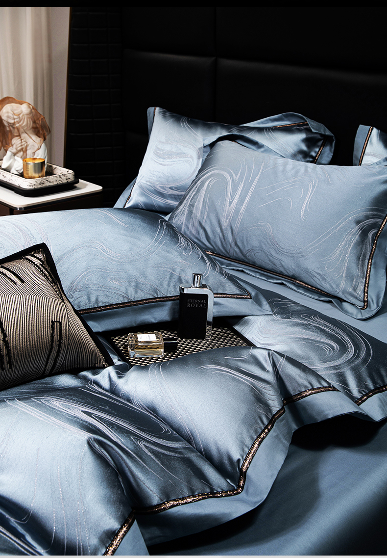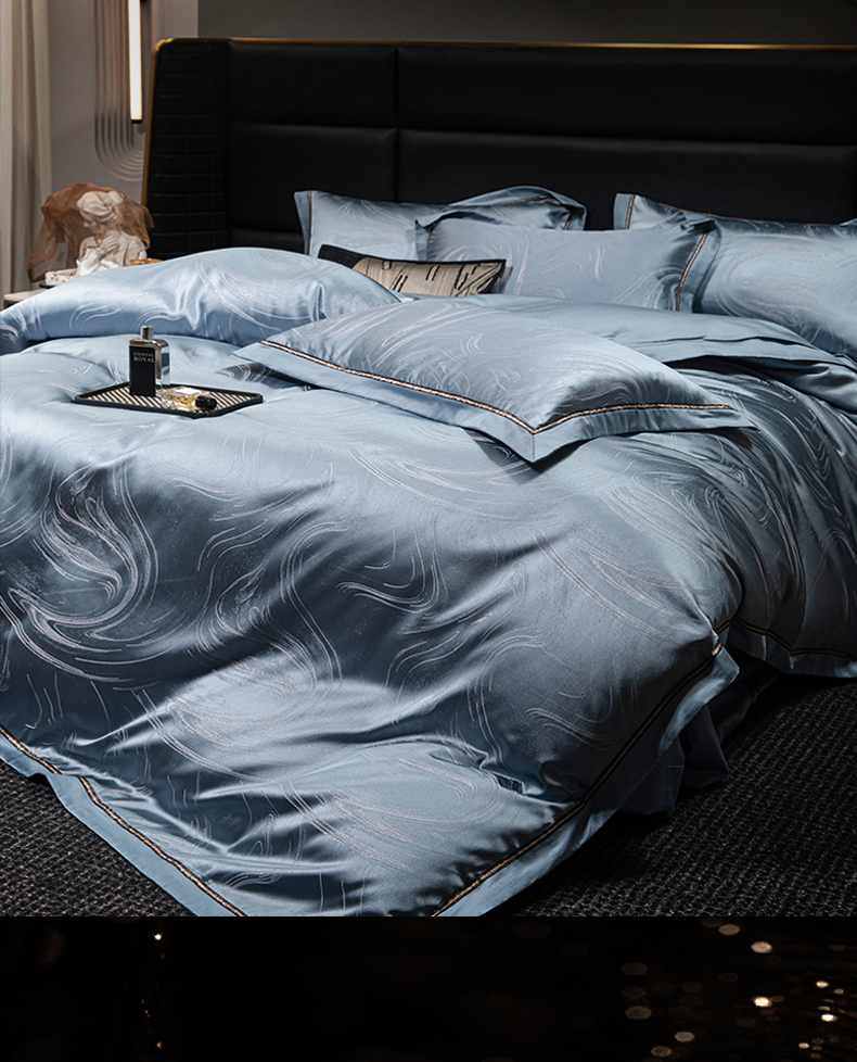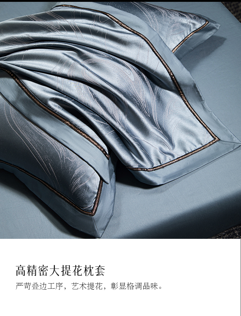 商品名称:暖洋 2025新款600T高精密莫代尔大提花CP100支新疆长绒棉四件套全棉四件套【礼盒包装】 钻石蓝