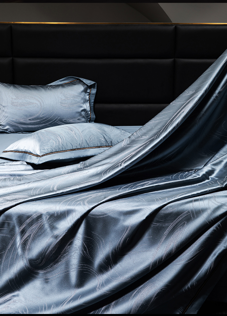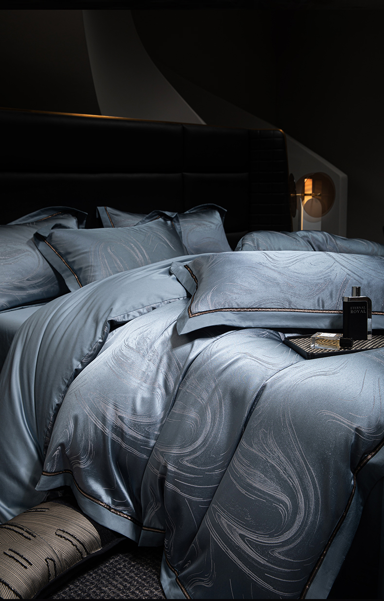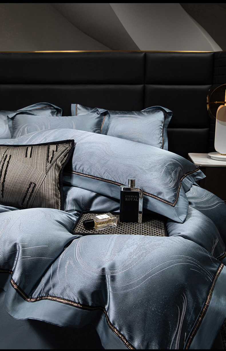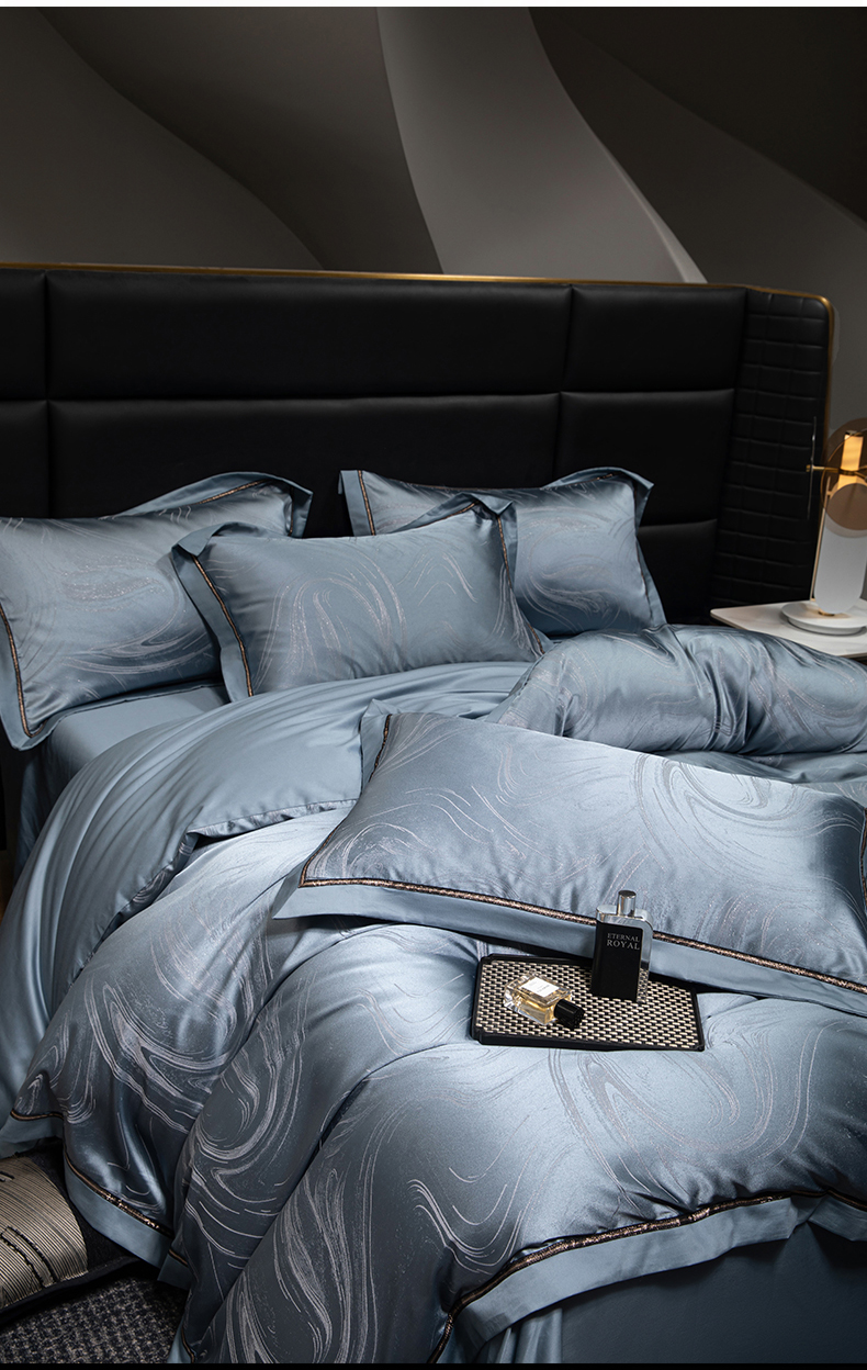 商品名称:暖洋 2025新款600T高精密莫代尔大提花CP100支新疆长绒棉四件套全棉四件套【礼盒包装】 钻石蓝