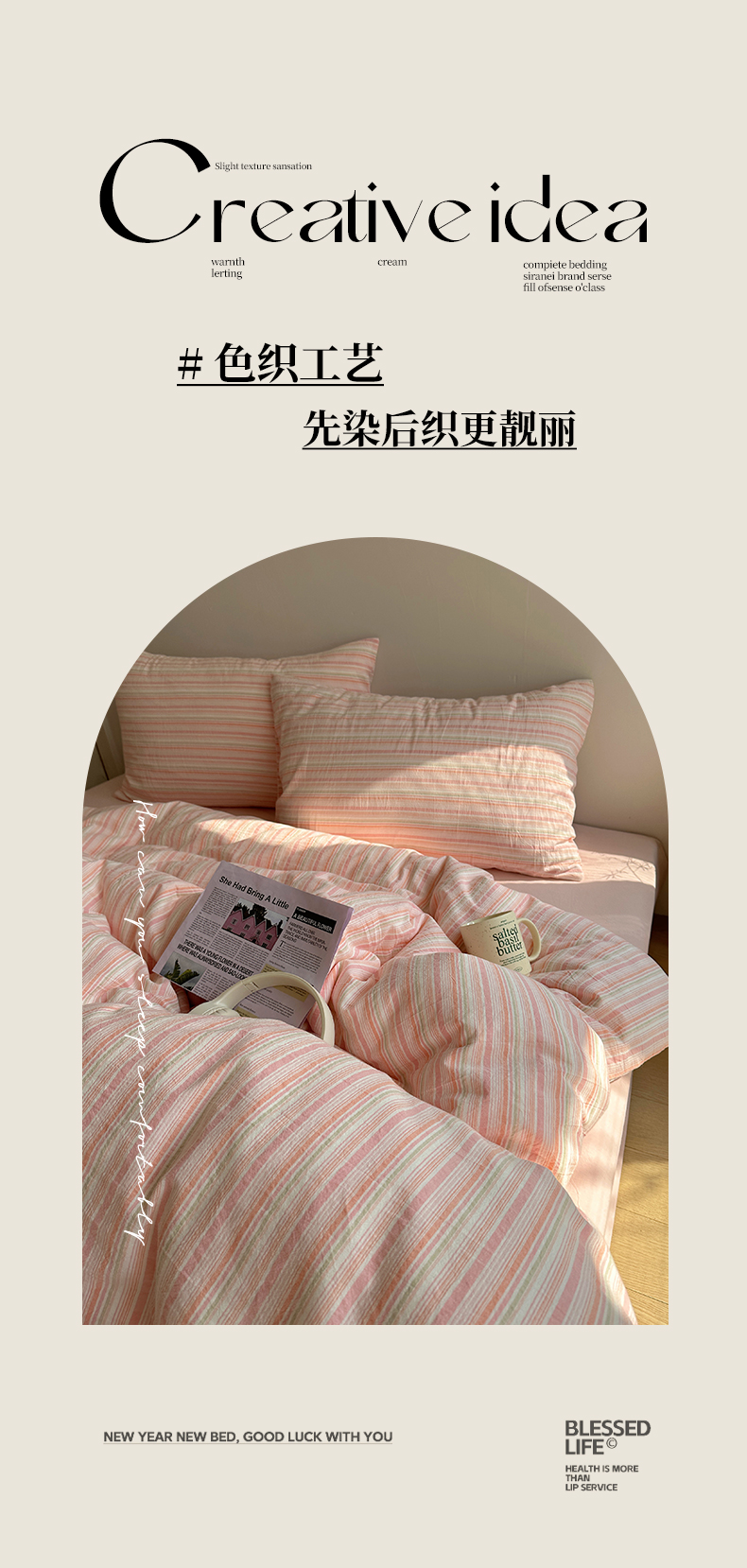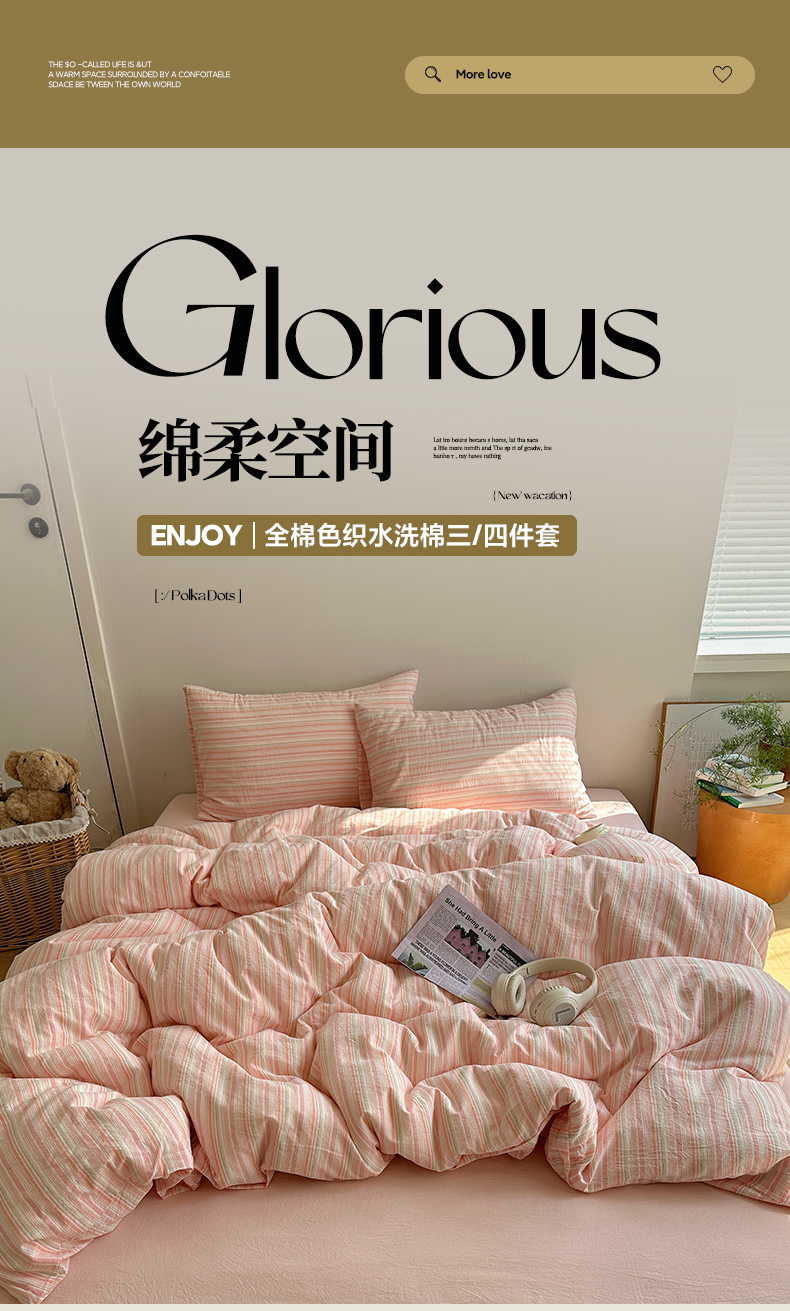 当前位置: 91家纺网 > 商品网购 > 床品套件 > 四件套 > 水洗棉四件套 > 艾咪-Amy ntmy 2025新款条纹款全棉色织水洗棉四件套 时光粉