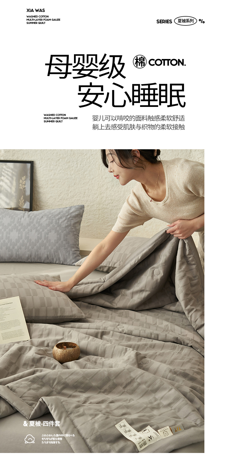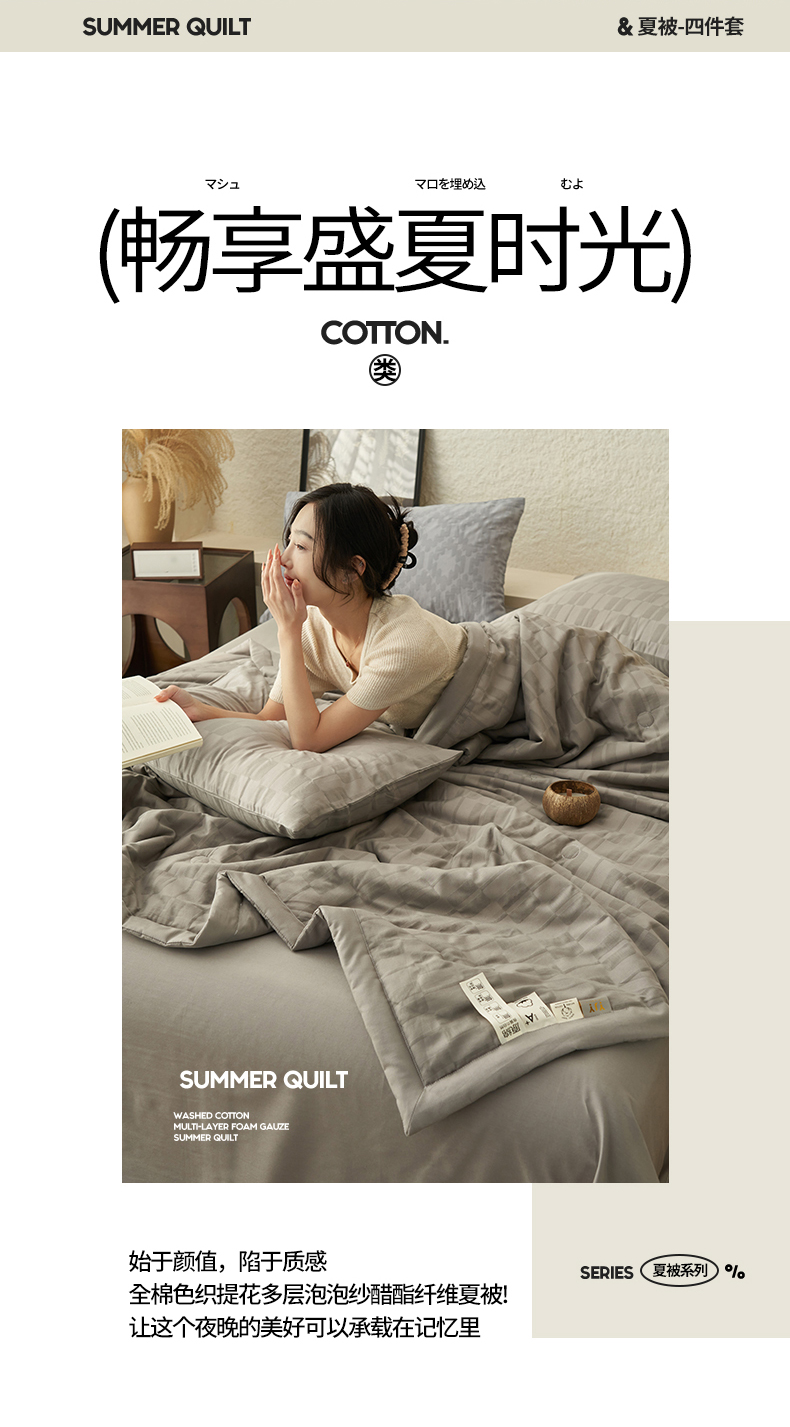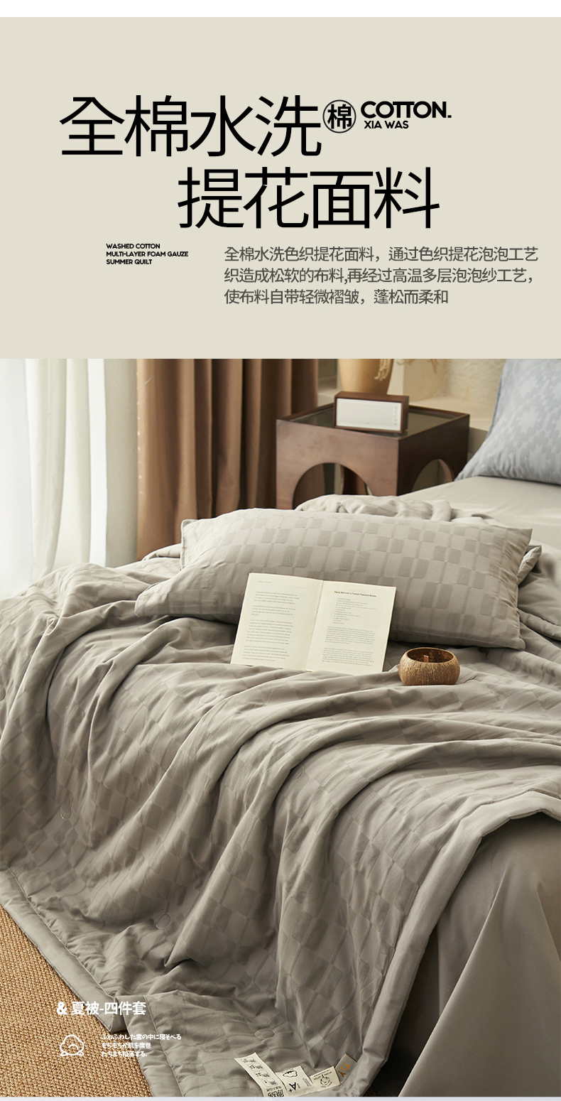 当前位置: 91家纺网 > 商品网购 > 床品套件 > 四件套 > 夏被四件套 > 一加一 2025新款全棉水洗色织提花多层泡泡纱娜雅醋酯夏被四件套 串串-松林灰