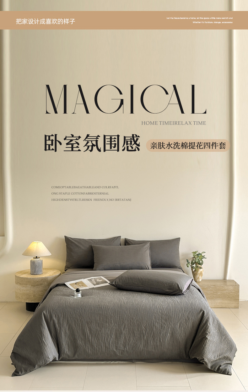 当前位置: 91家纺网 > 商品网购 > 床品套件 > 四件套 > 提花四件套 > 欣晴家纺 2025新款亲肤水洗棉简约大提花四件套 高级灰