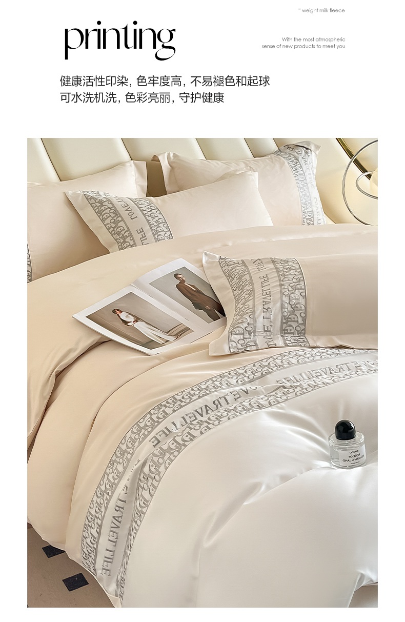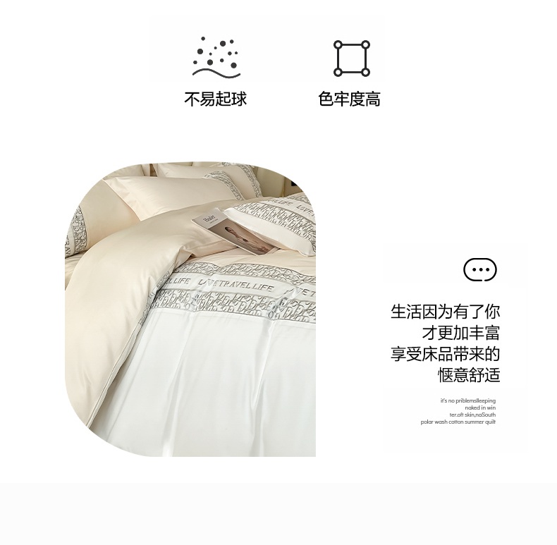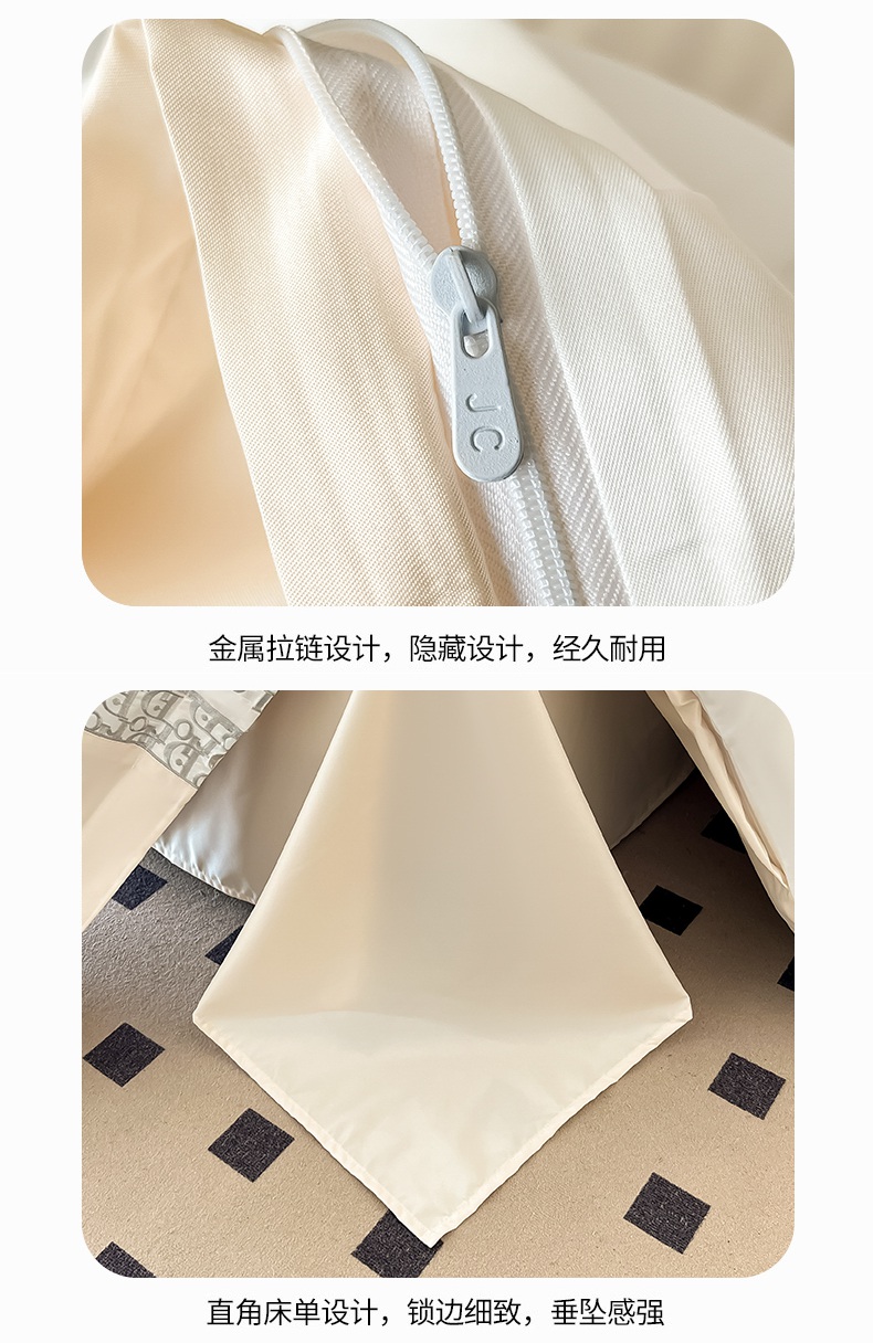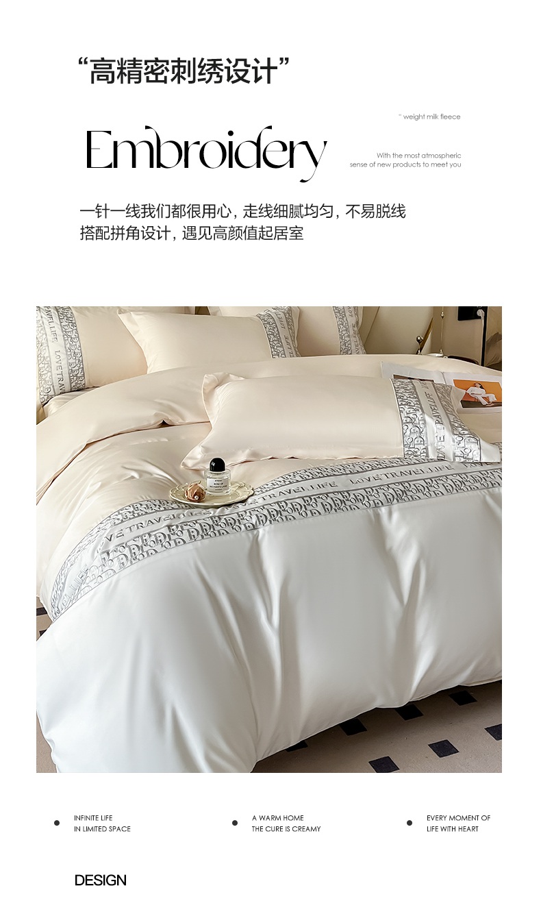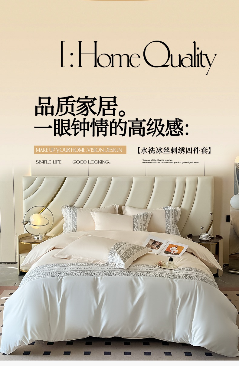 商品名称:yyds网供 2025新款礼盒装水洗冰丝拼接刺绣法式奢四件套AB版双拼春夏[礼盒装,会员-5] 绣花拼接-奶昔白