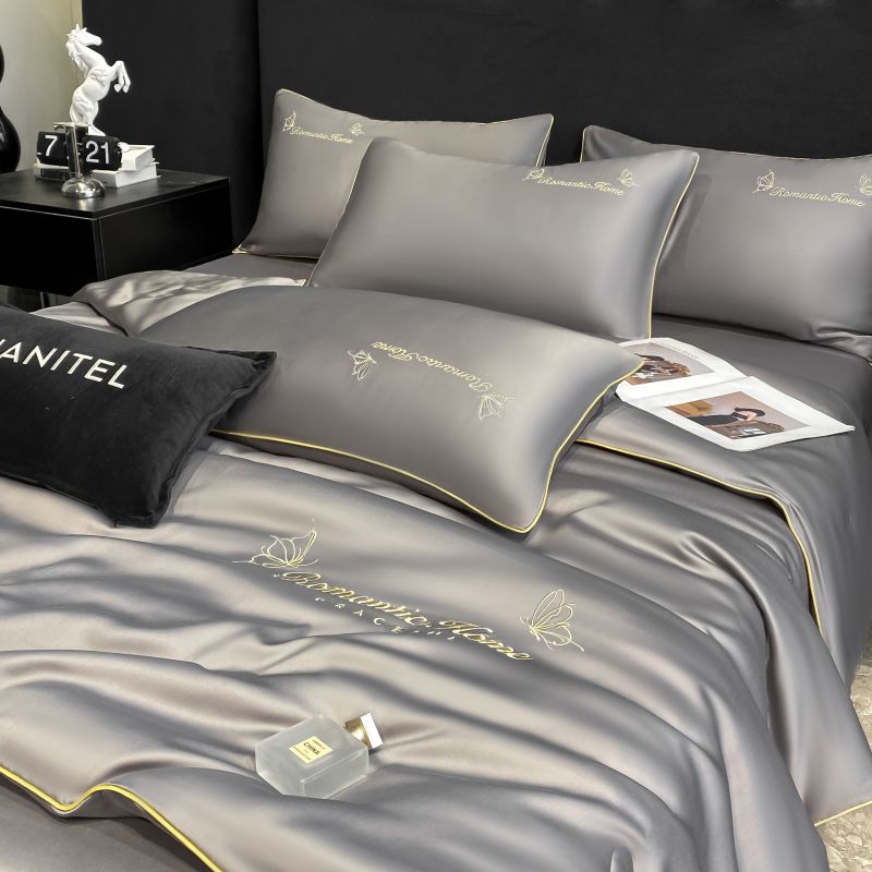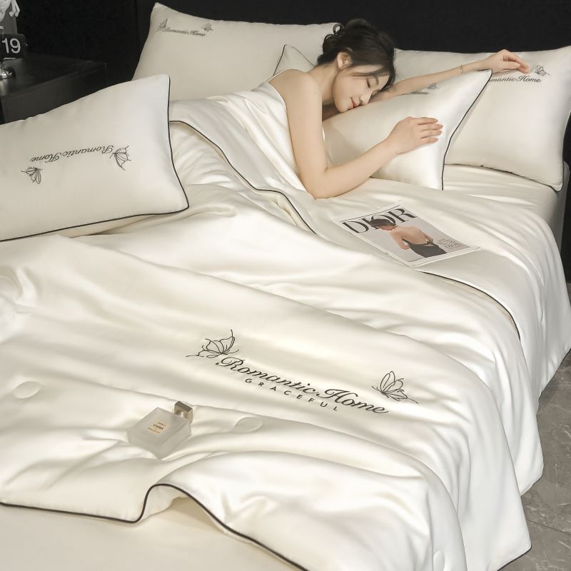 • 91家纺网 家纺一手货源 找家纺 无界 2025新款水洗真丝蝶羽梦夏被 冰川灰