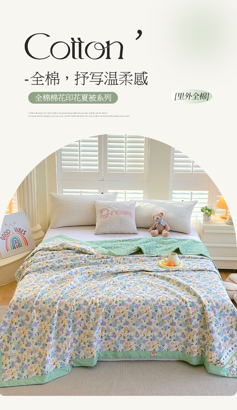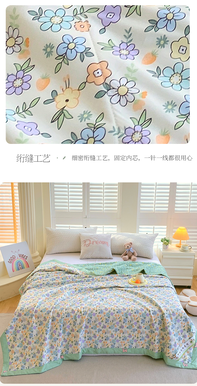 被子 > 夏被 > (自己工厂 有网销大热款 网销帮推可合作优惠)2025新款全棉夏被空调被夏凉被纯棉夏季儿童棉花薄被子 碎花细雨