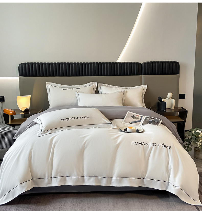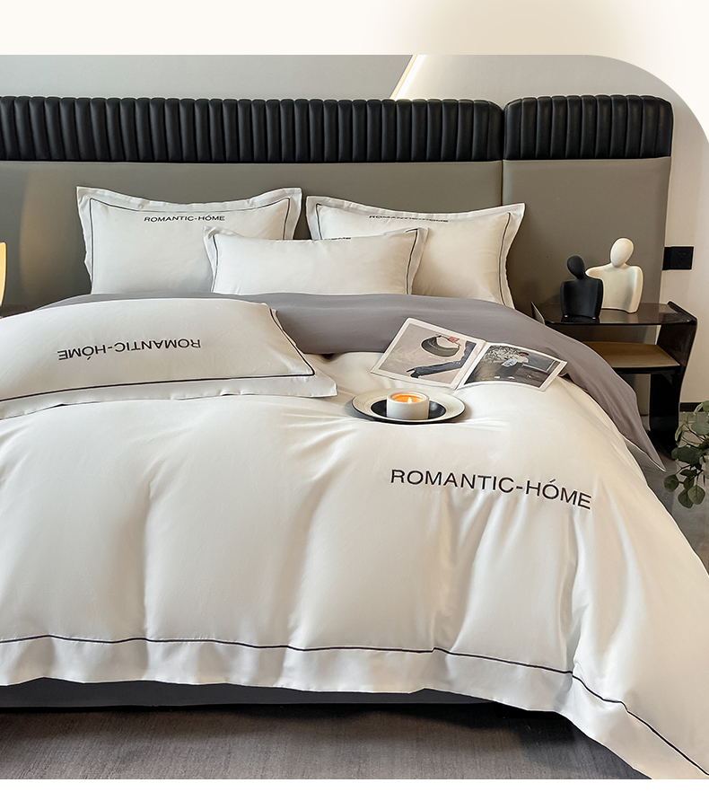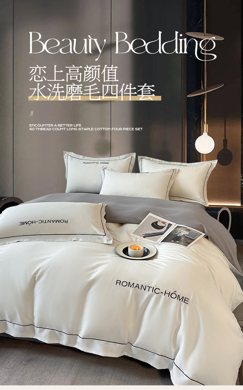 商品名称:2025新款轻奢家简约水洗磨毛四件套-艾文 本白-中灰
