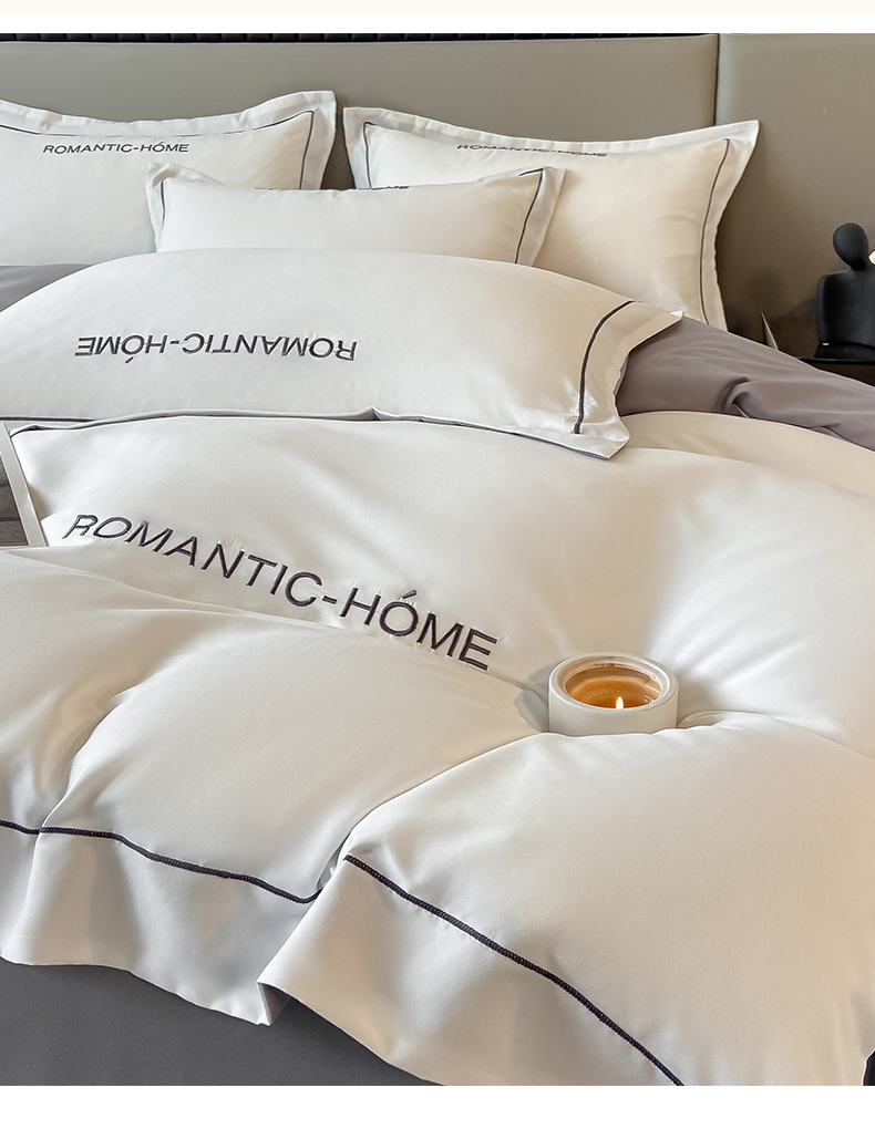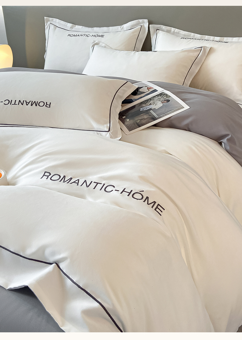 2025新款轻奢家简约水洗磨毛四件套-艾文 本白-中灰