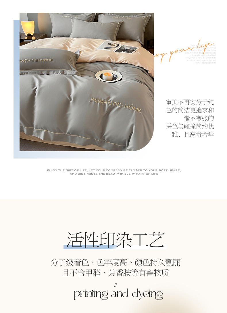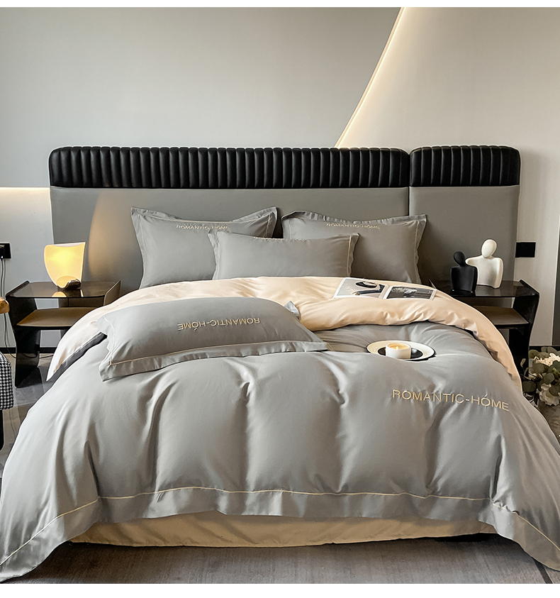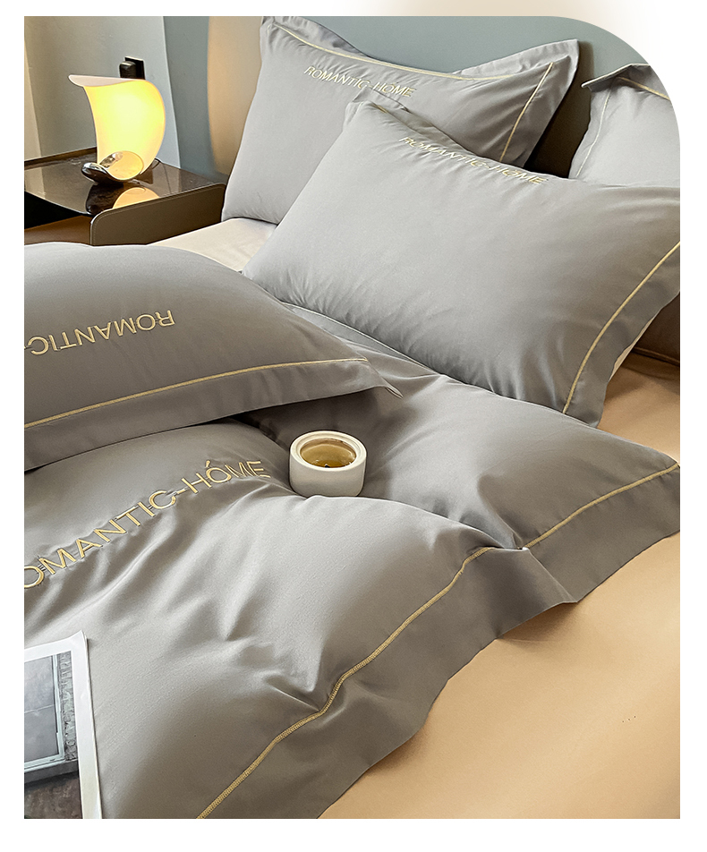 商品名称:2025新款轻奢家简约水洗磨毛四件套-艾文 中灰-奶茶