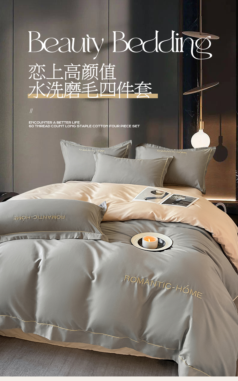 2025新款轻奢家简约水洗磨毛四件套-艾文 中灰-奶茶