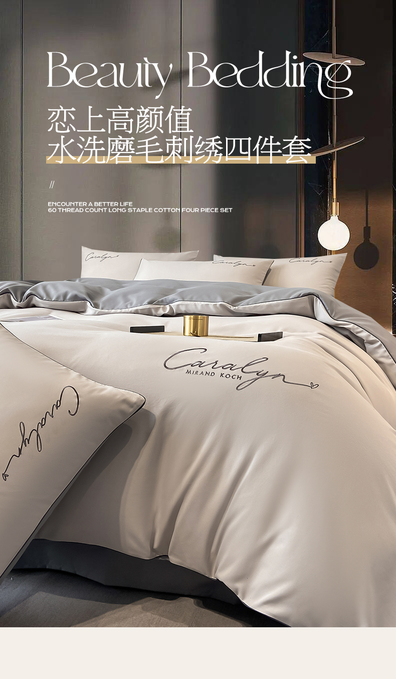 2025新款水洗磨毛刺绣四件套-慕斯 山灰+中灰