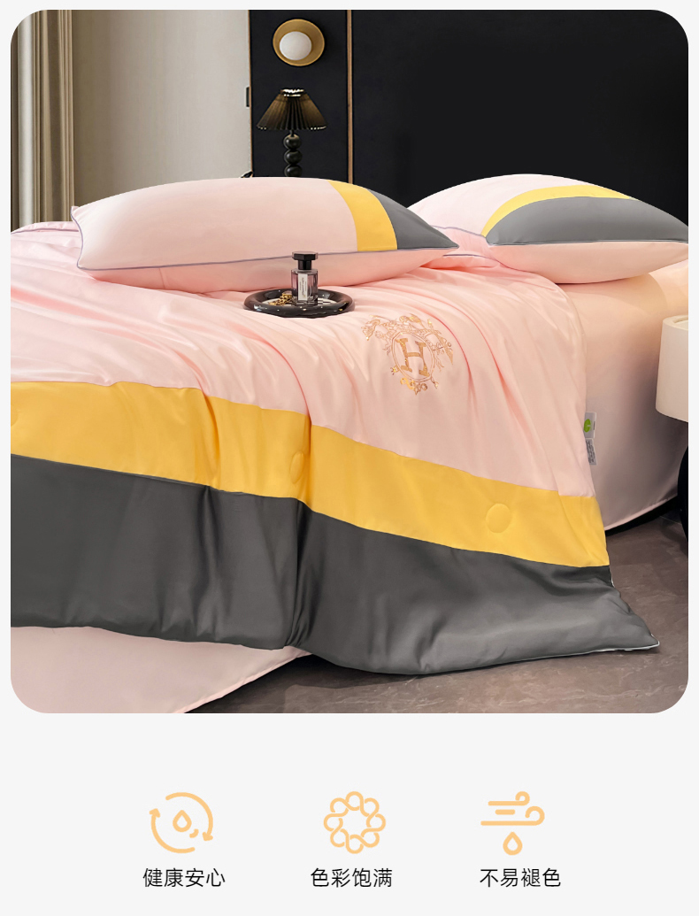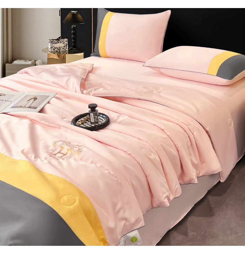 商品名称:梦舒羽 2025新款清凉舒适水洗冰丝双拼亮钻夏被四件套 双拼亮钻优雅粉