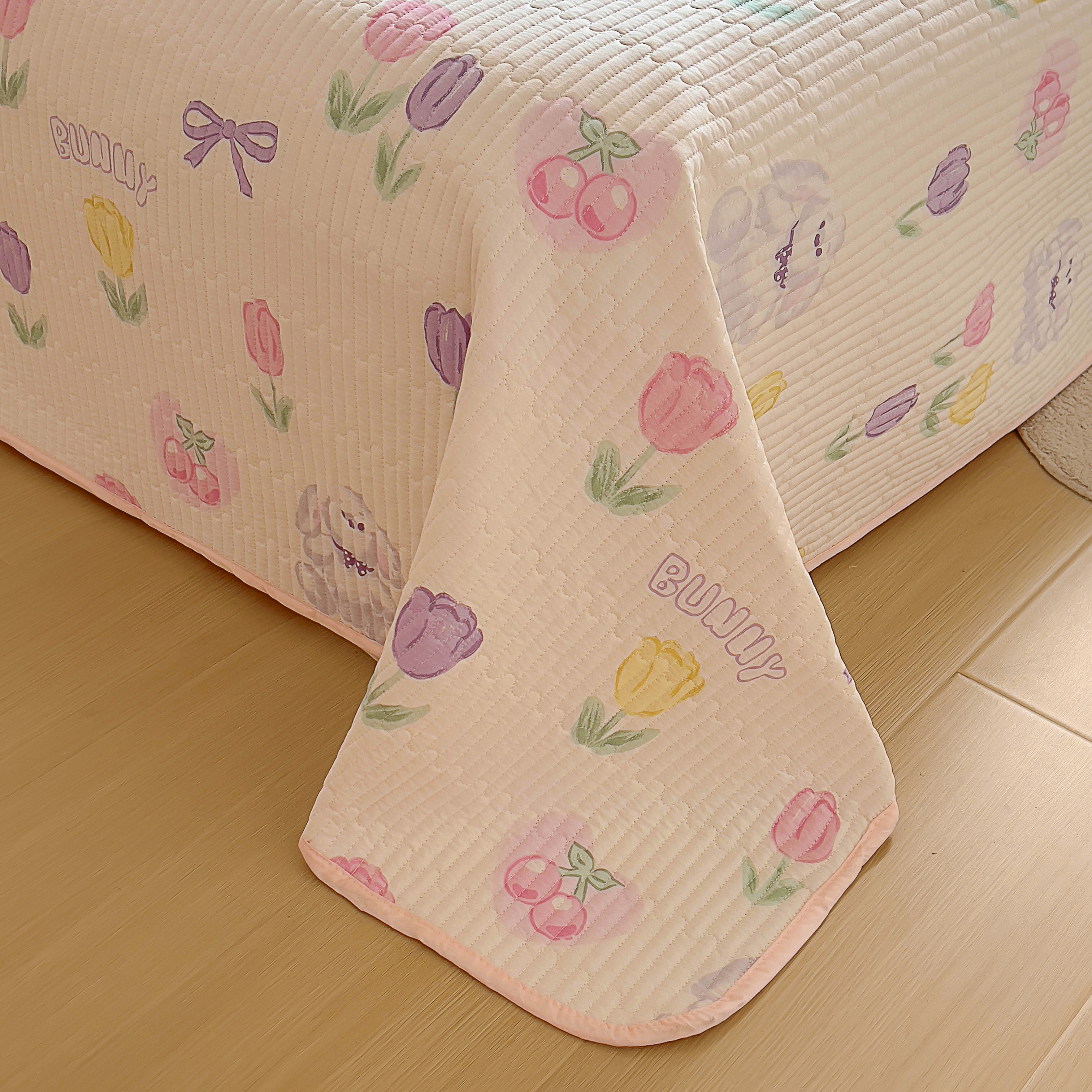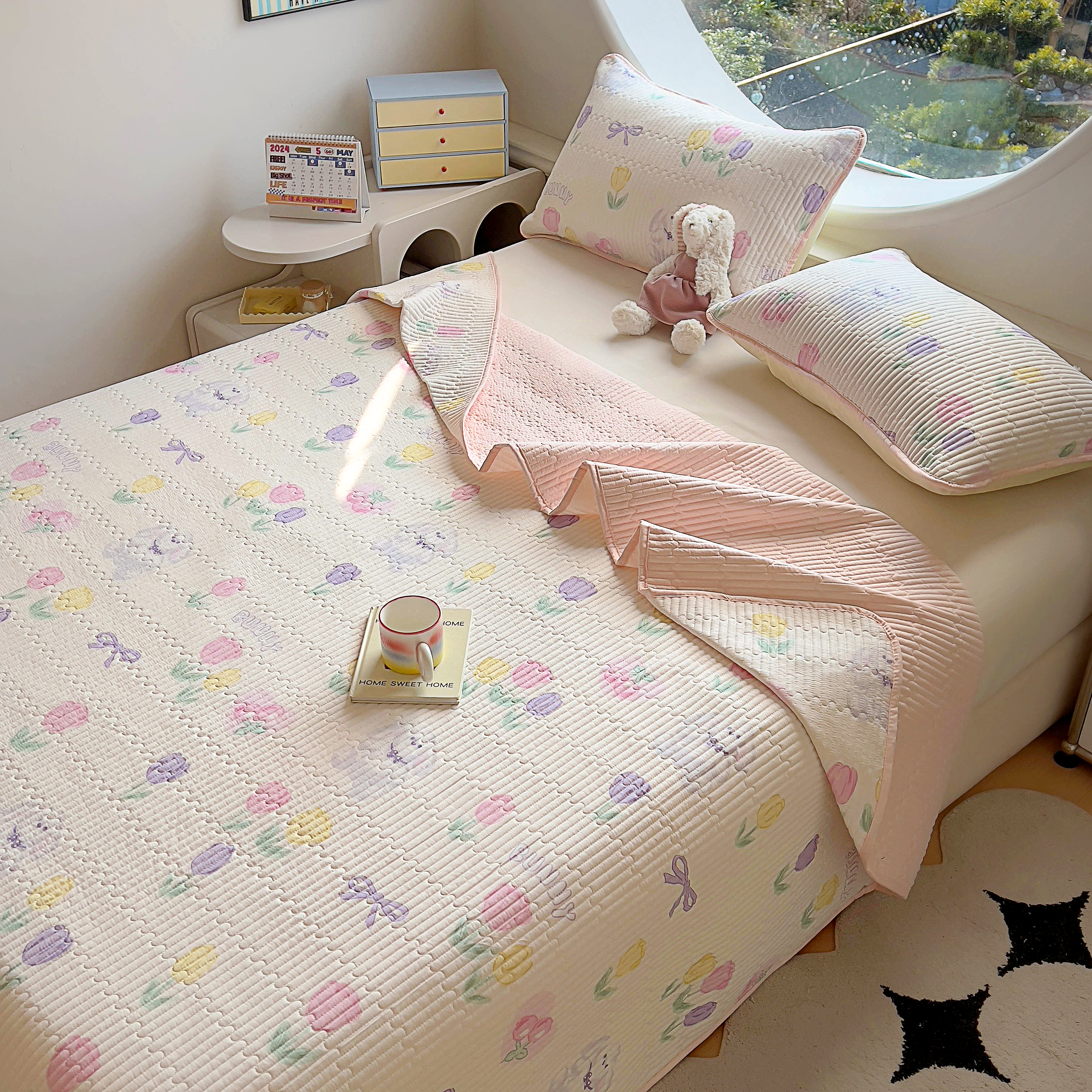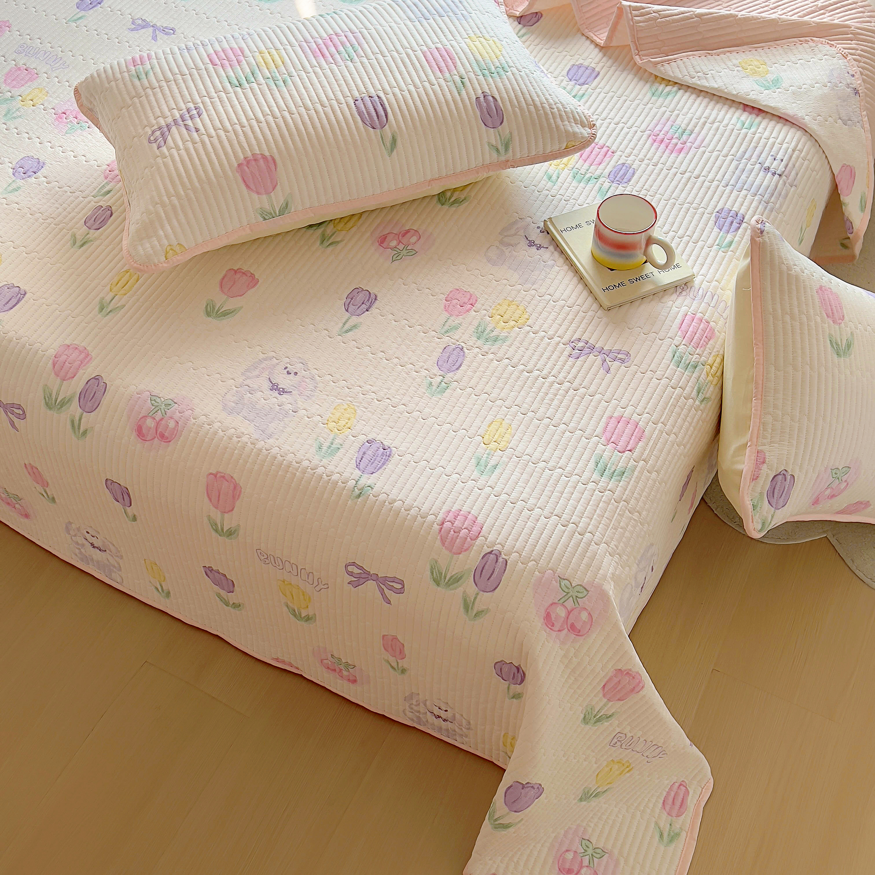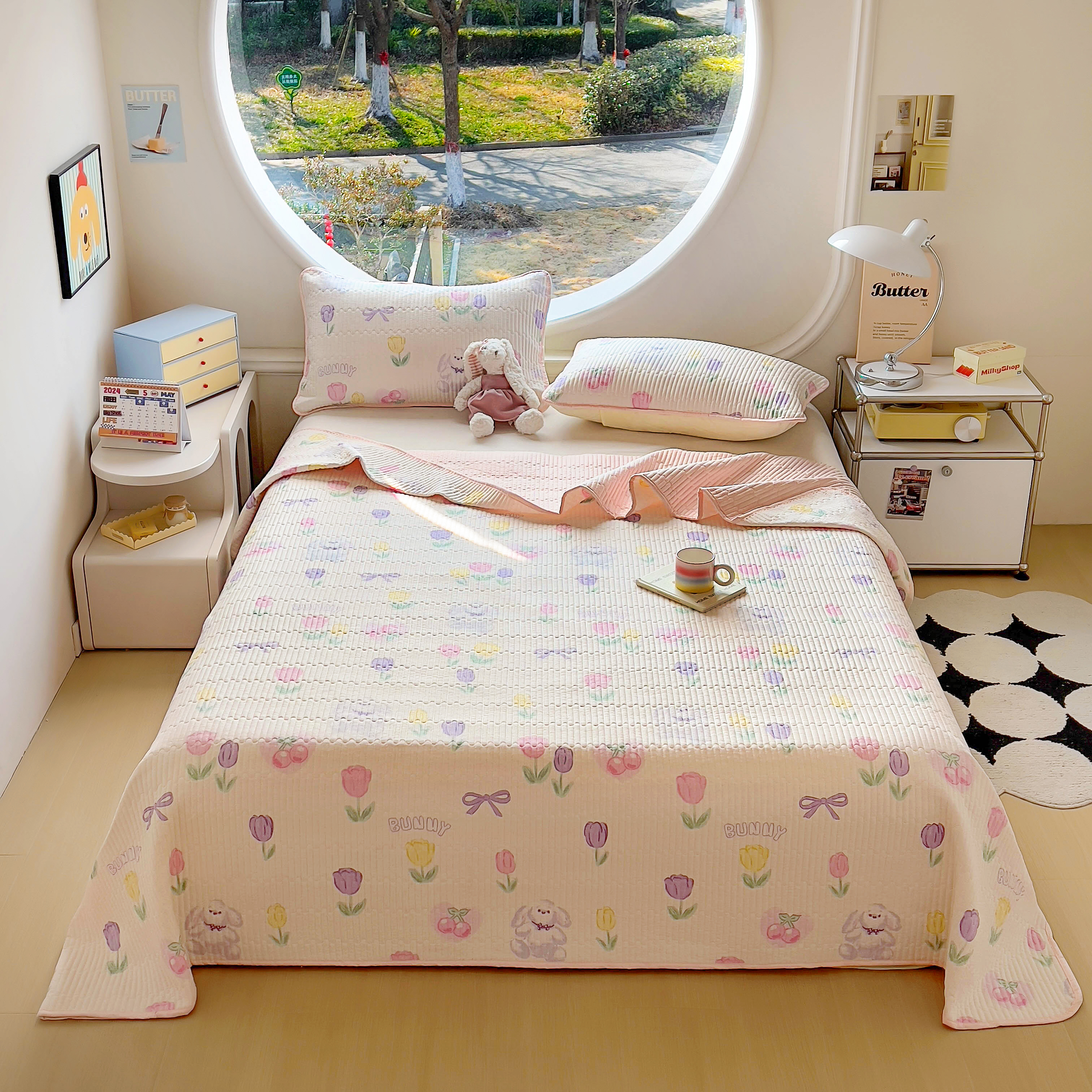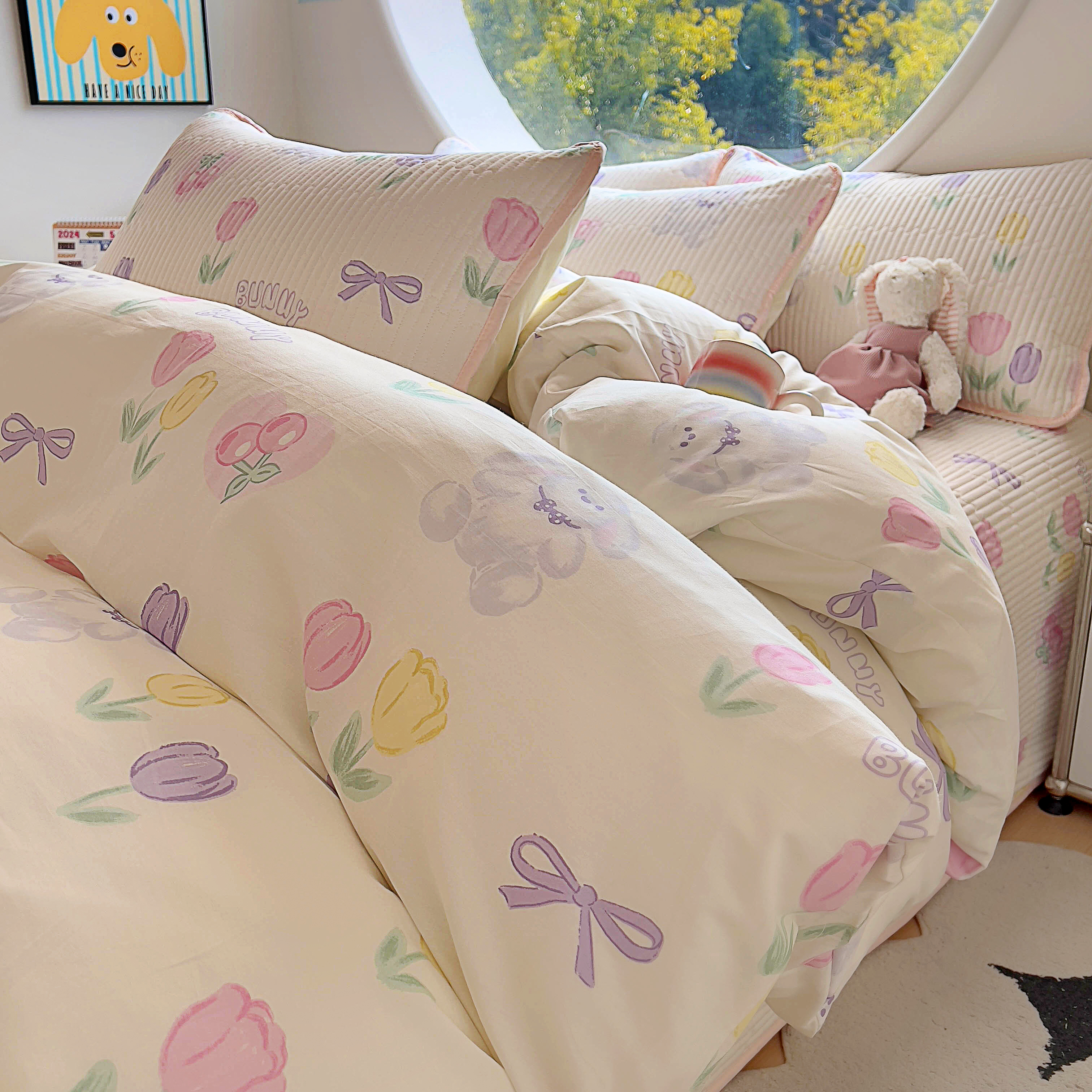 昊川家纺 2025新款时尚印花全棉床盖单被套四件套学生床盖套件 郁金香