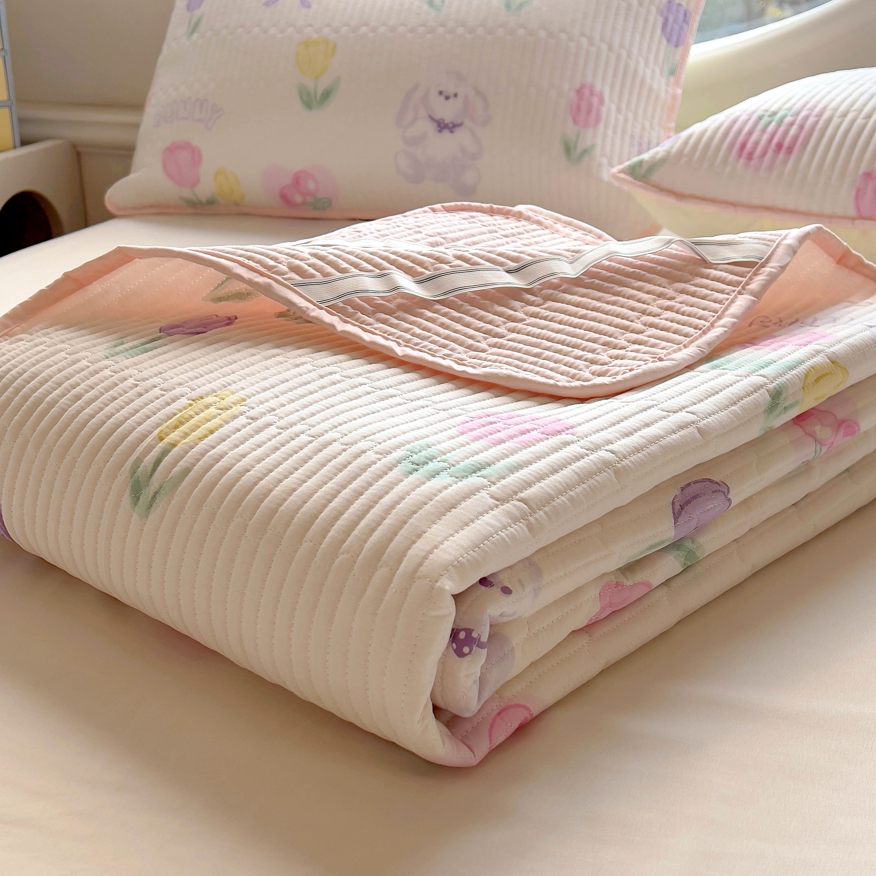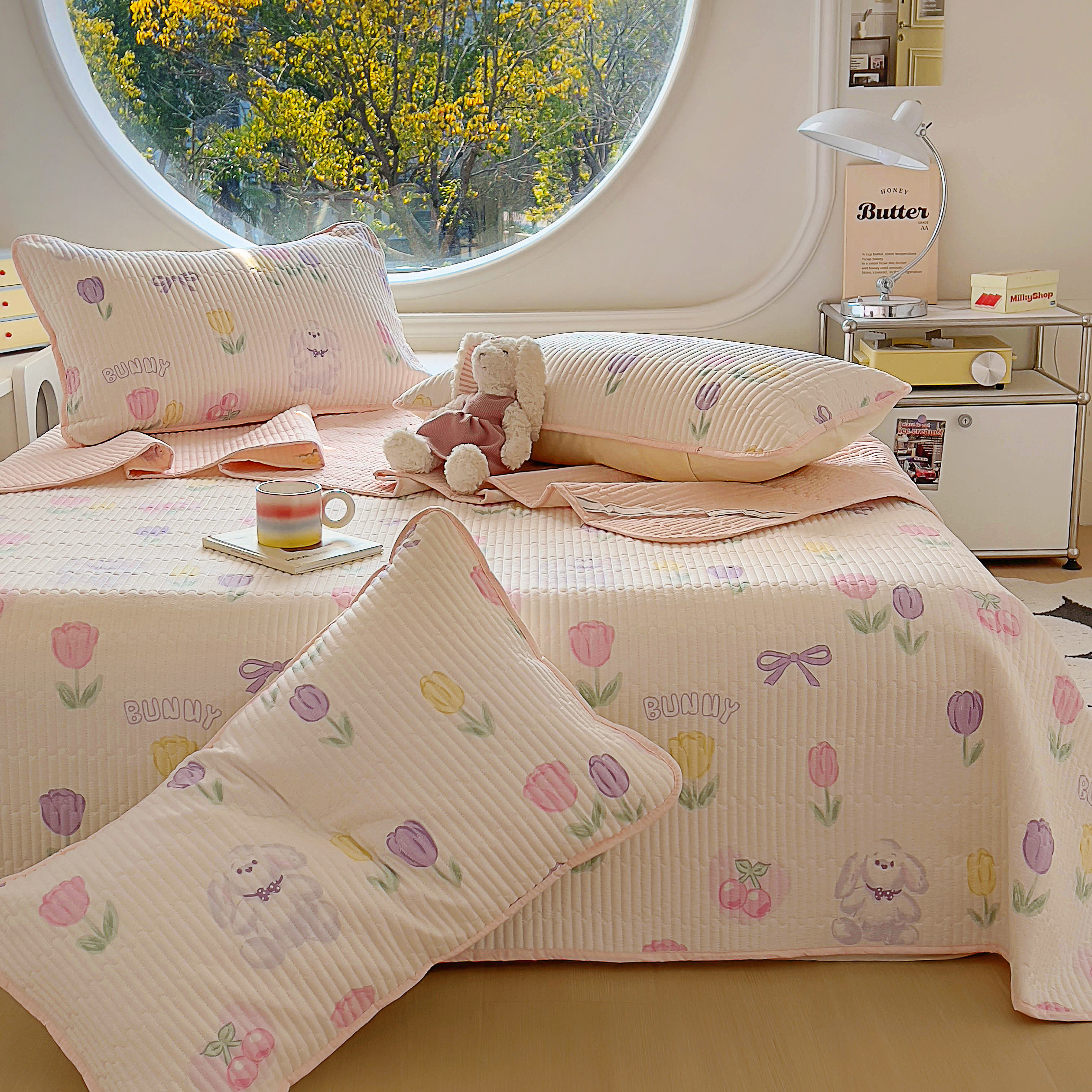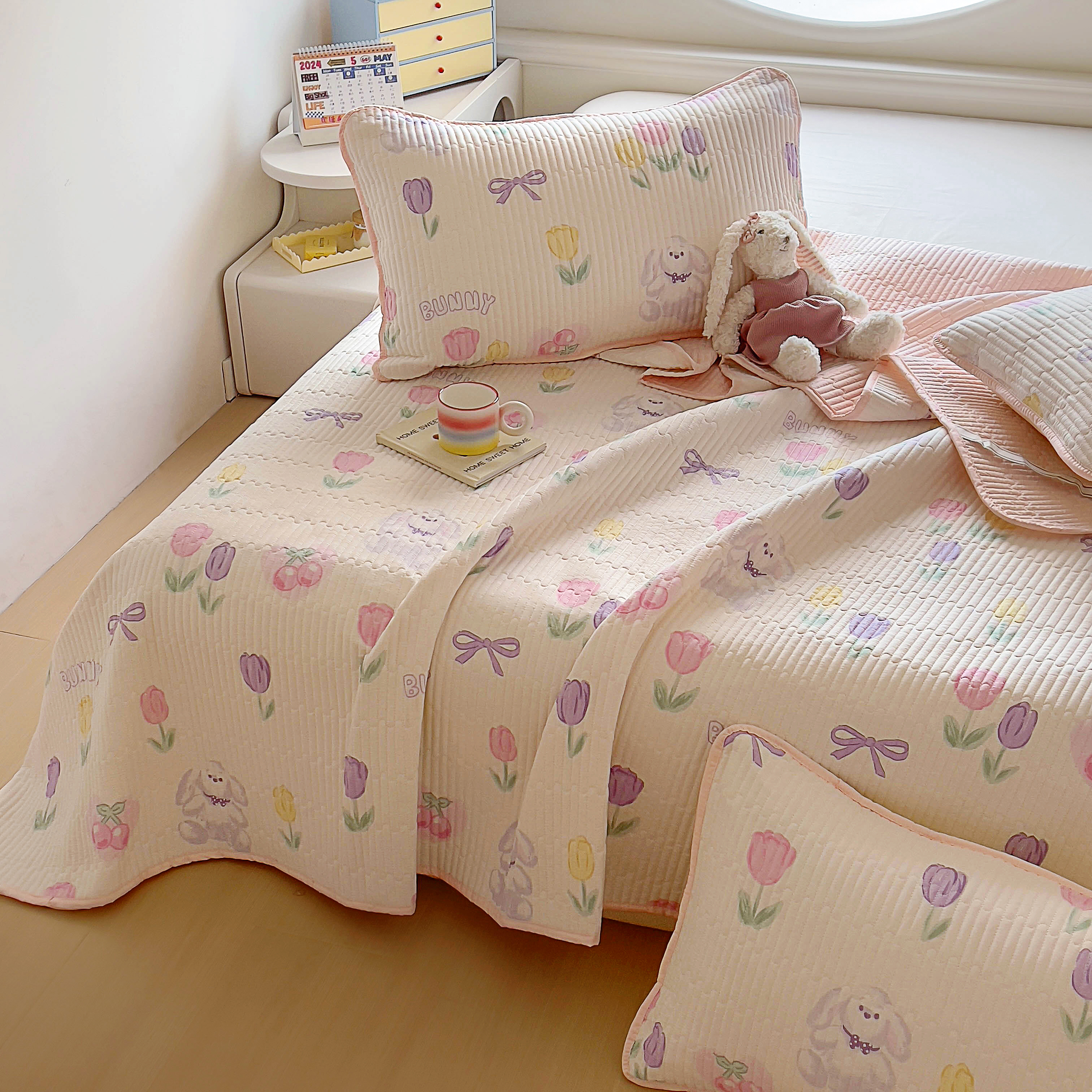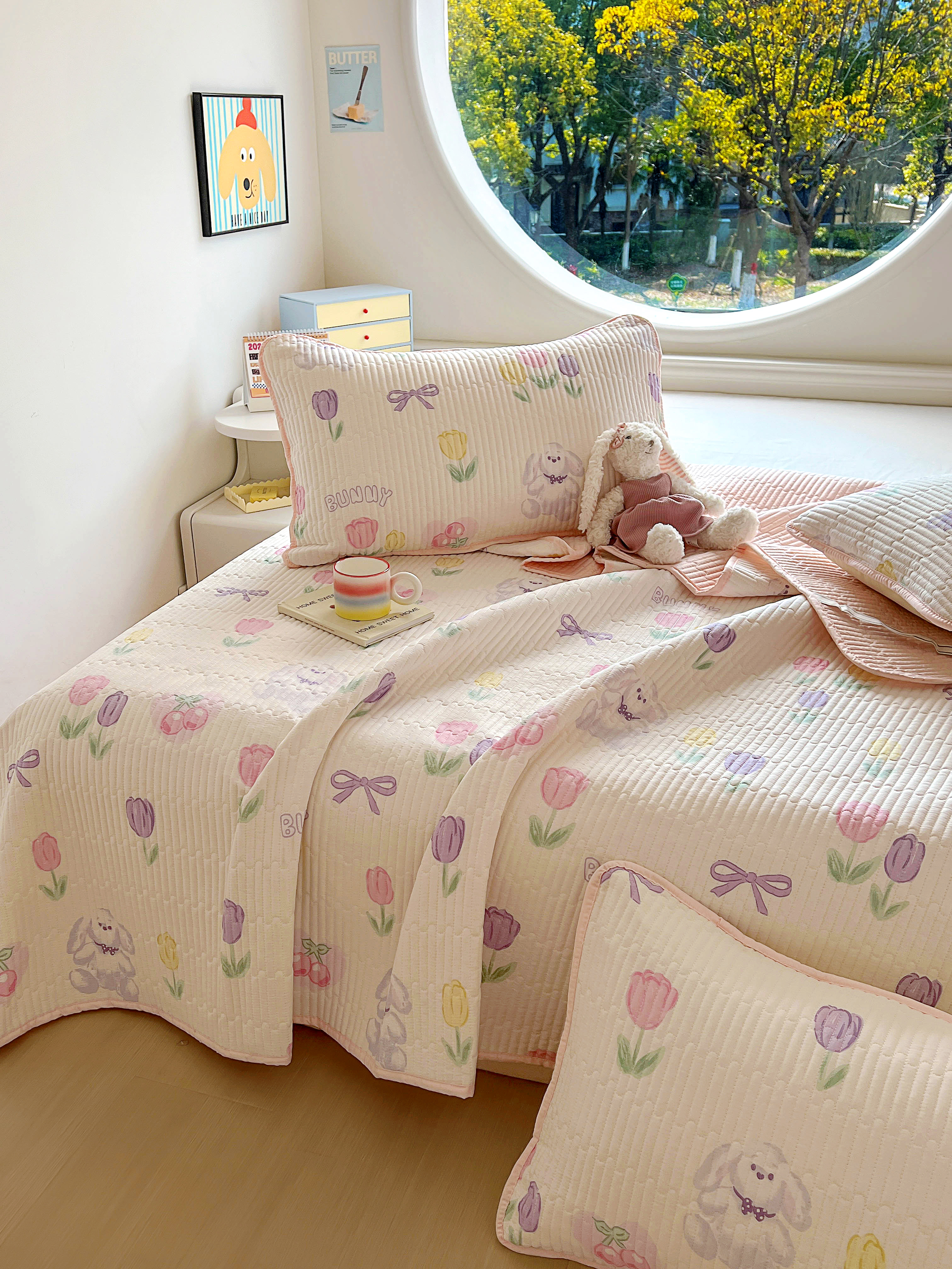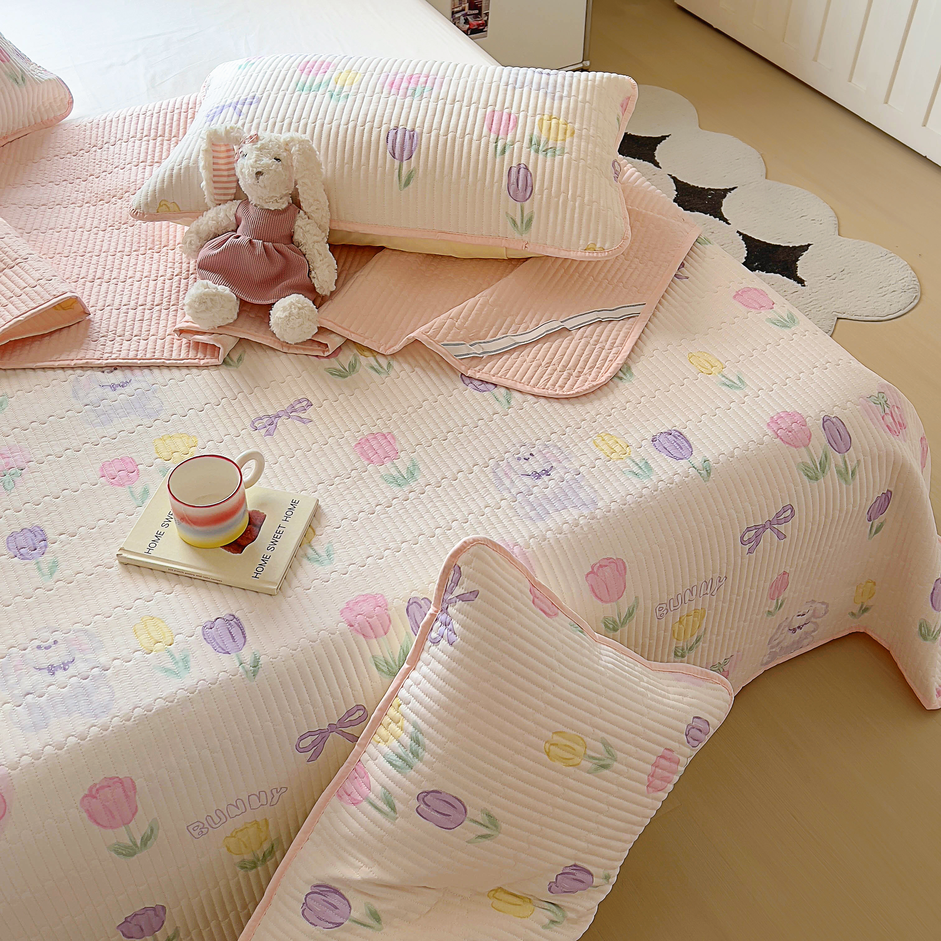 昊川家纺 2025新款时尚印花全棉床盖单被套四件套学生床盖套件 郁金香