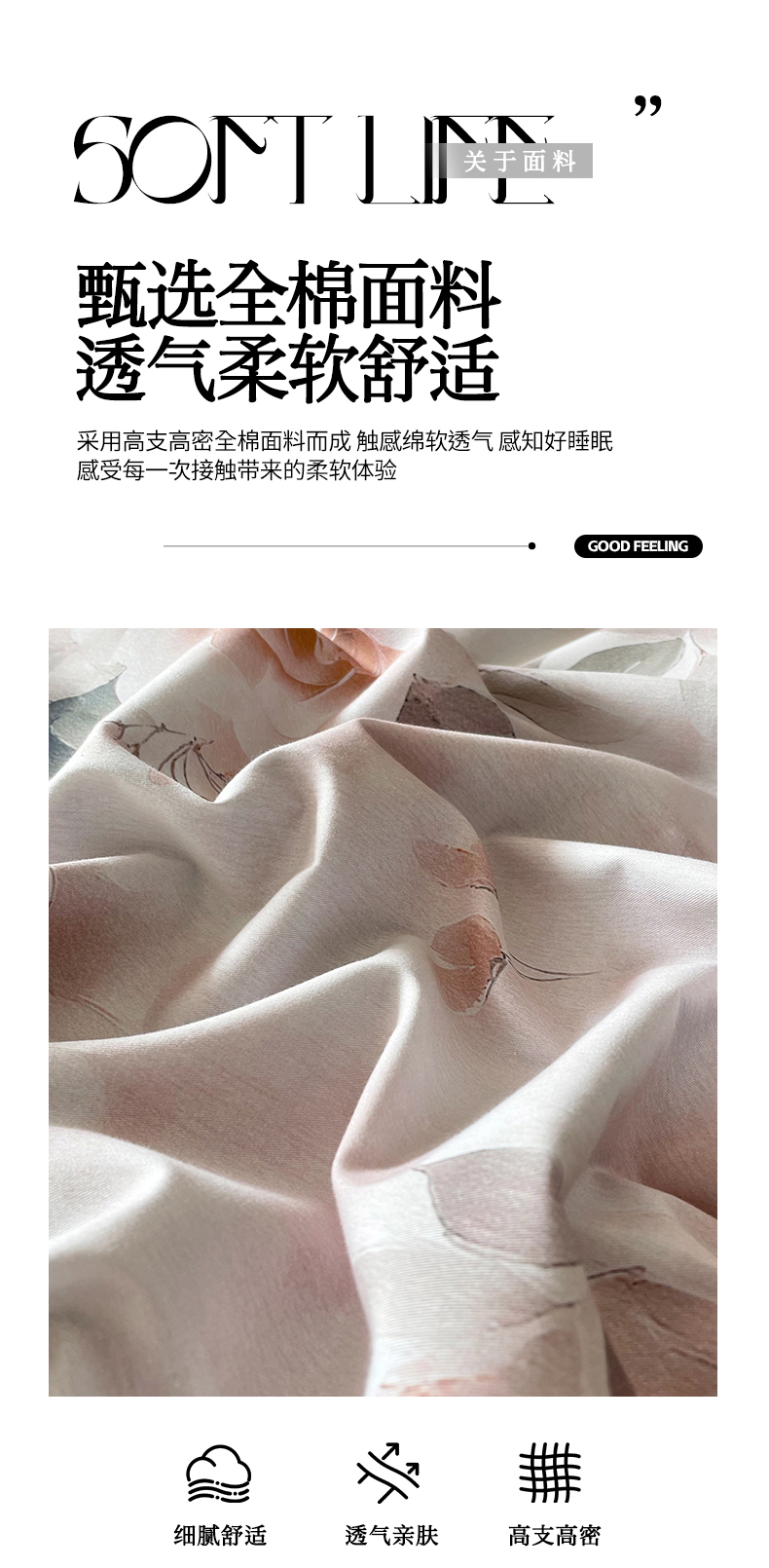 商品名称:金纱玉纺家纺 2025新款全棉13376数码印花四件套(礼盒包装)331A2
