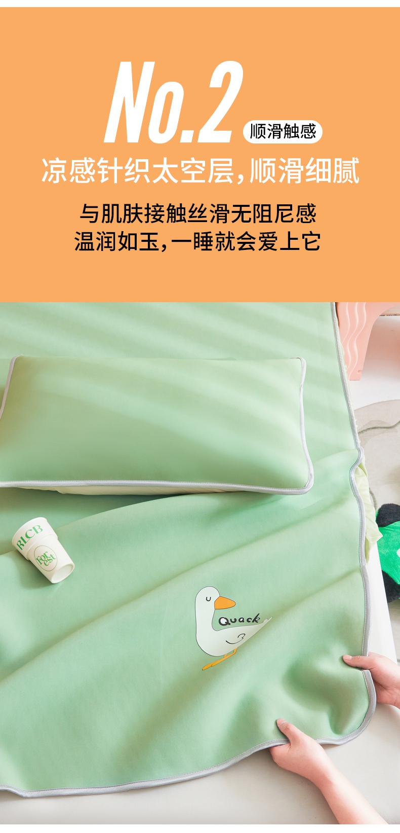 当前位置: 91家纺网 > 商品网购 > 床上用品 > 凉席 > 其他凉席 > 2025春夏新款独家研发太空层凉感鸭冰丝烫画软凉席床笠款 凉感鸭-牛油果绿