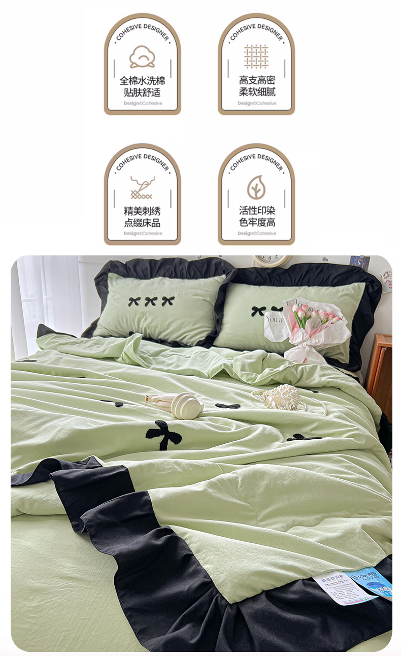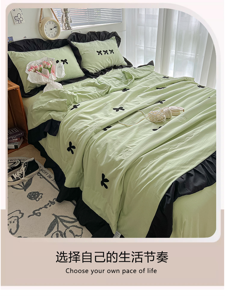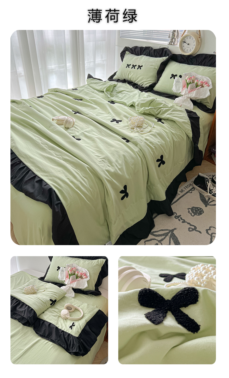 (总)子钦家纺 2023新款开学季四季棉花边三件套四件套安妮,艾绿,宾利蓝,蒂芙尼蓝,焦糖咖,暖桔,秋月黄,绅士灰,炫彩银,阳光紫,樱花粉