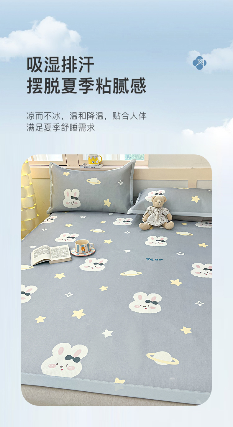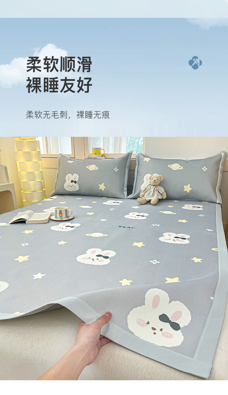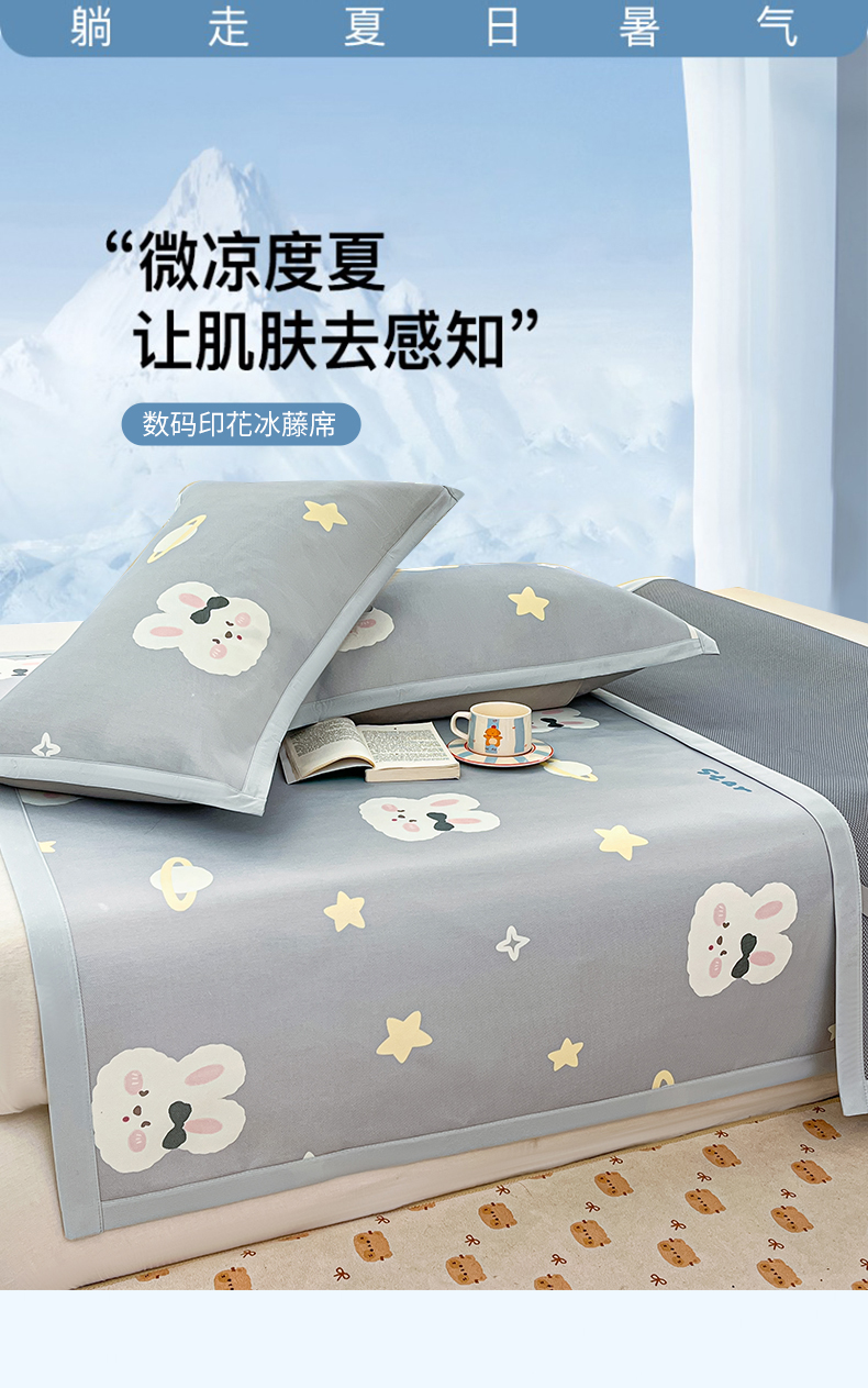 当前位置: 91家纺网 > 商品网购 > 床上用品 > 凉席 > 藤席 > 绒艺席业 2025新款600D冰丝印花数码印花冰藤席卡通小清新系列 星空兔-灰