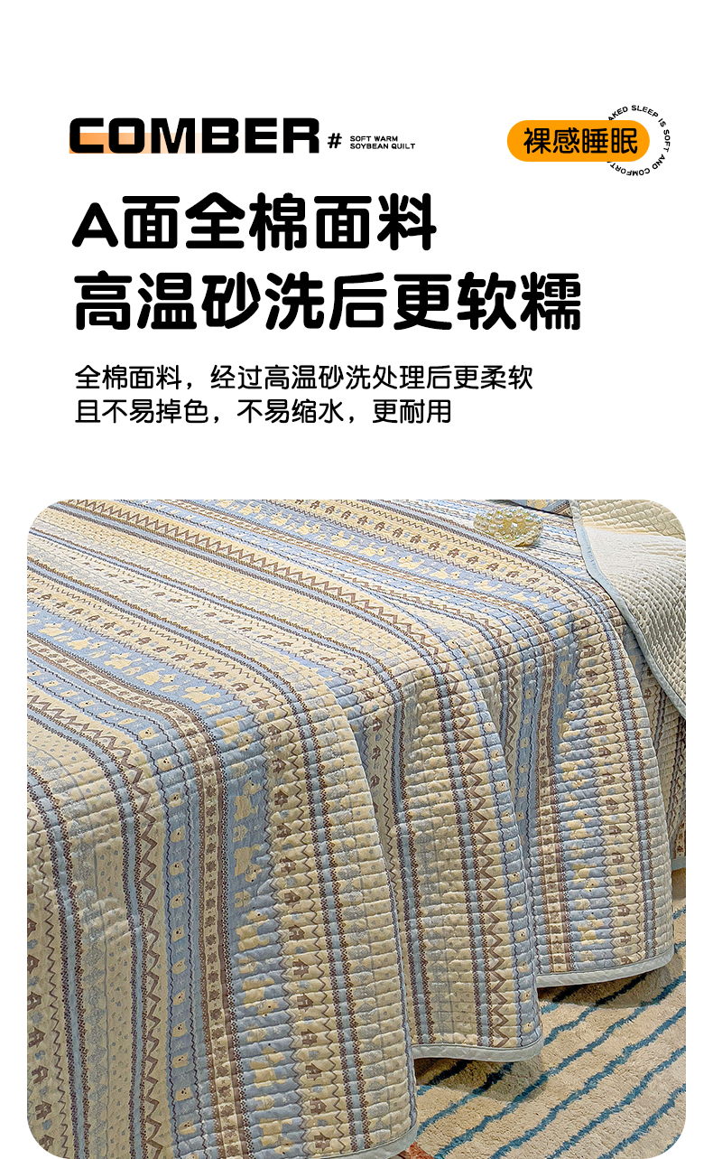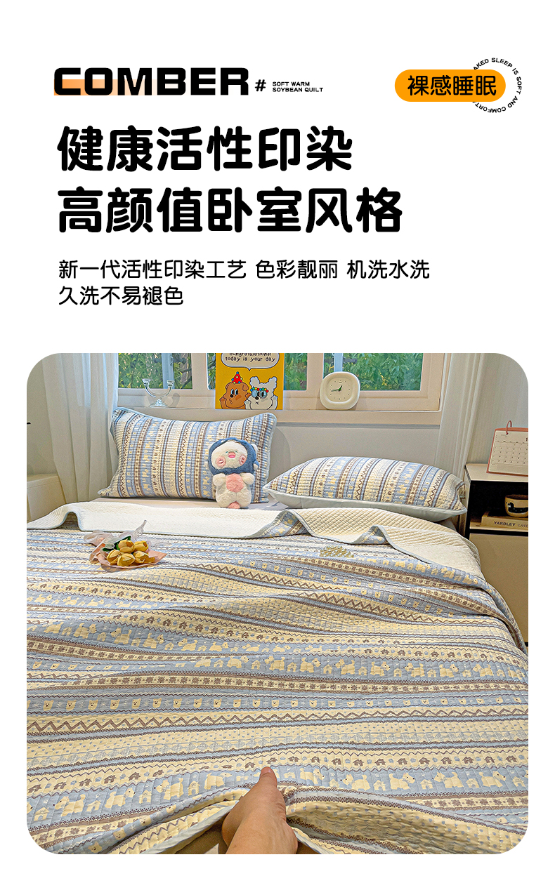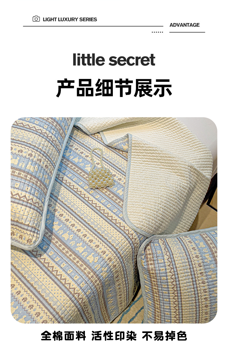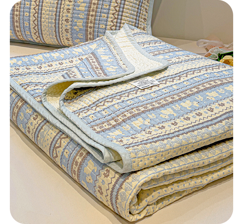 • 91家纺网 家纺一手货源 找家纺 漫时光 2025新款全棉纯棉新疆棉花夹层单床盖 费尔岛蓝