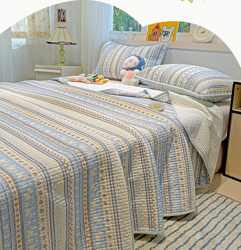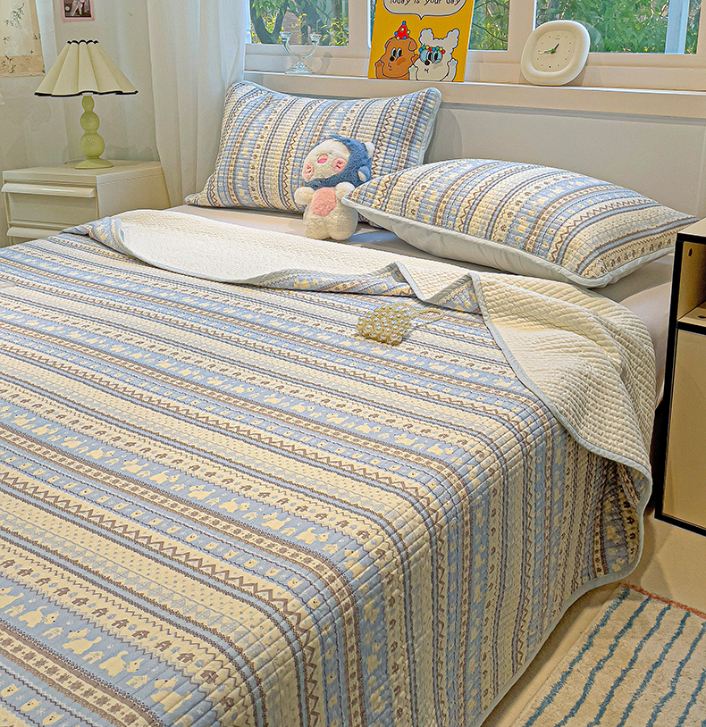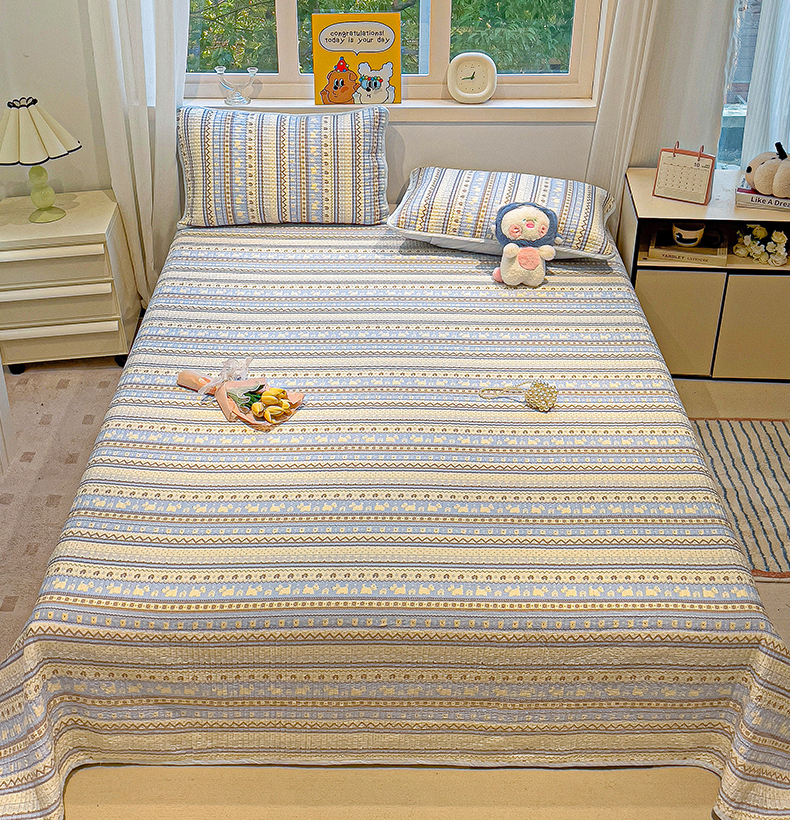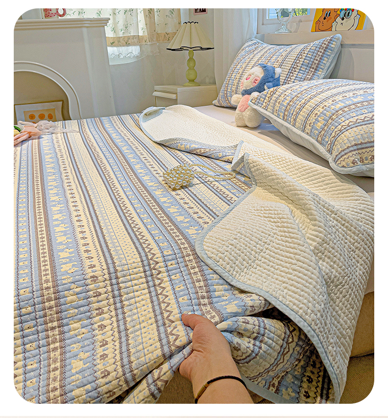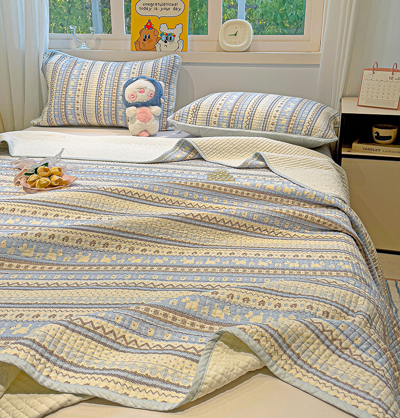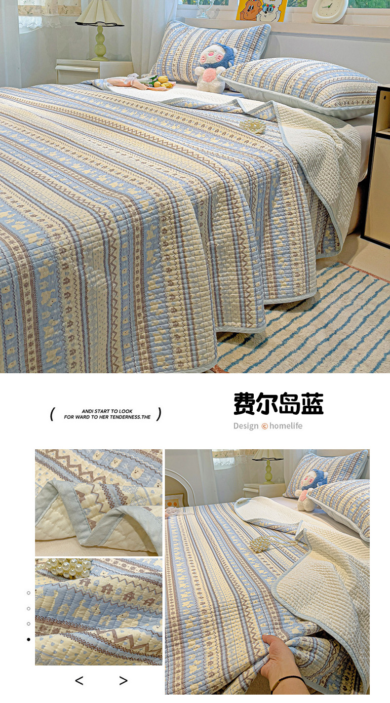 漫时光 2025新款全棉纯棉新疆棉花夹层单床盖 费尔岛蓝