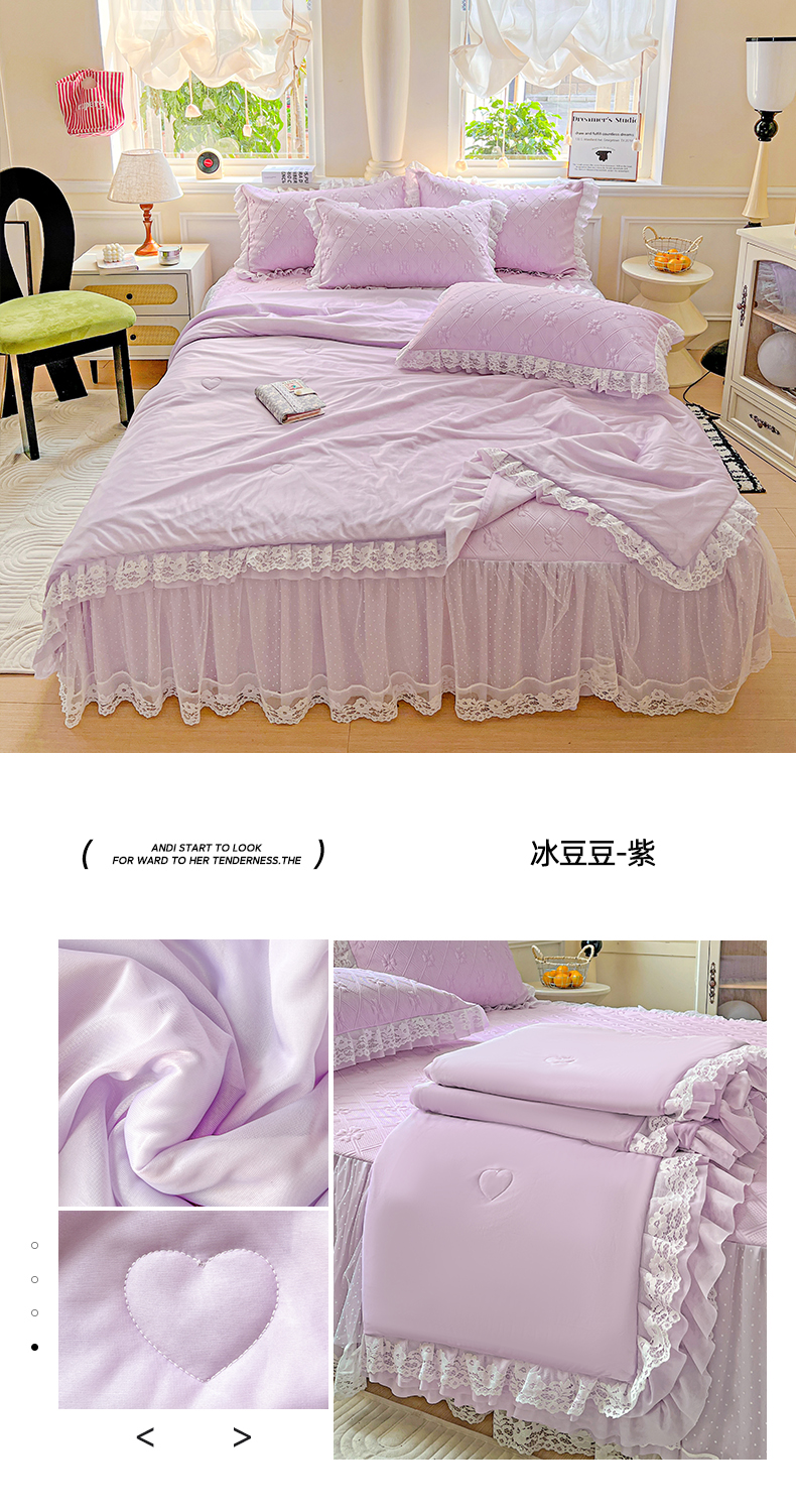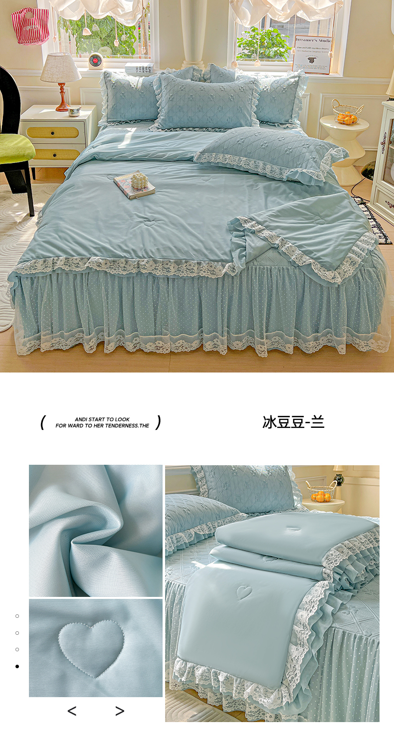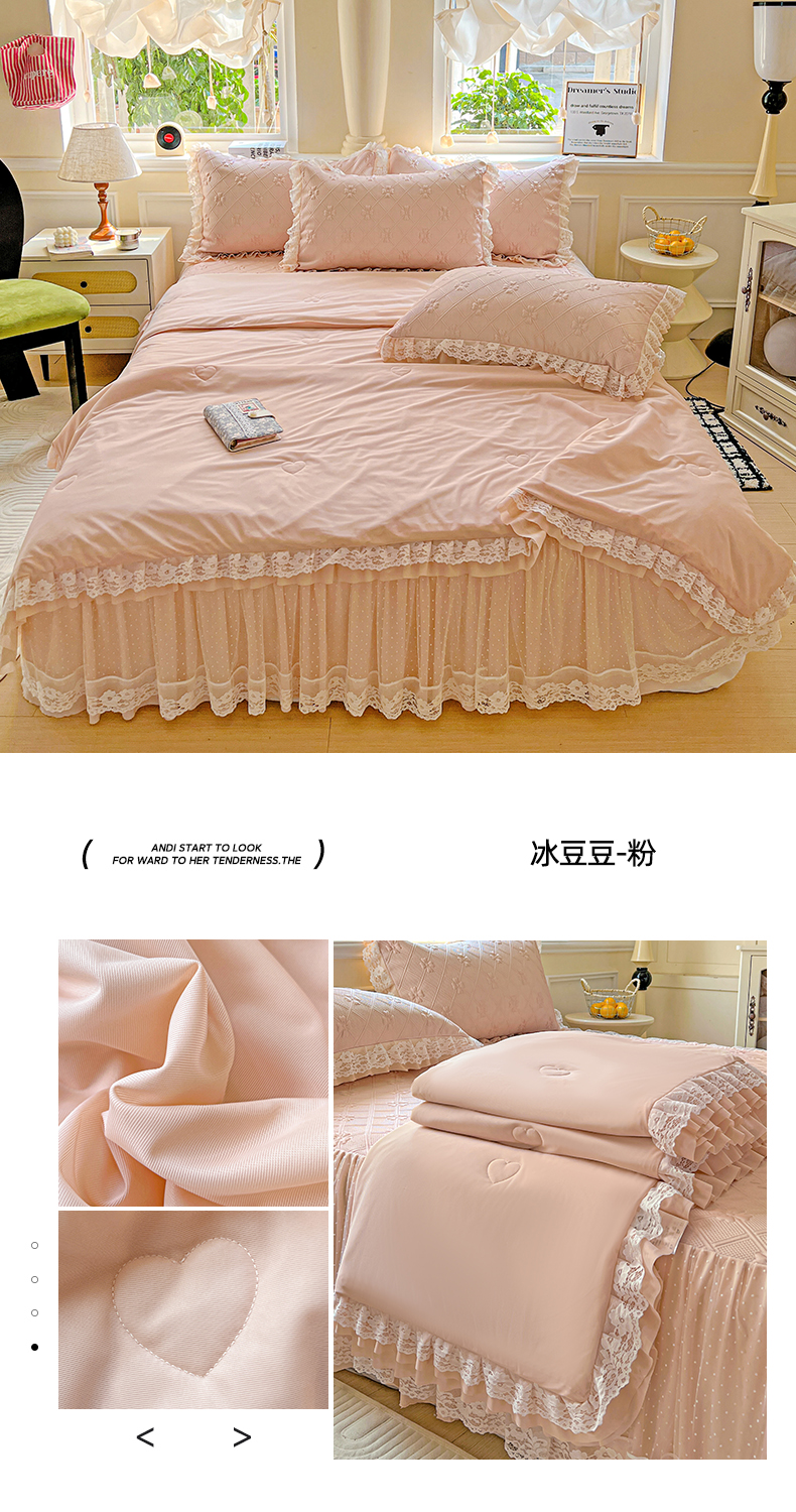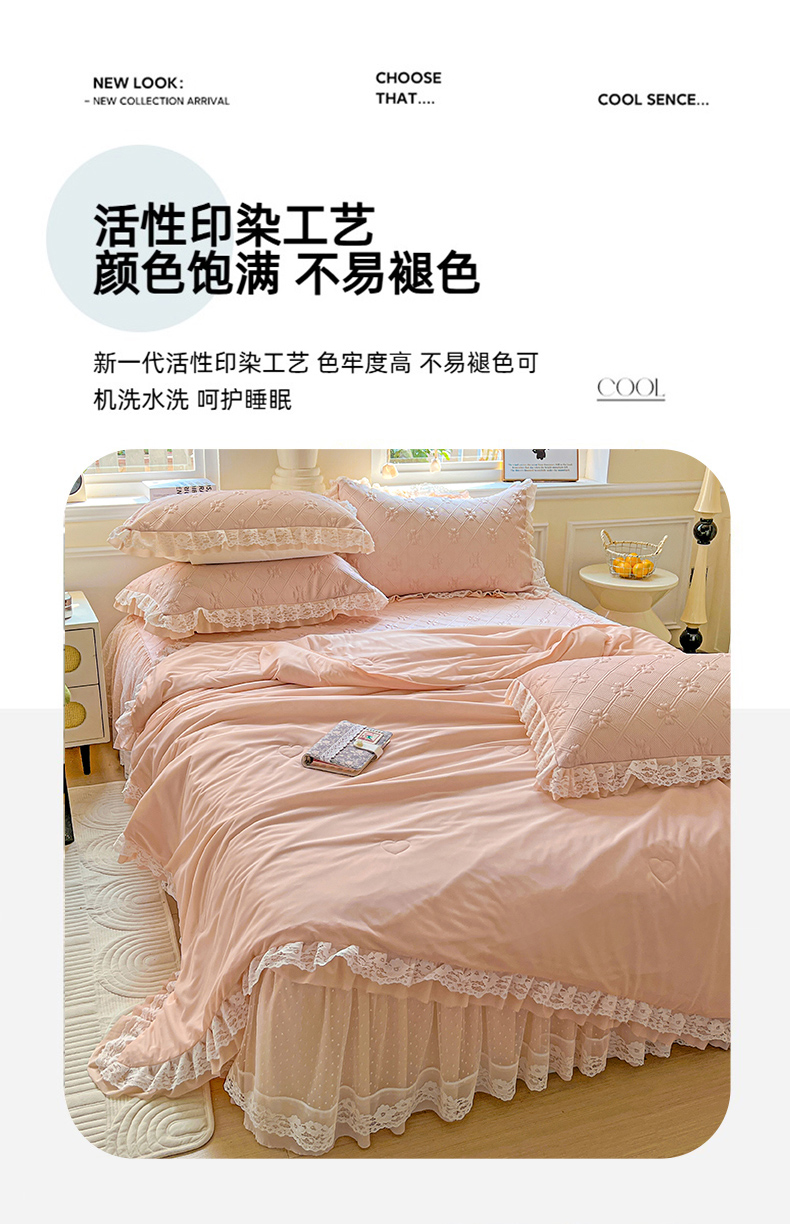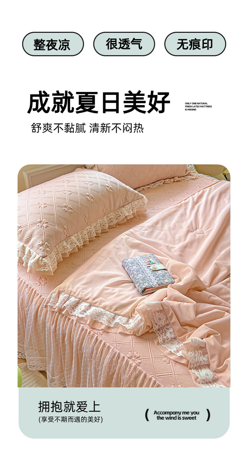 (总)创爱家纺 2025新款3D提花冰豆豆床裙款凉席夏被四件套