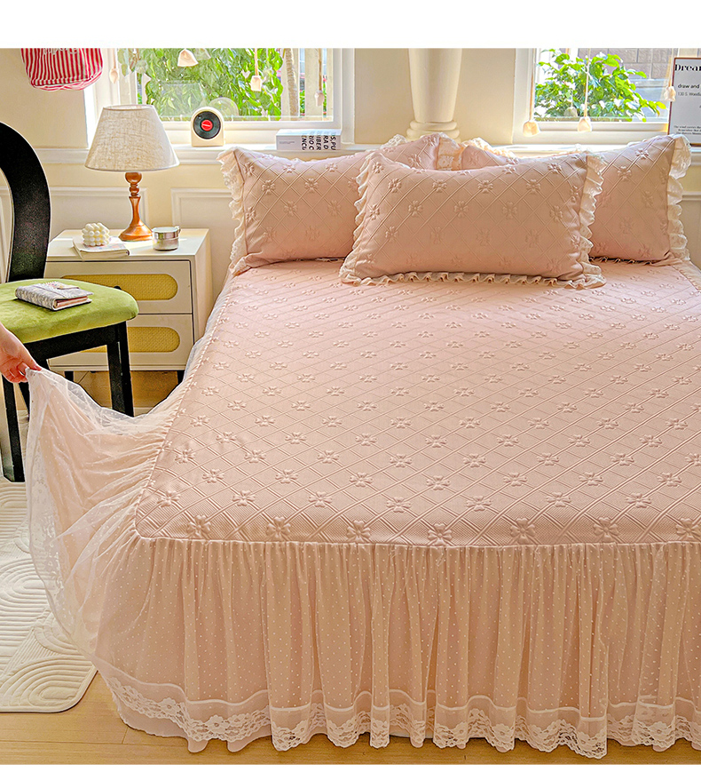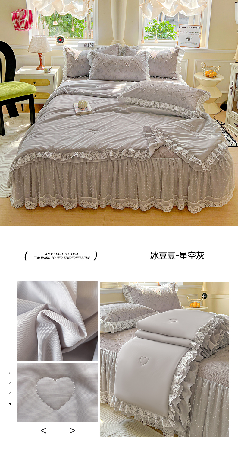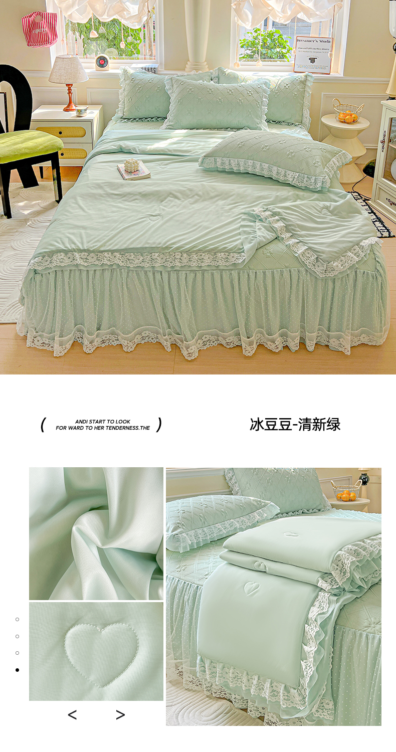 商品名称:(总)创爱家纺 2025新款3D提花冰豆豆床裙款凉席夏被四件套