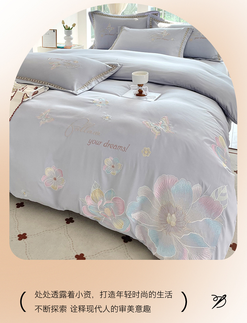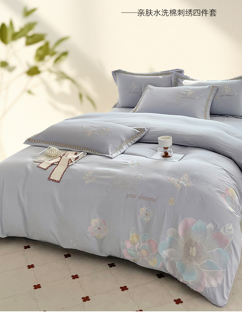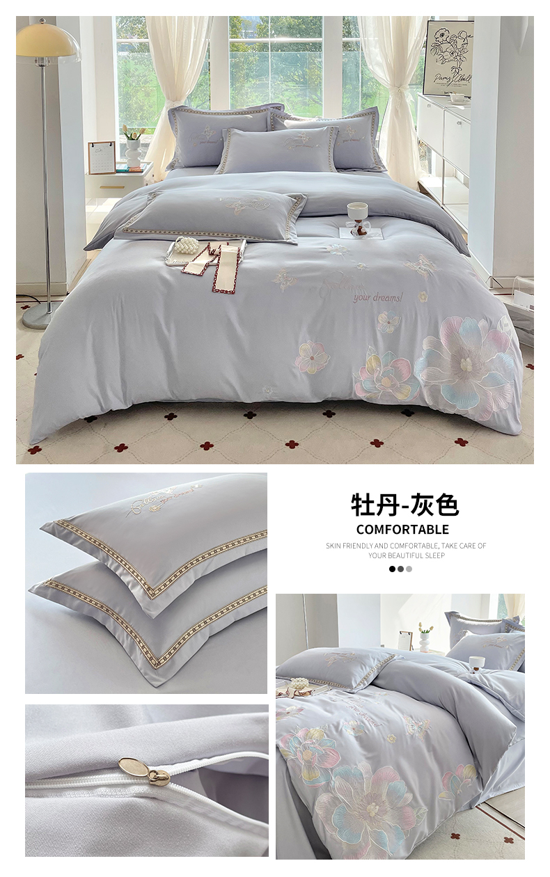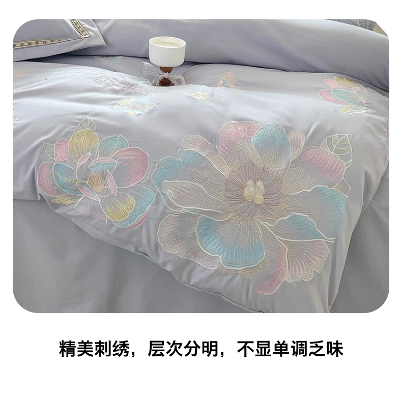 当前位置: 91家纺网 > 商品网购 > 床品套件 > 四件套 > 水洗棉四件套 > 佳宇轩 2025爆款水洗棉五彩刺绣四件套简约轻奢织带绣花床单床笠被罩4件套-牡丹 牡丹-灰色