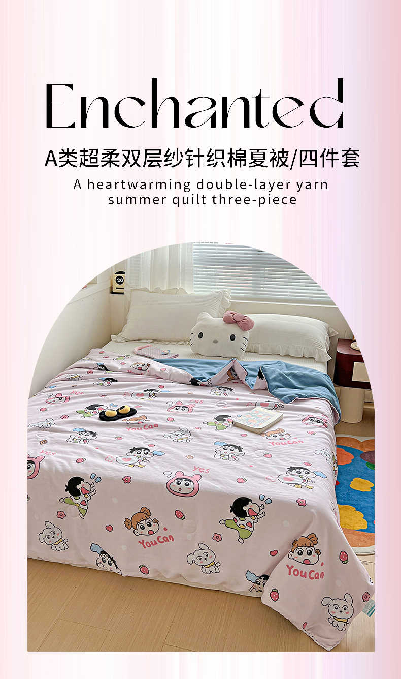 商品名称:妖妖家纺 2025新款超柔双层纱糯糯针织棉夏凉被 开心小新