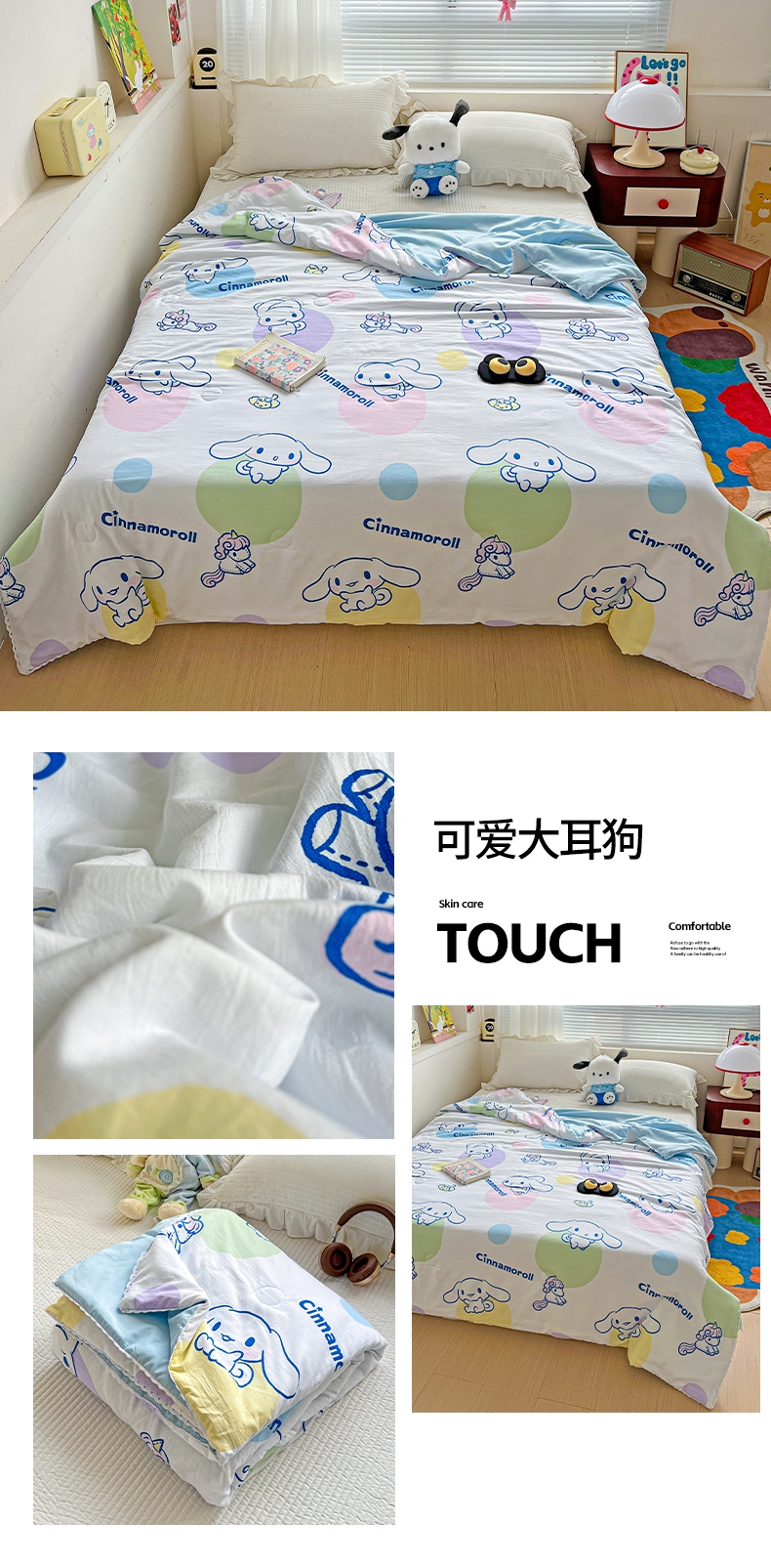 (总)妖妖家纺 2025新款高克重牛奶绒三丽鸥大版四件套,wink玉桂狗,豹纹kitty,呆萌帕恰狗,呆萌kitty,飞行美乐蒂,开心布丁狗,库洛米大厨,甜酷库洛米,兔兔与美乐蒂,玉桂狗郊游